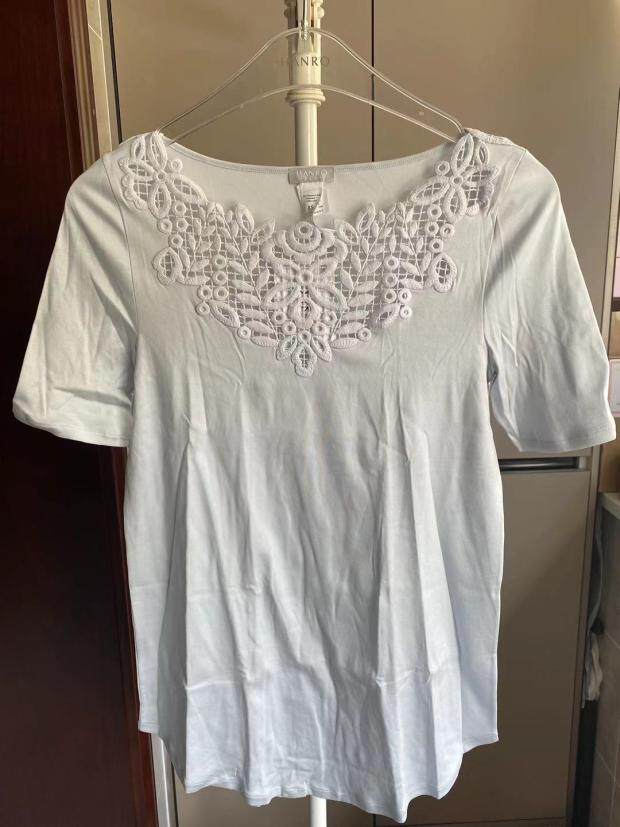 Дизайнерские хлопковые синие белые штаны, комплект, Швейцария, с вышивкой, короткий рукав