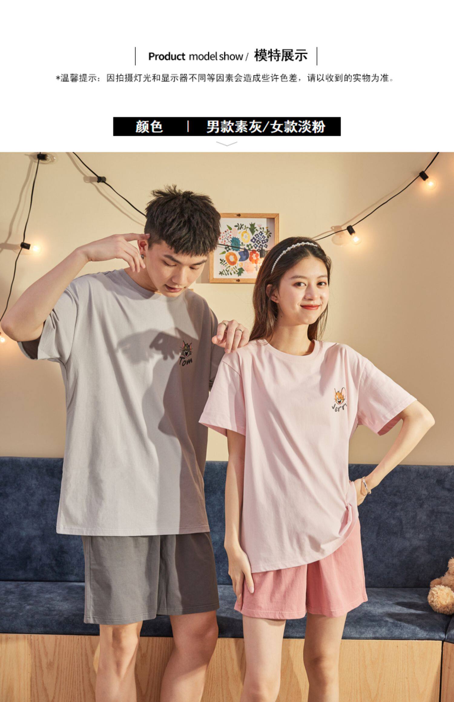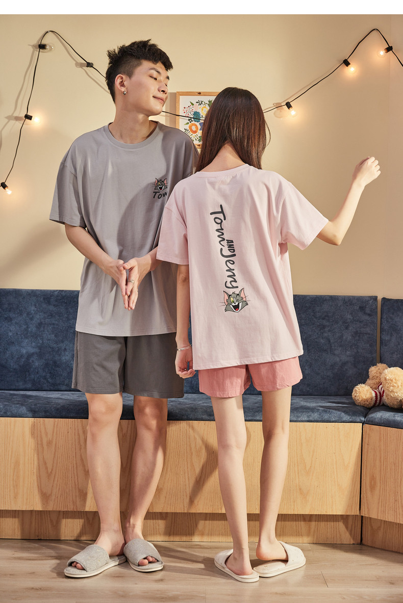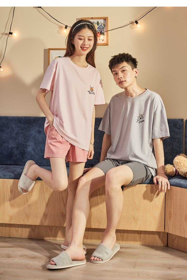 Летняя пижама, комплект, домашняя одежда подходит для мужчин и женщин, хлопковые шорты, для влюбленных