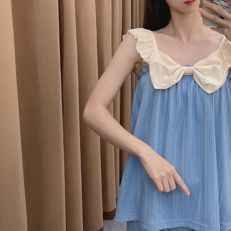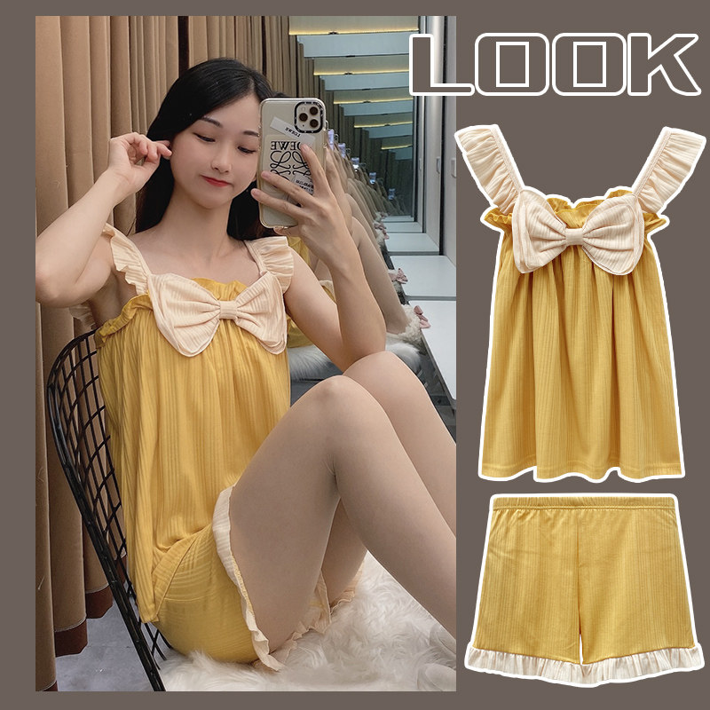 Летняя хлопковая тонкая пижама, милый брендовый комплект с бантиком, эффект подтяжки, коллекция 2021
