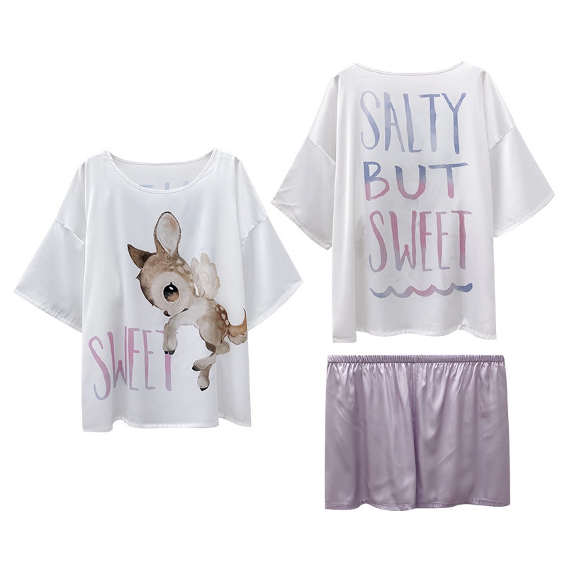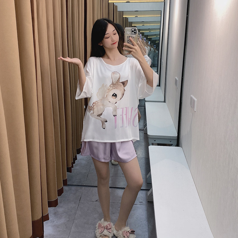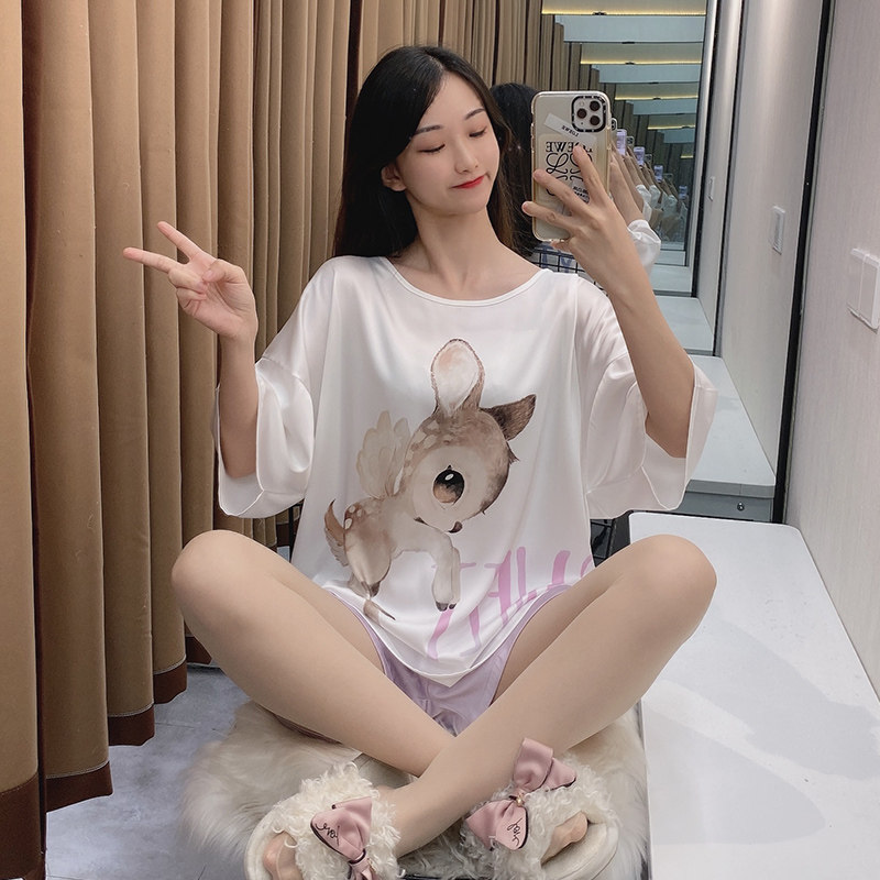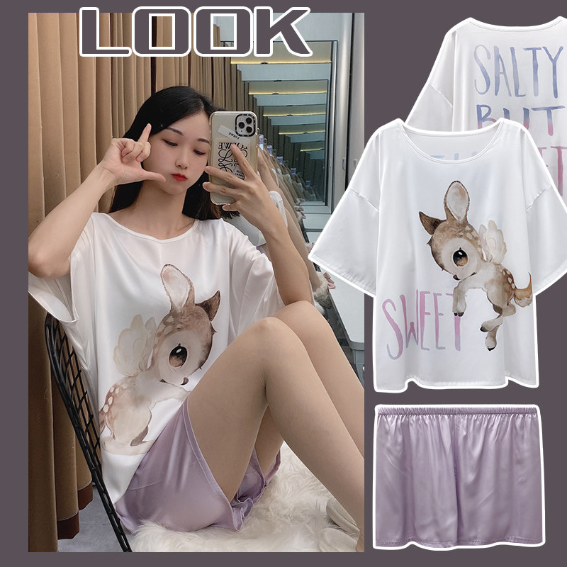 Летняя шелковая пижама, тонкие мультяшные шорты, милый комплект, короткий рукав, коллекция 2021