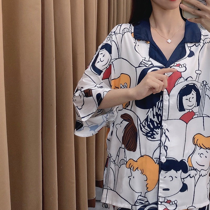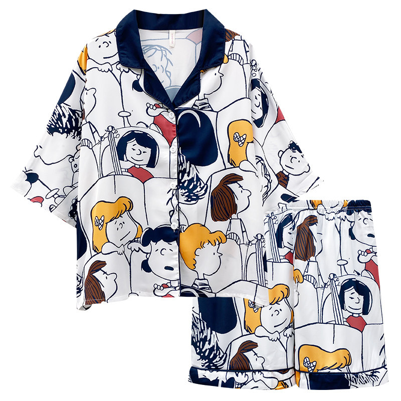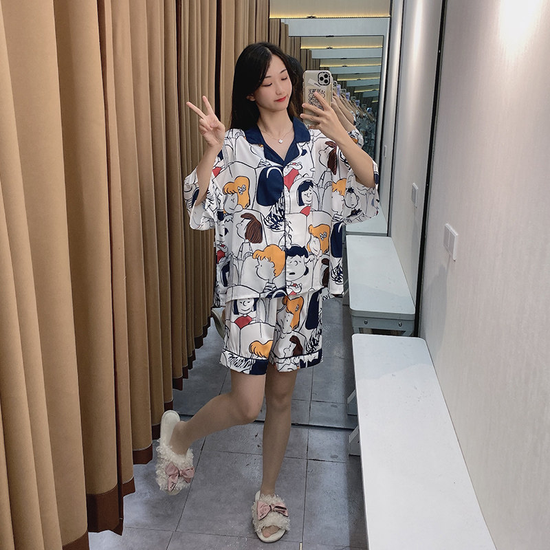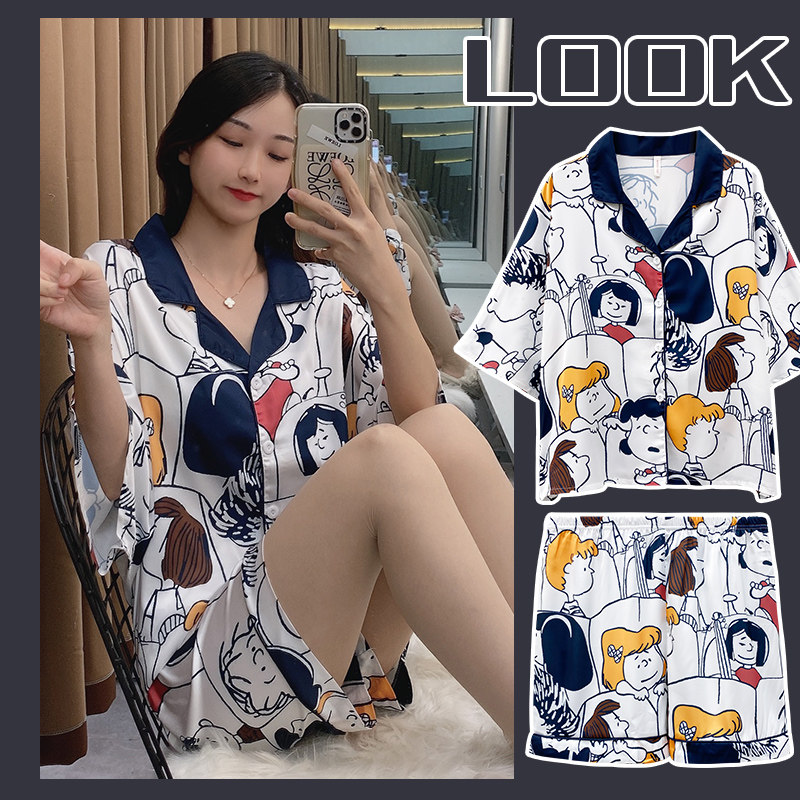 Летняя шелковая пижама, тонкие шорты, брендовый милый комплект, короткий рукав, коллекция 2021
