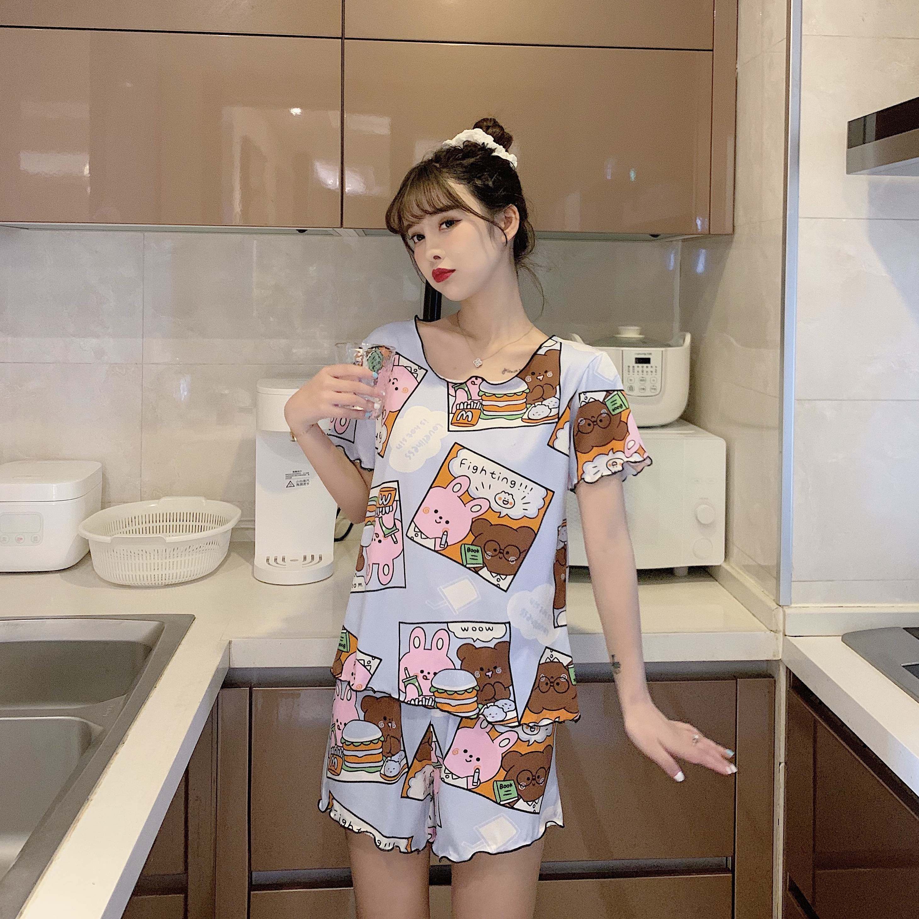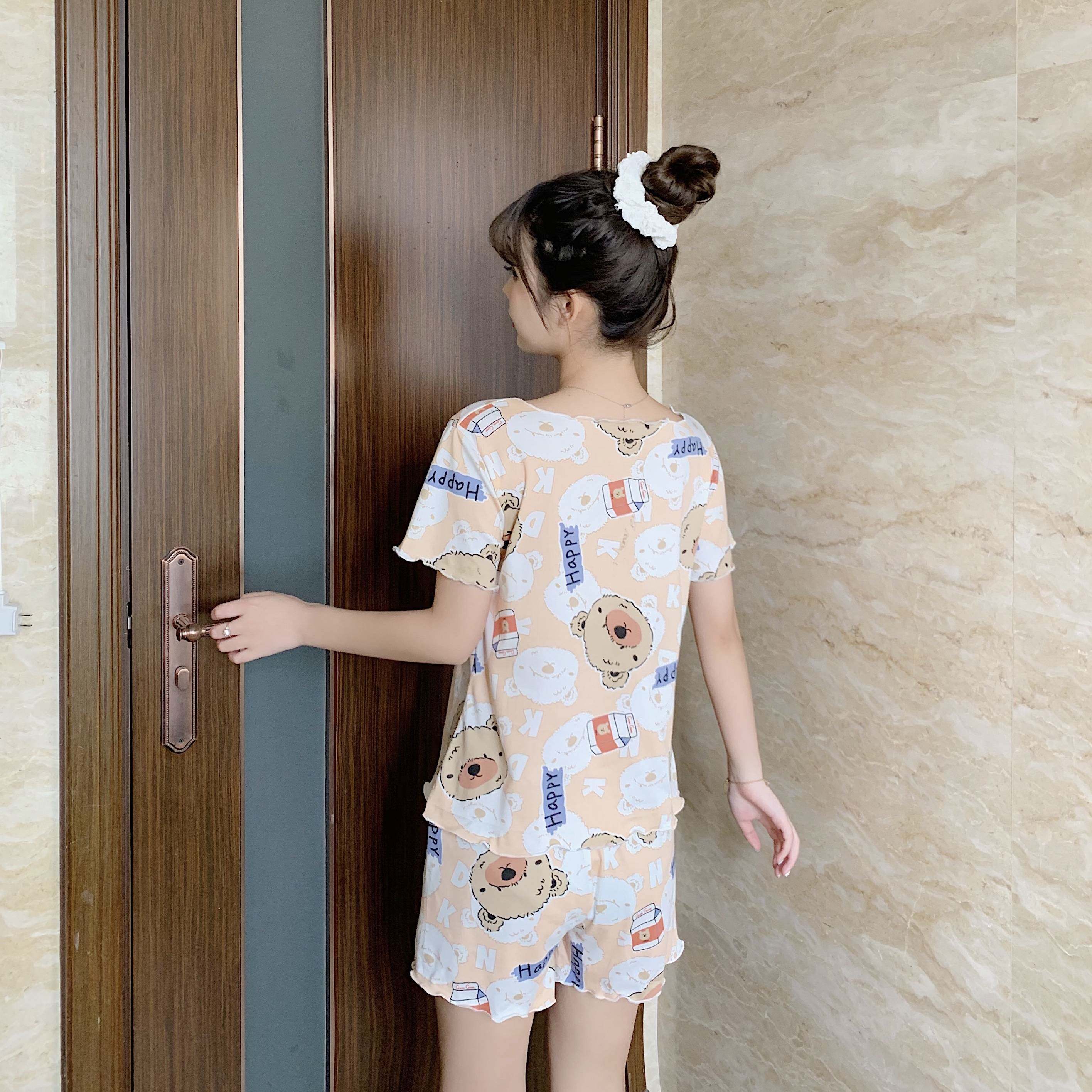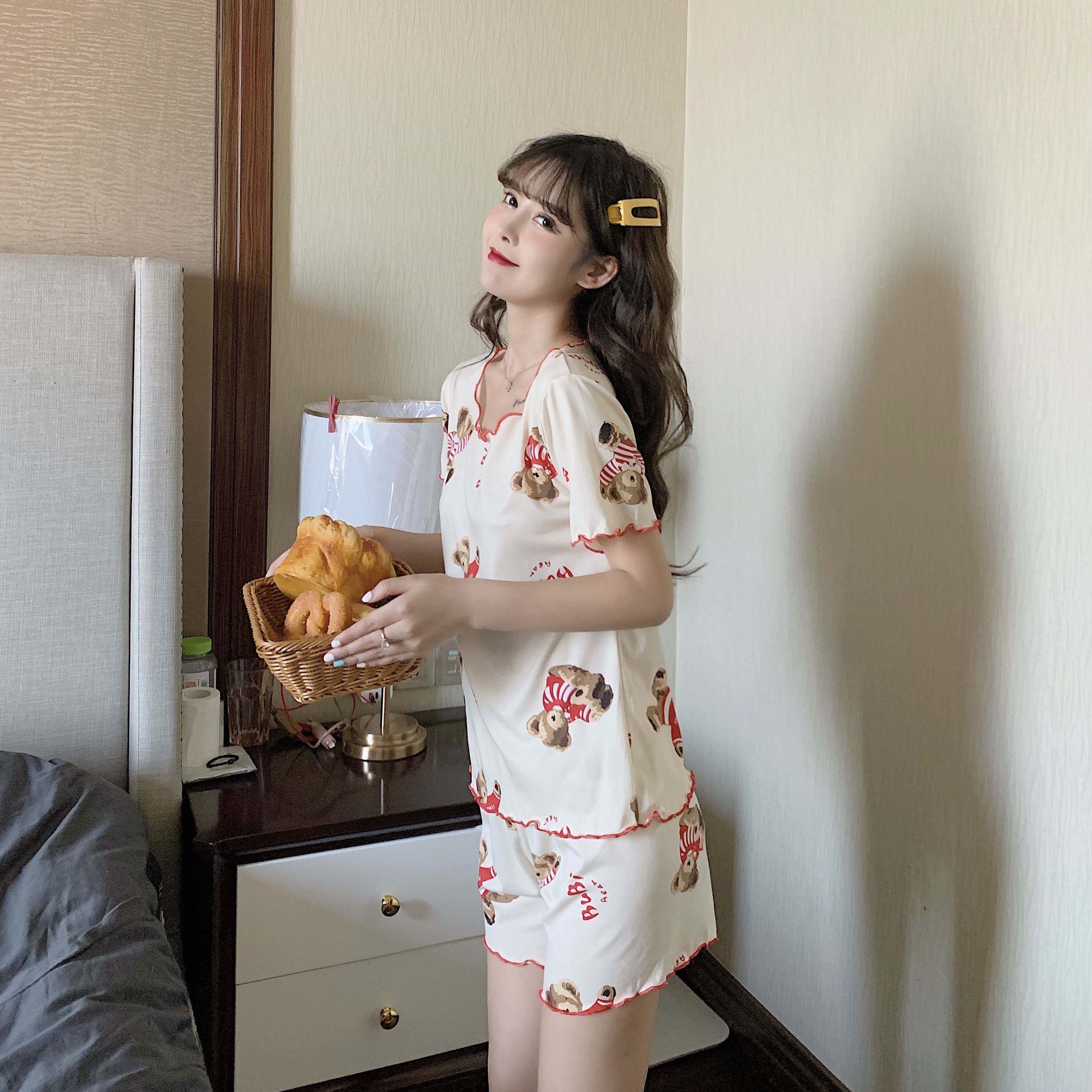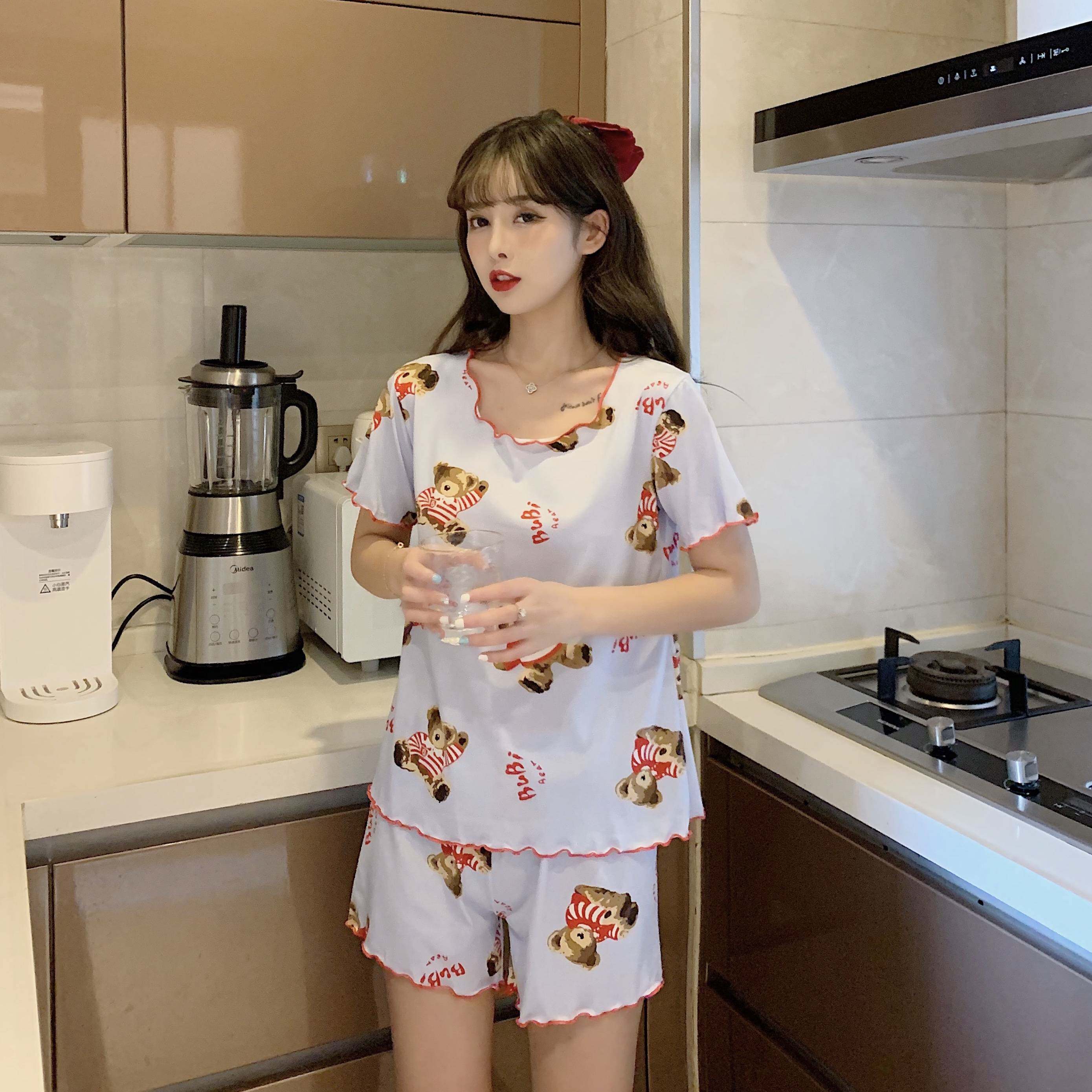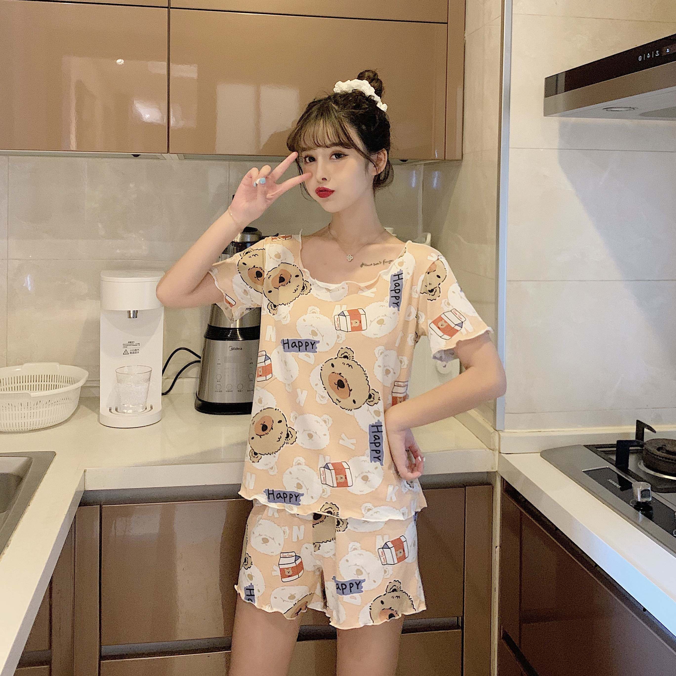 Летняя хлопковая милая пижама, милый тонкий комплект для отдыха, короткий рукав, в корейском стиле