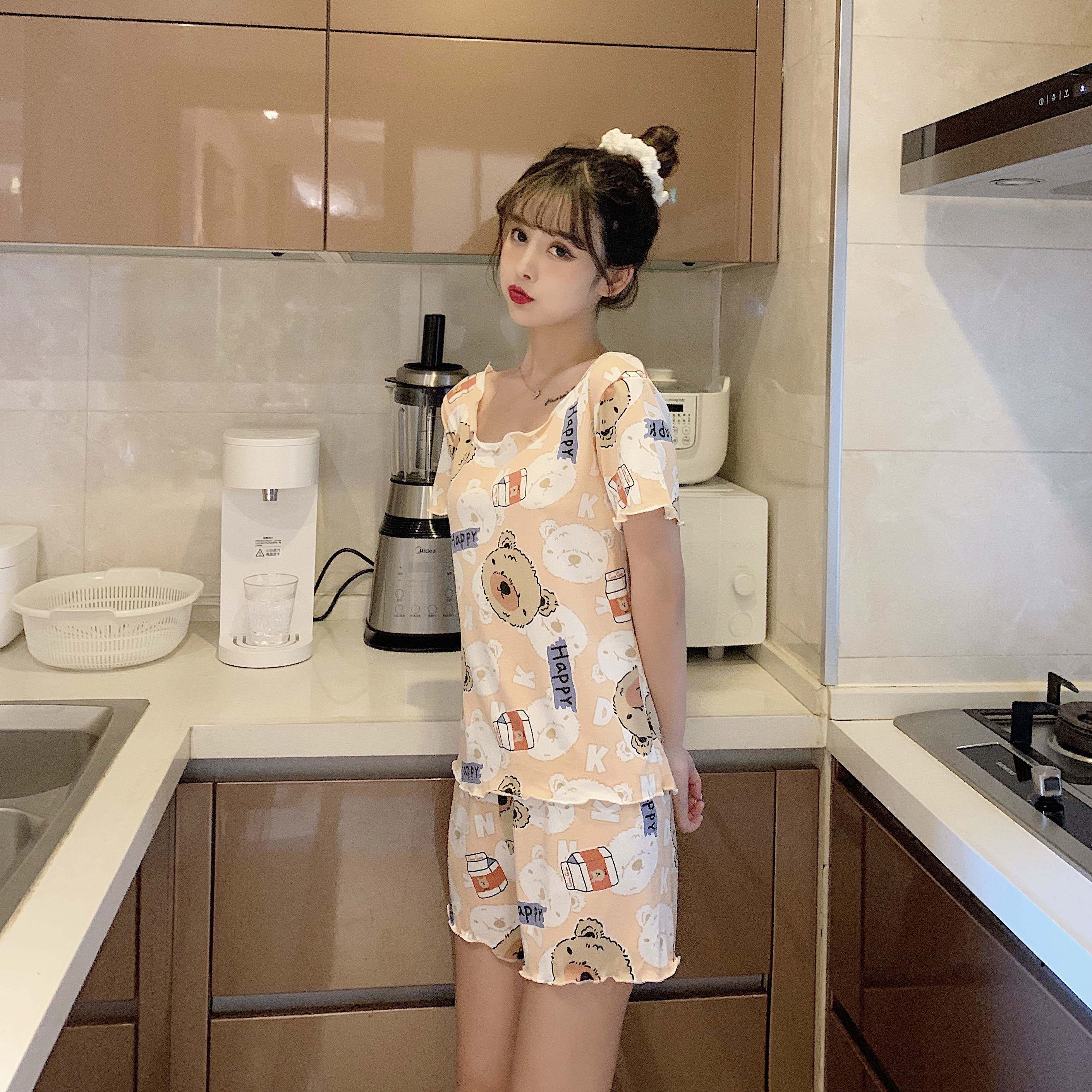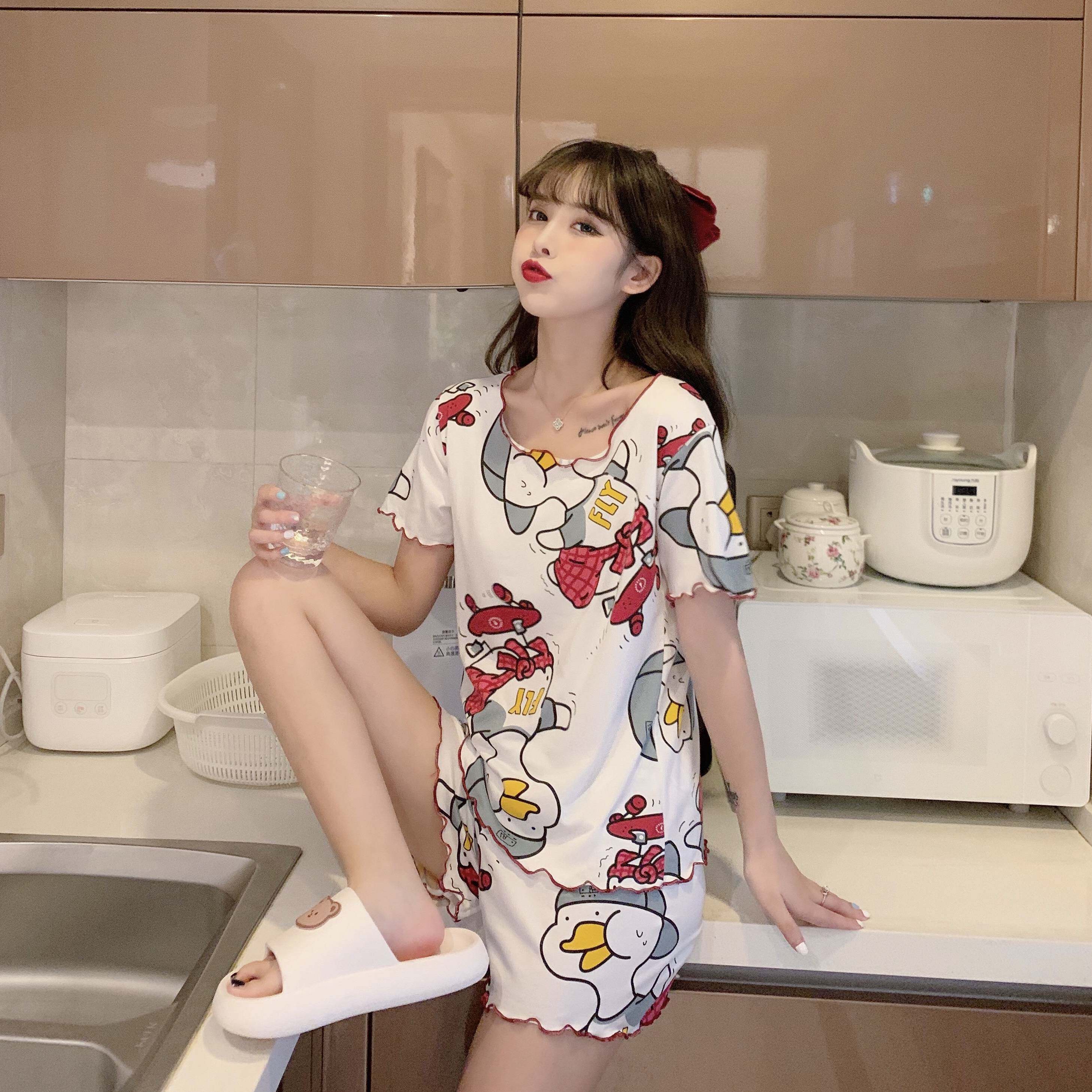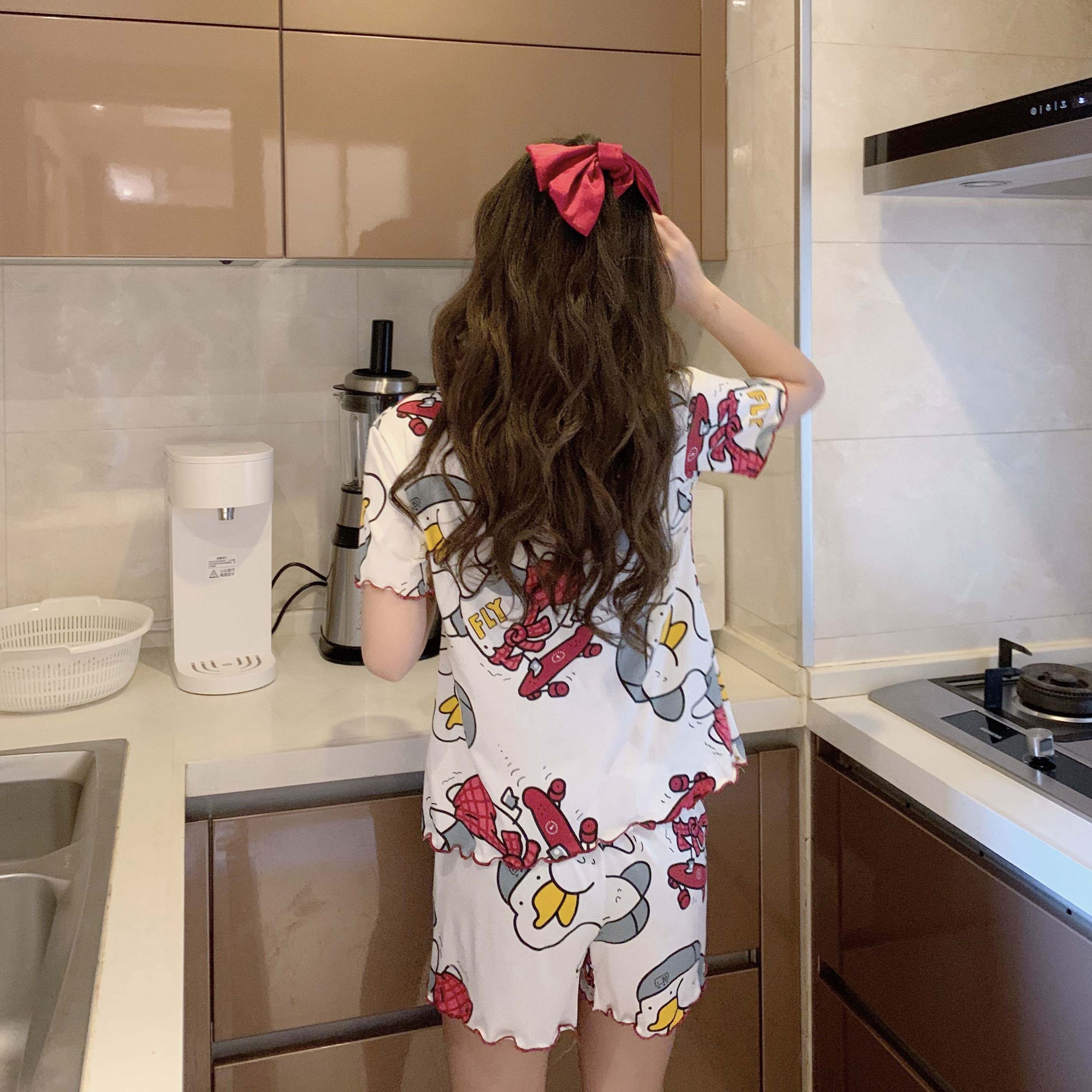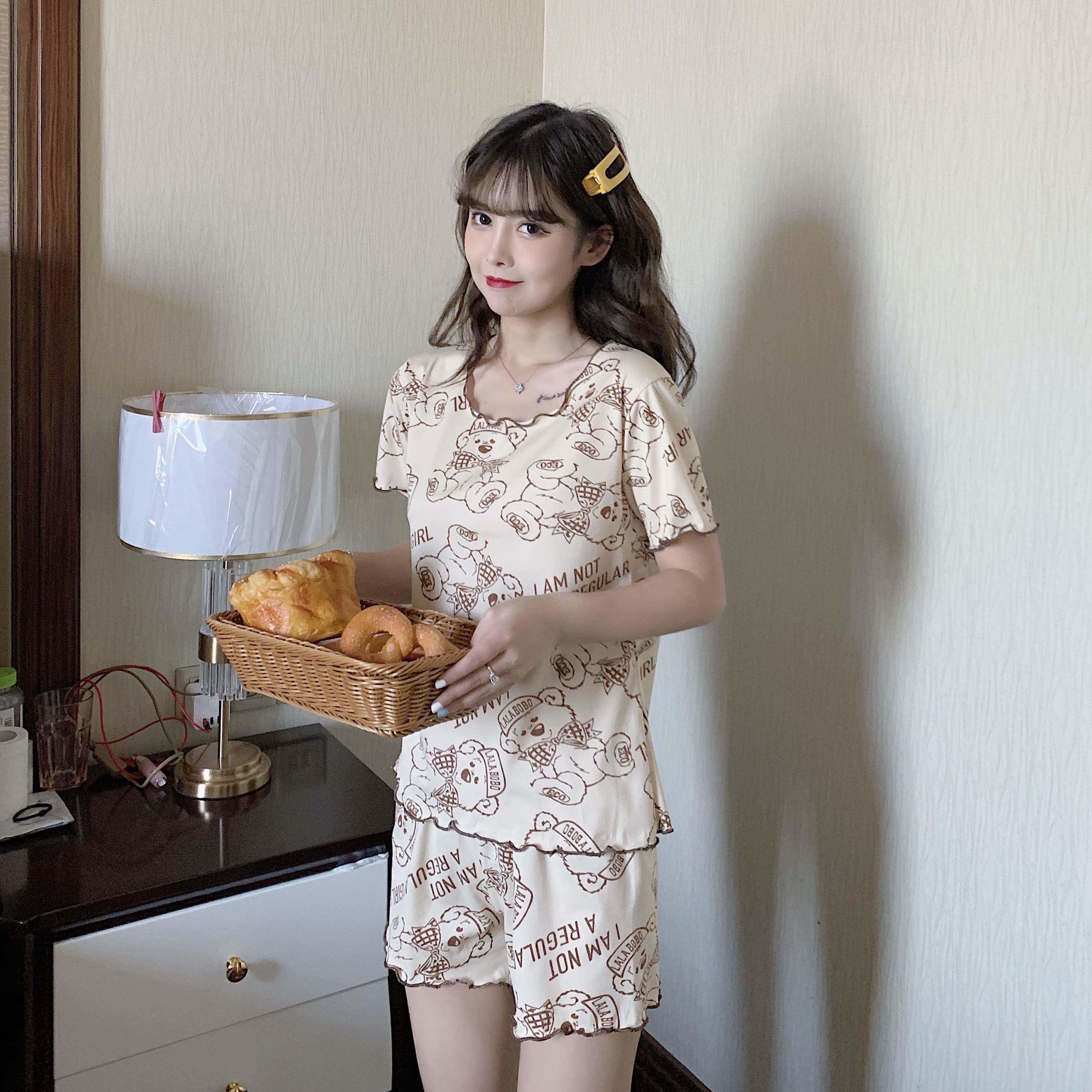 Летняя хлопковая милая пижама, милый тонкий комплект для отдыха, короткий рукав, в корейском стиле