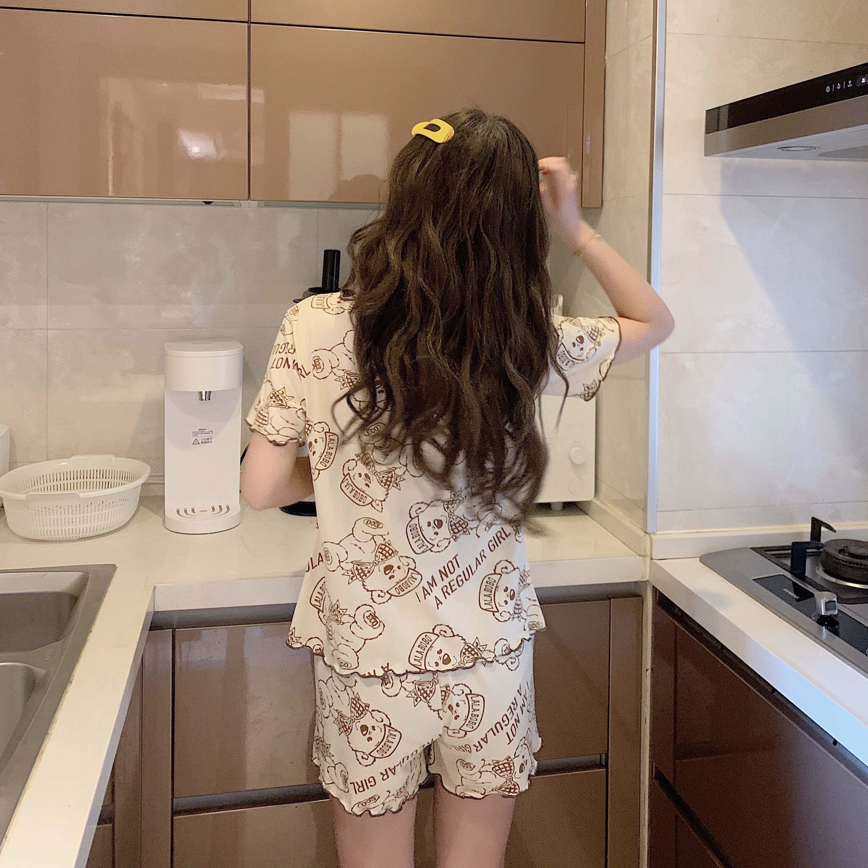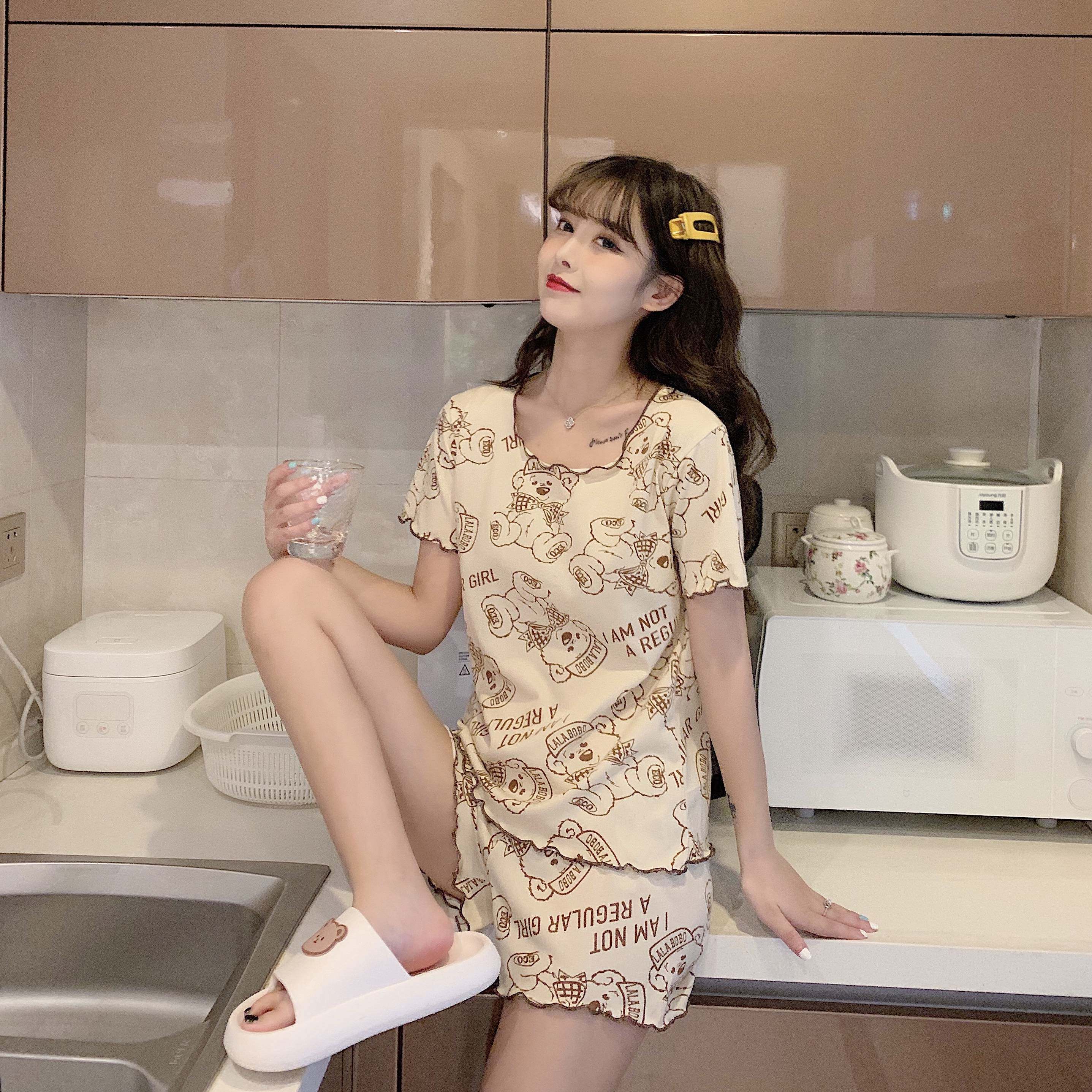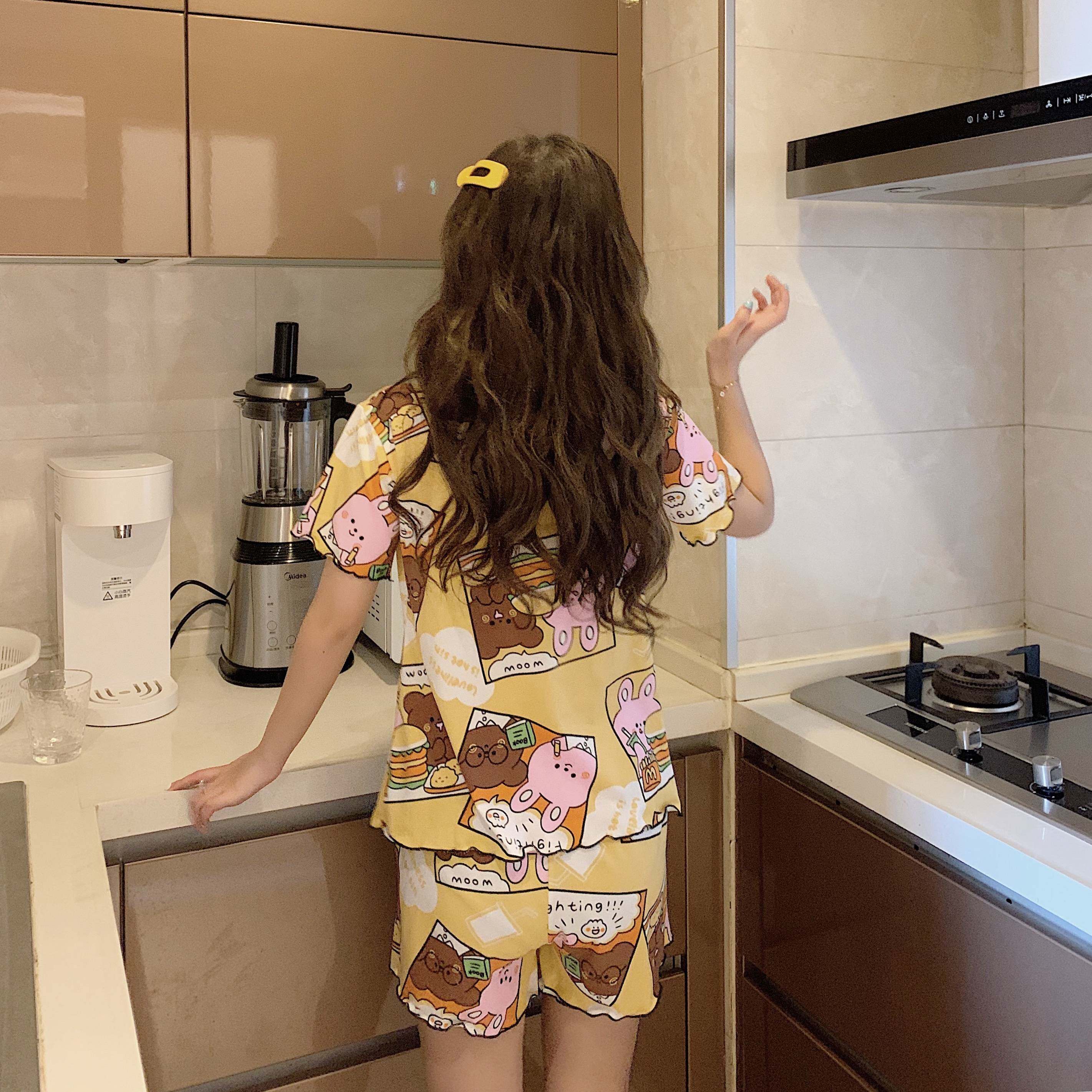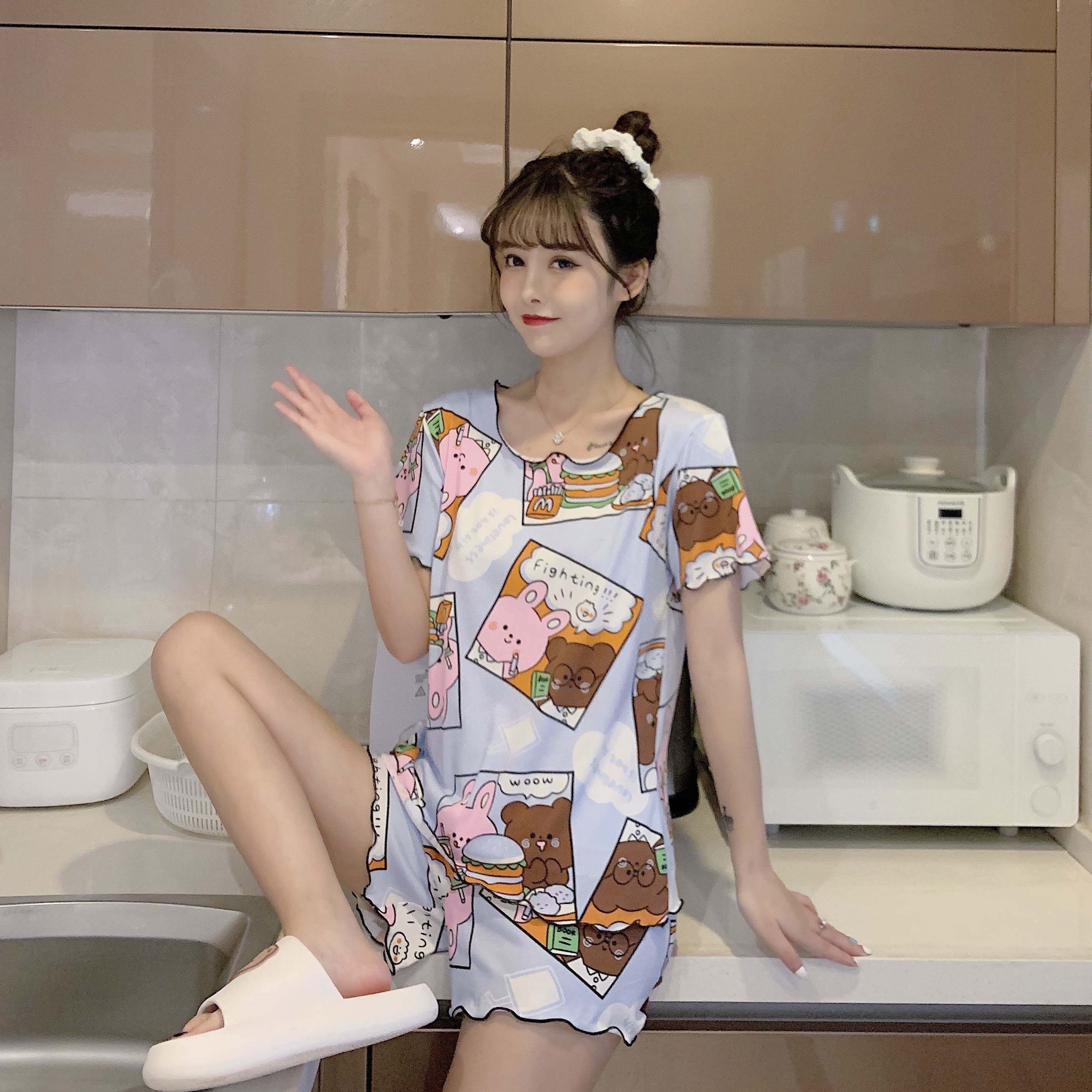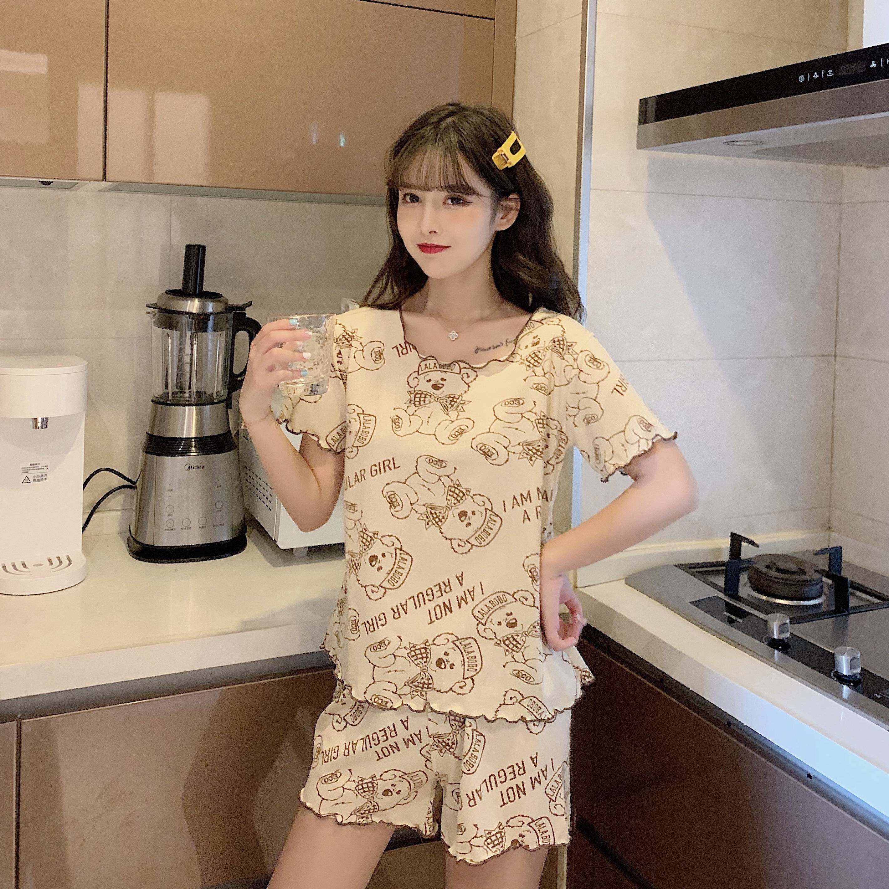 Летняя хлопковая милая пижама, милый тонкий комплект для отдыха, короткий рукав, в корейском стиле