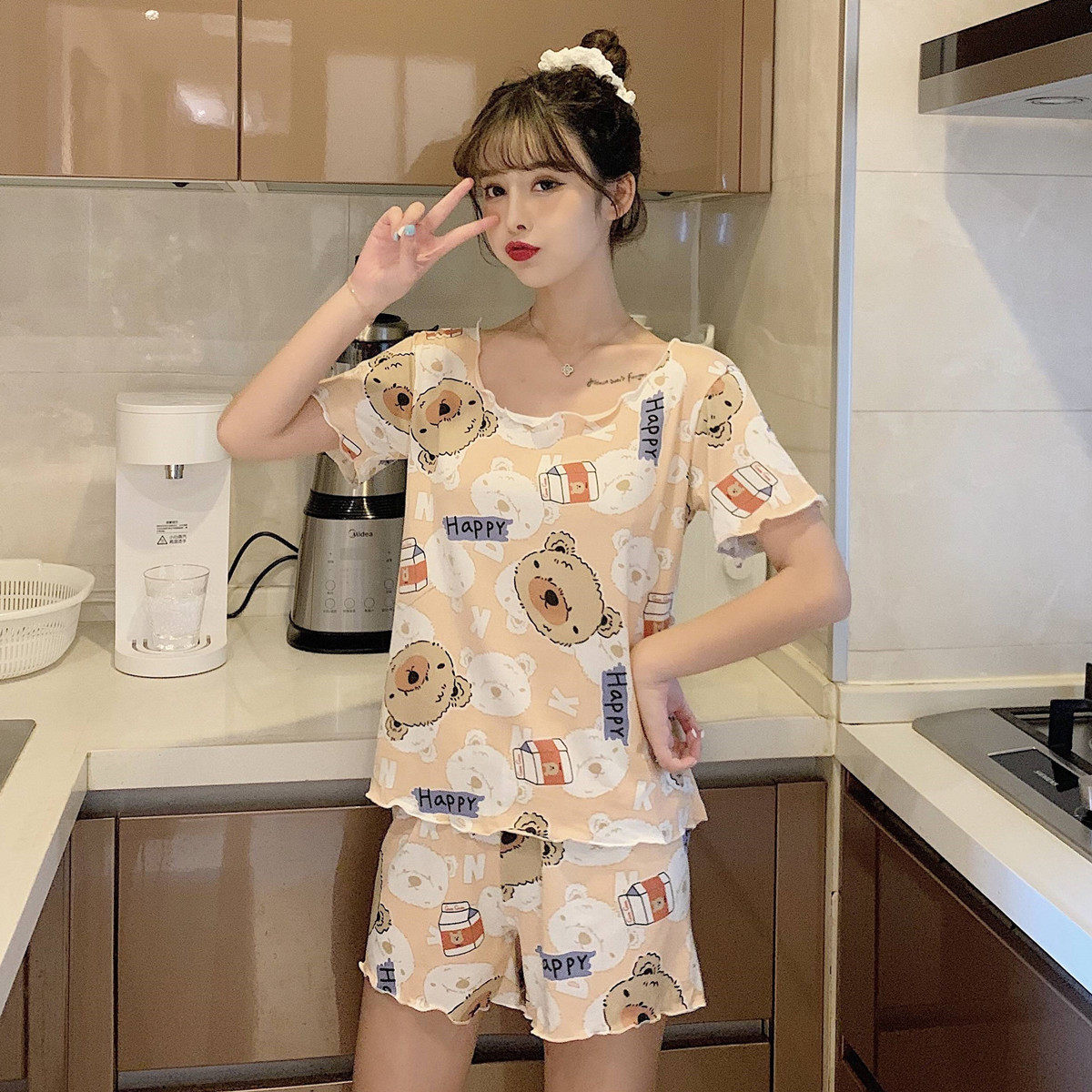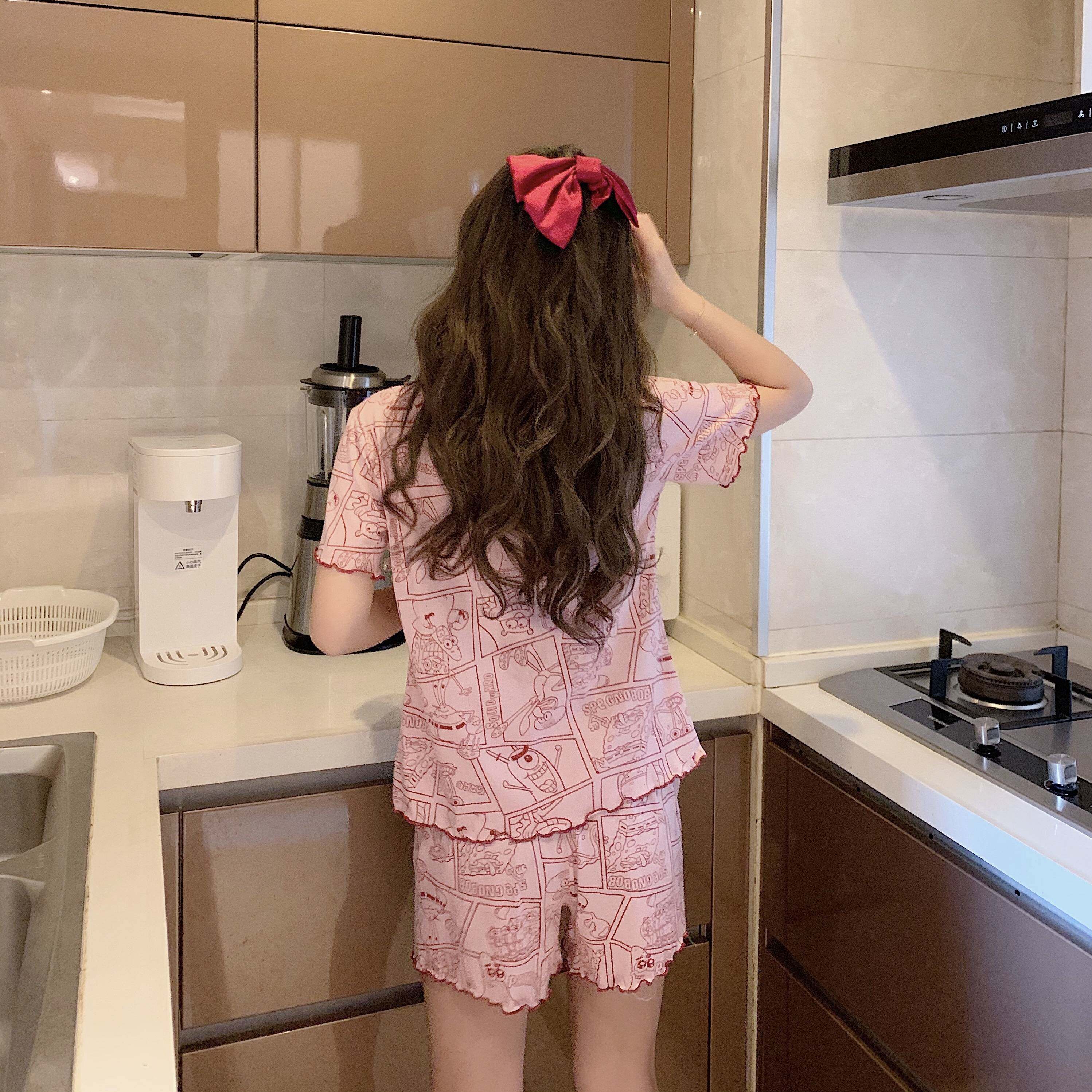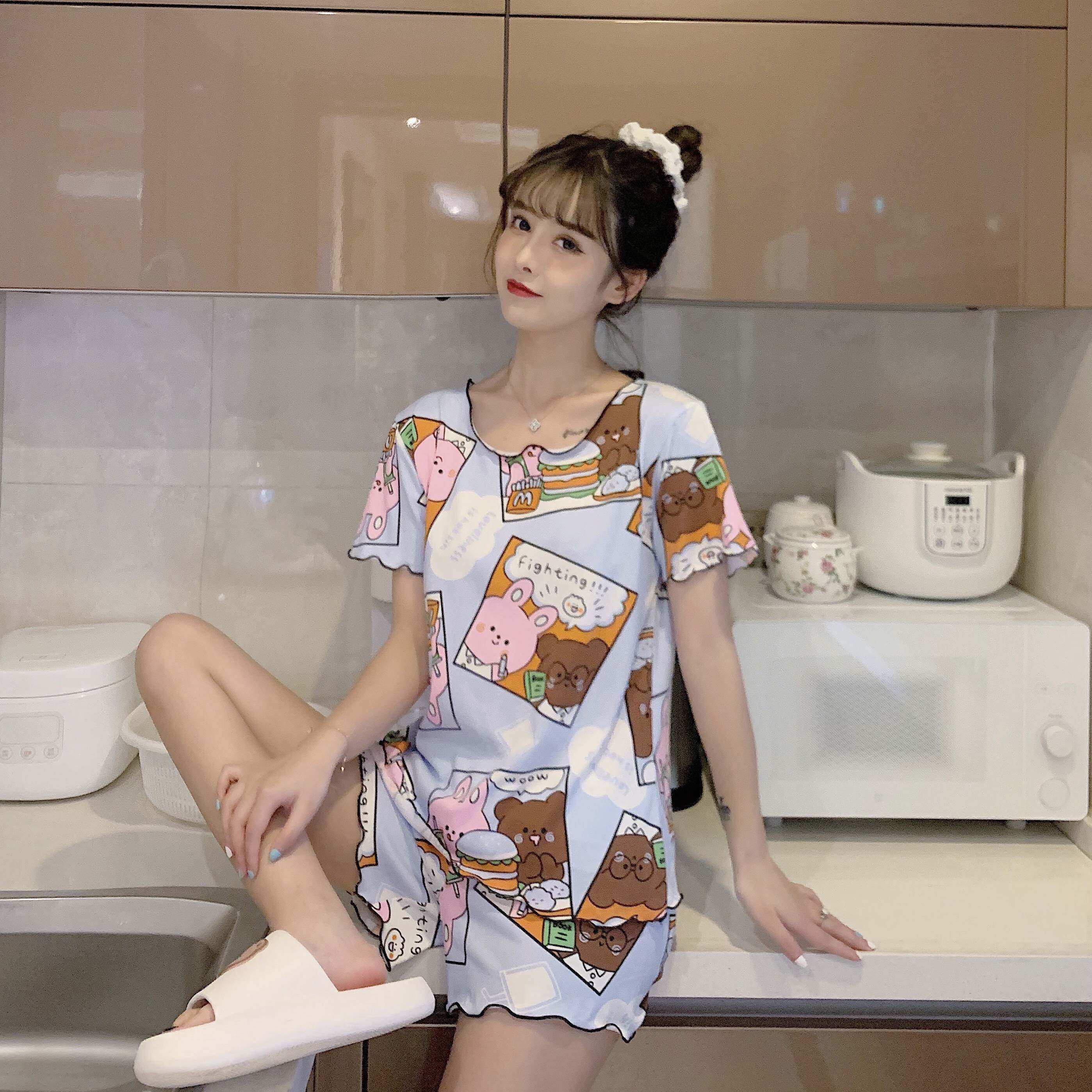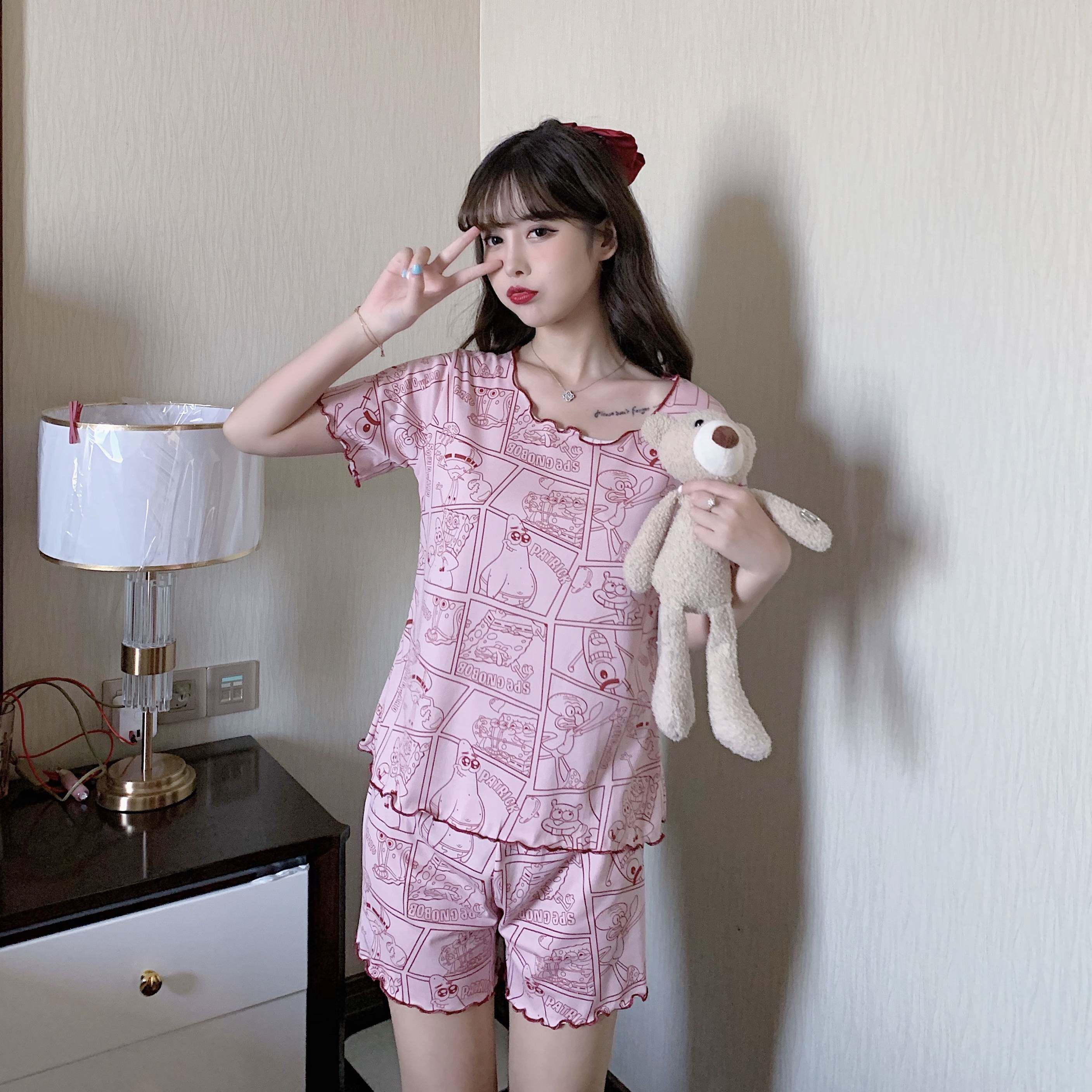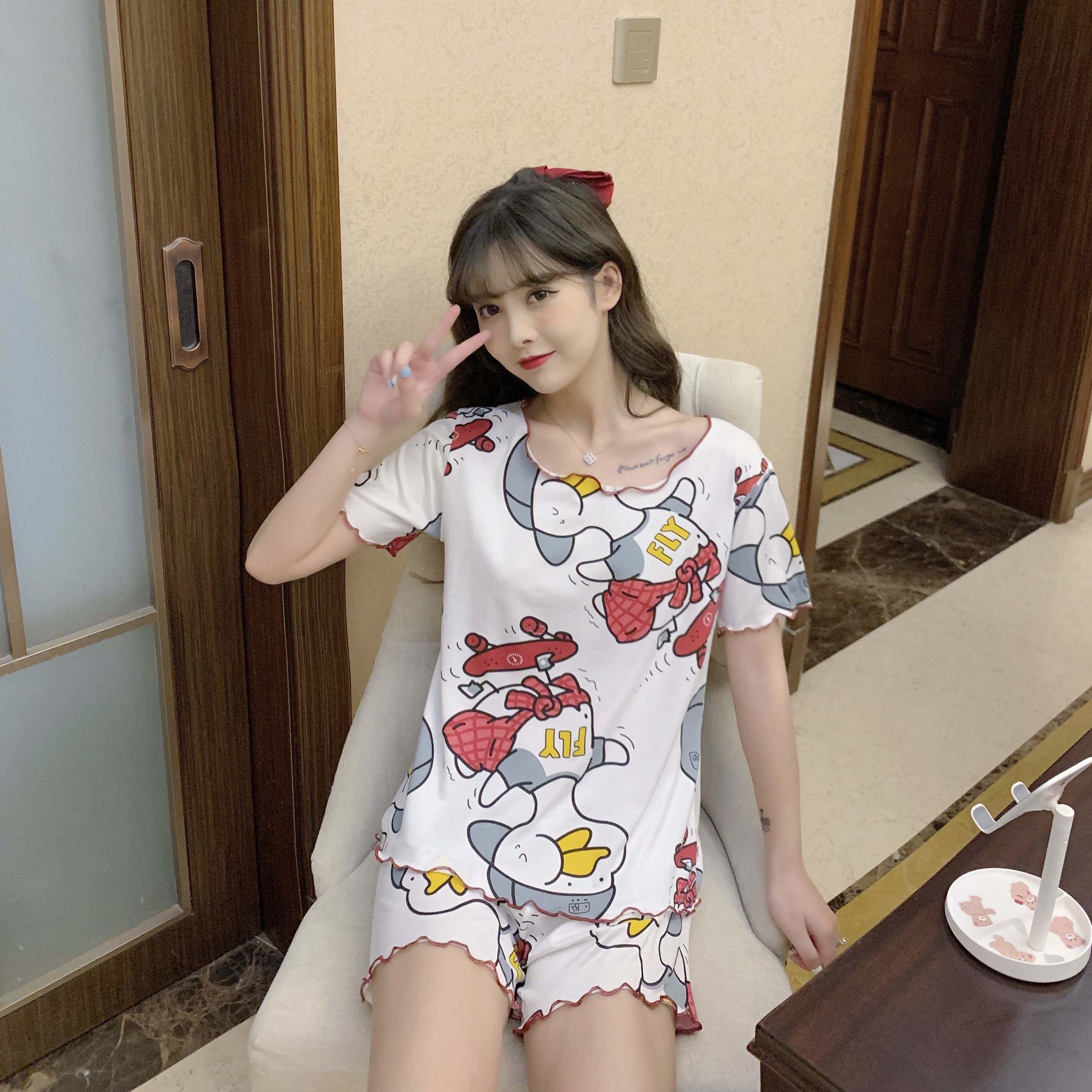 Летняя хлопковая милая пижама, милый тонкий комплект для отдыха, короткий рукав, в корейском стиле