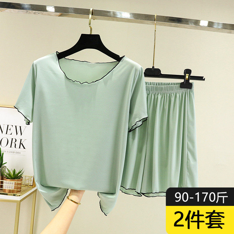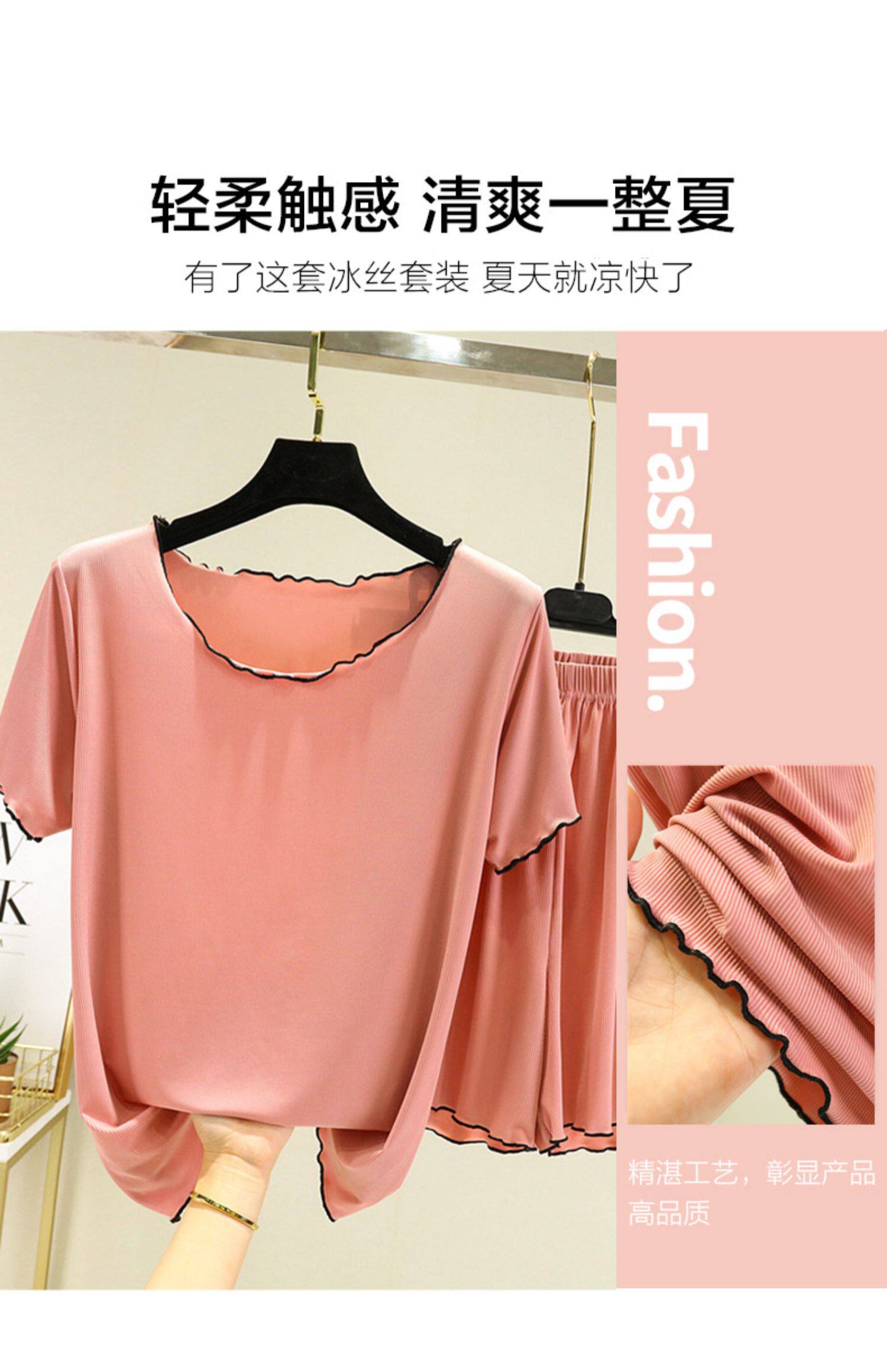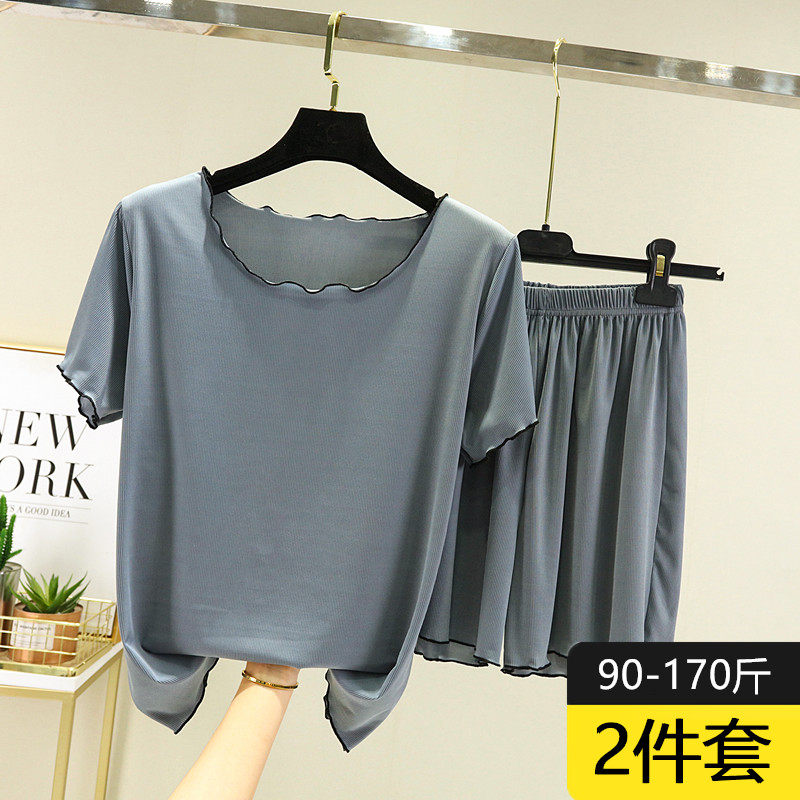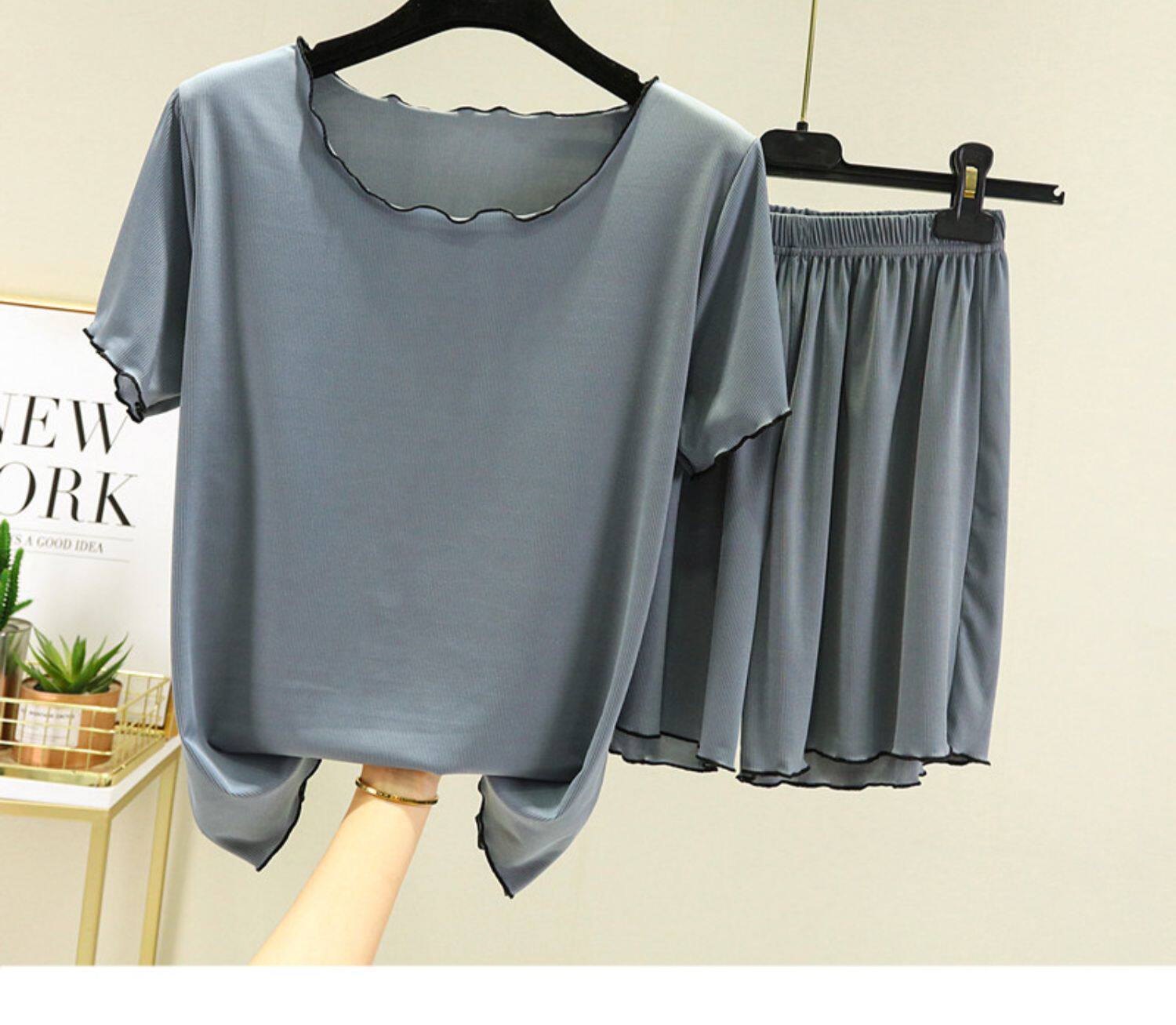 Шелковая тонкая пижама, комплект, футболка с коротким рукавом, короткий рукав, оверсайз, большой размер