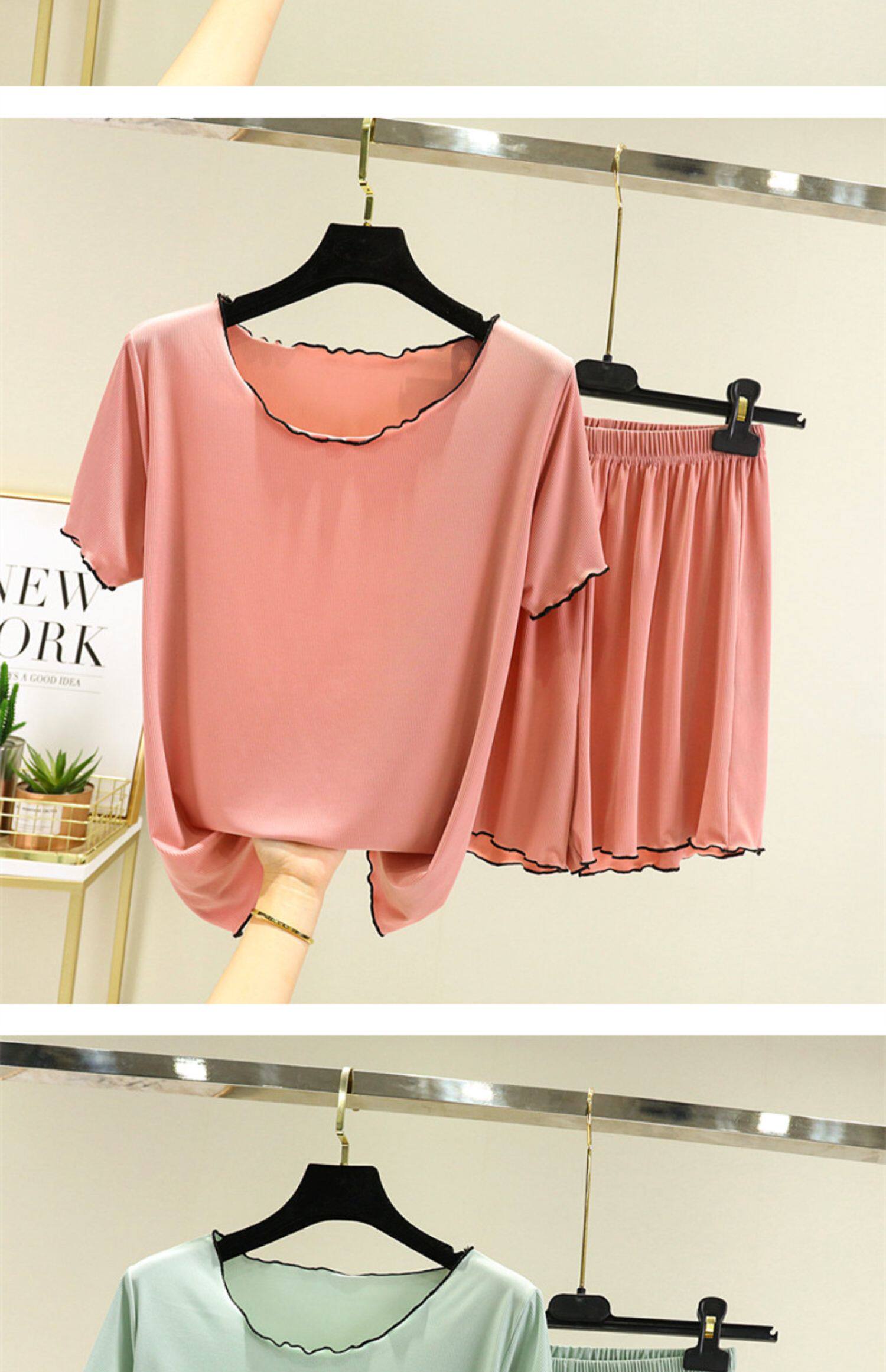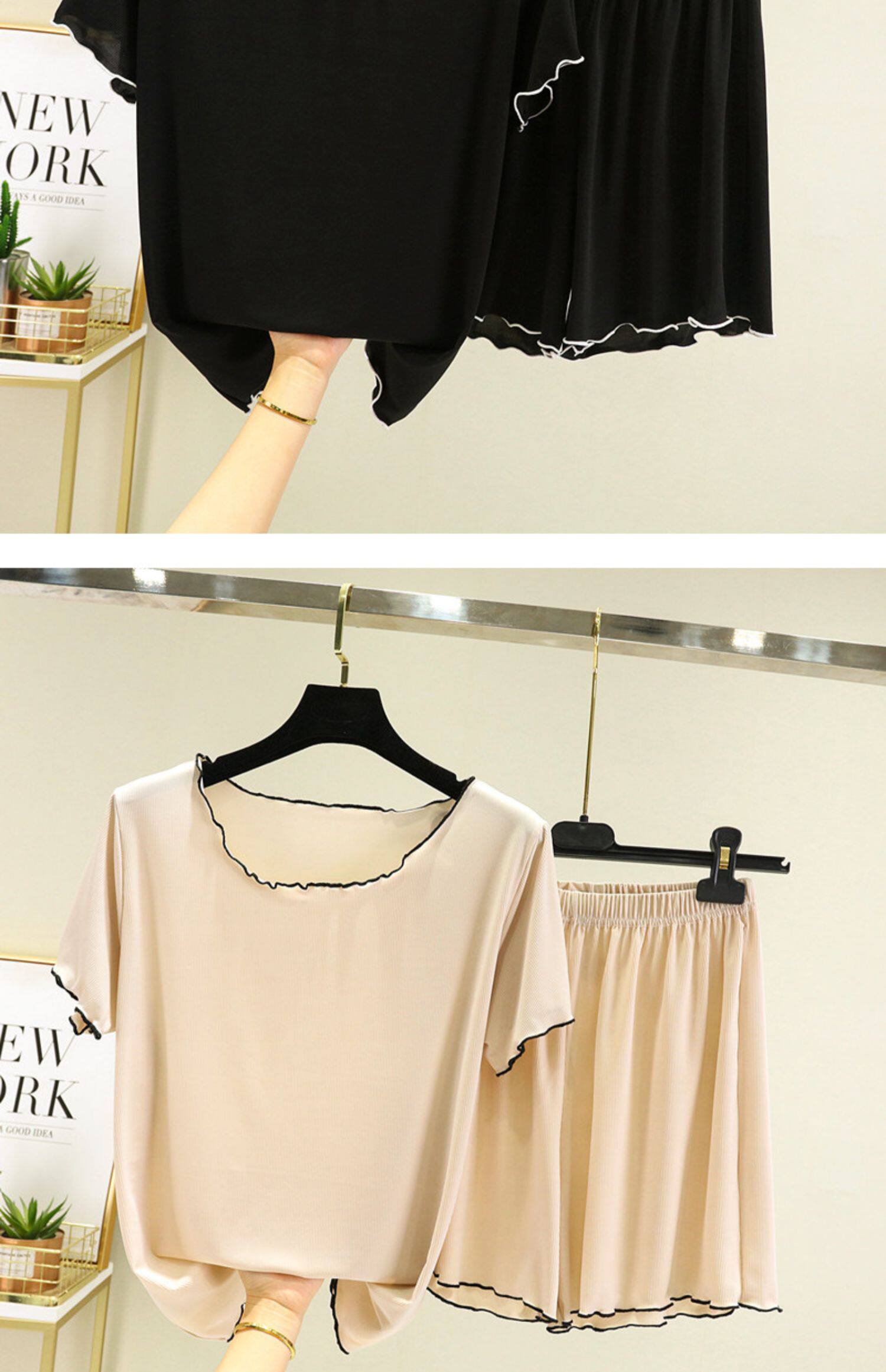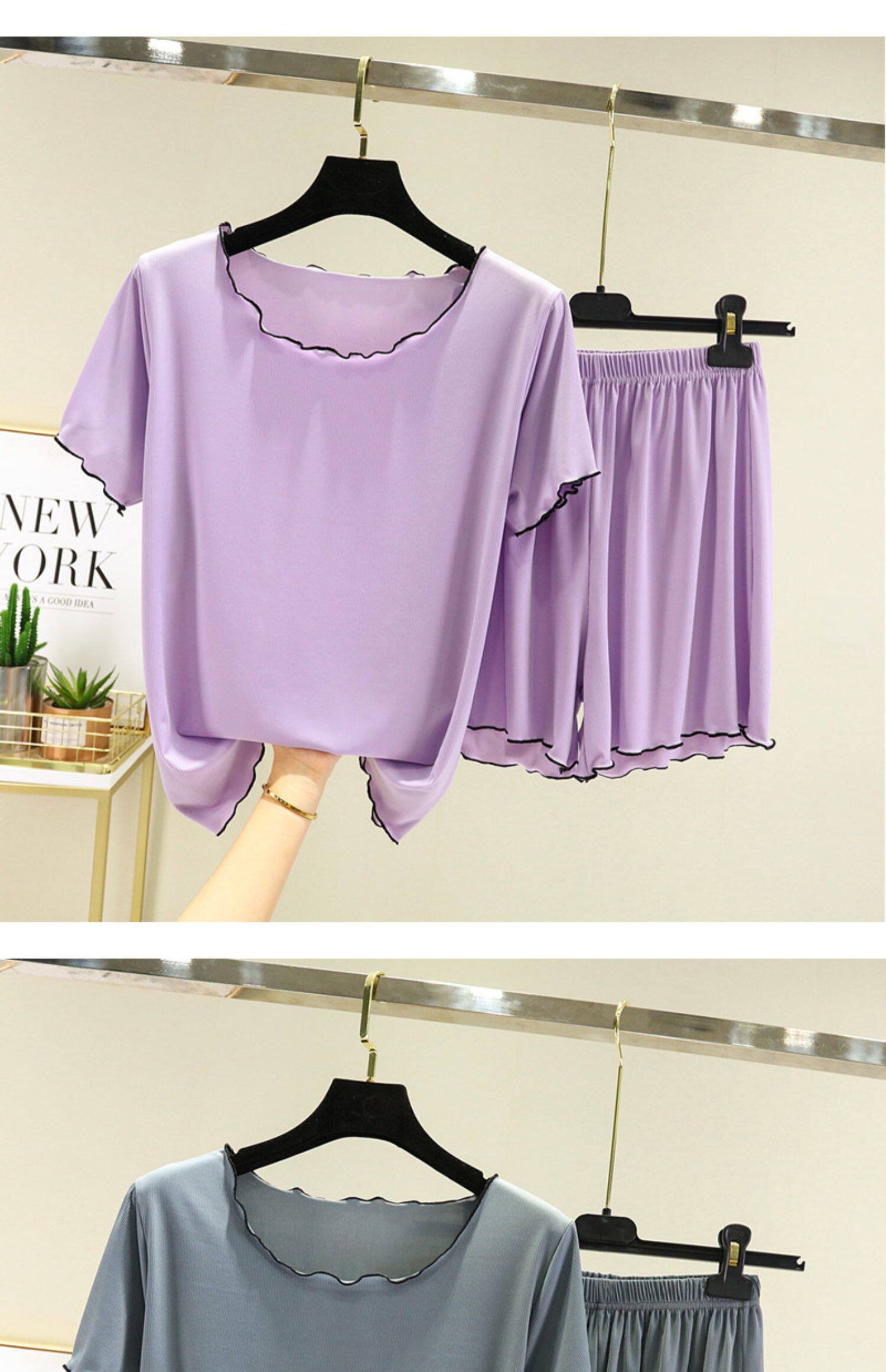 Шелковая тонкая пижама, комплект, футболка с коротким рукавом, короткий рукав, оверсайз, большой размер