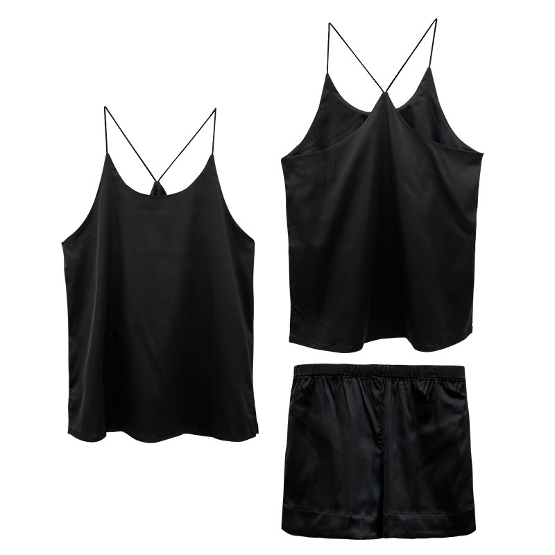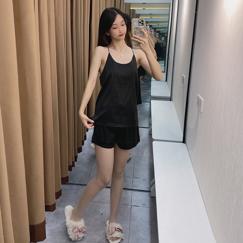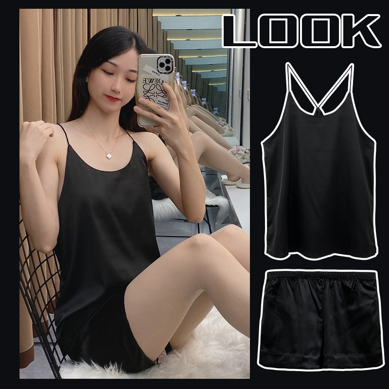 Шелковая летняя пижама, сексуальный комплект, тонкая черная майка, шорты, эффект подтяжки, коллекция 2021