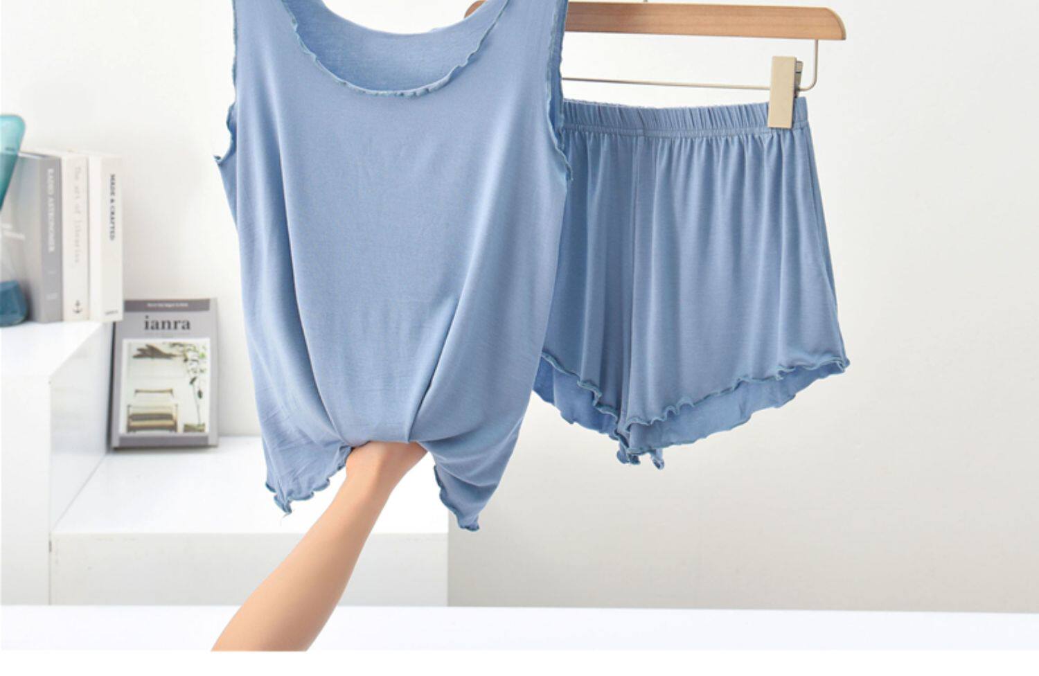 Летняя тонкая пижама, майка, шорты, комплект, свободный крой