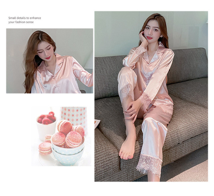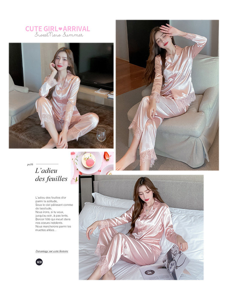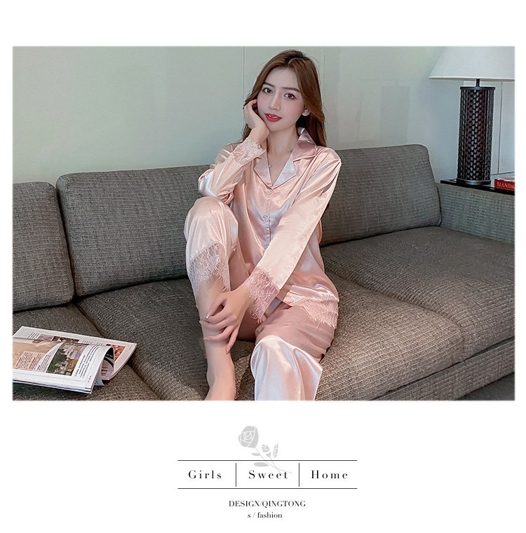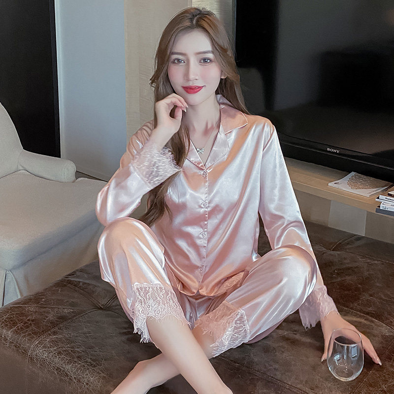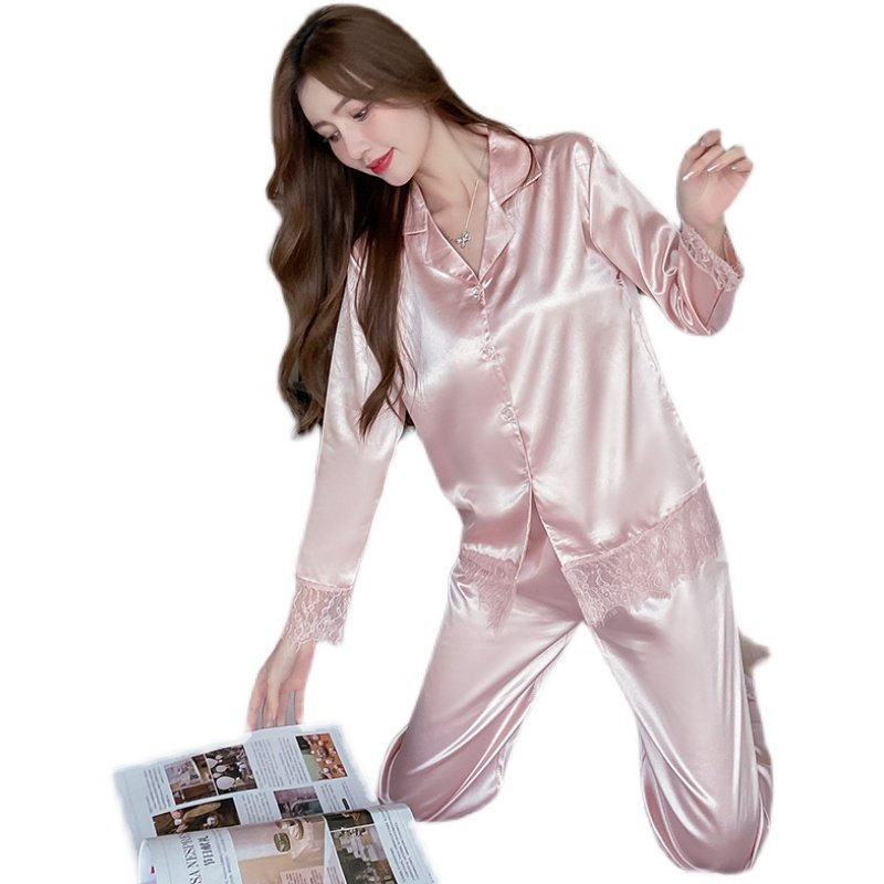 Демисезонная осенняя пижама, шелковый лонгслив, розовый цветной небольшой комплект, в стиле Шанель