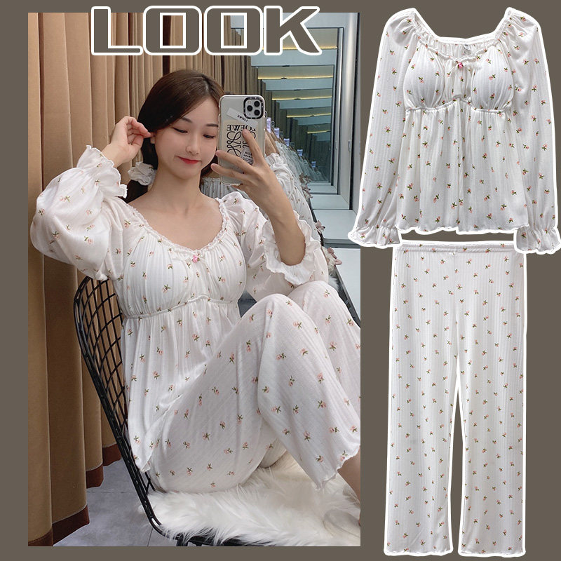 Топ с чашечками, осенняя пижама, хлопковый лонгслив, комплект, летние цветочные композиции, цветочный принт