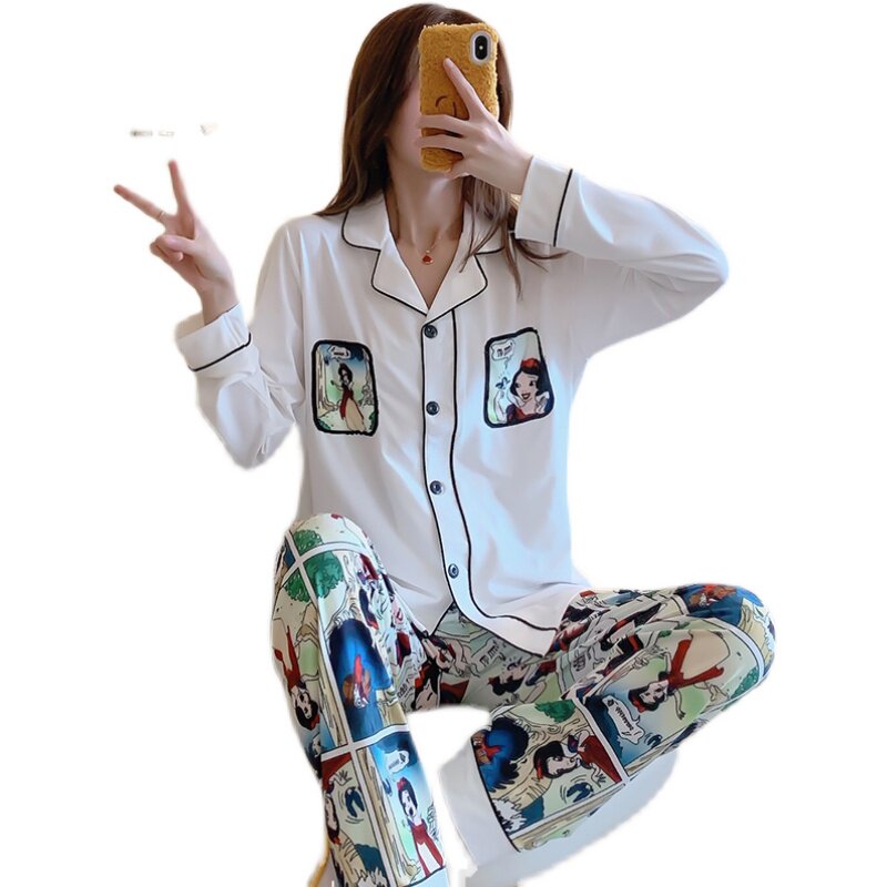 Осенняя пижама, хлопковый лонгслив, нарукавники, милый осенний комплект, 2021 года
