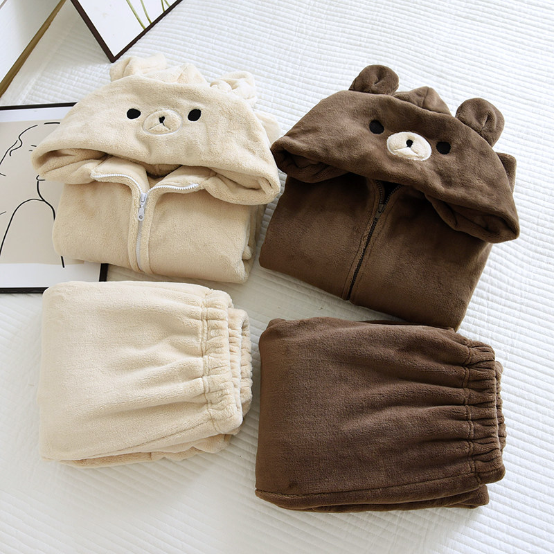 Коралловая бархатная демисезонная утепленная пижама, утепленное термобелье, кардиган для школьников и студентов, зимняя рубашка, комплект, для влюбленных
