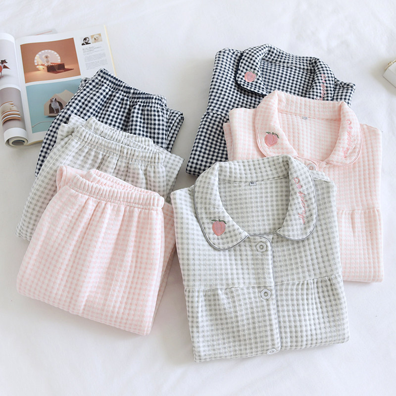 Демисезонная удерживающая тепло пижама, хлопковый лонгслив, стеганый комплект, увеличенная толщина, свободный крой
