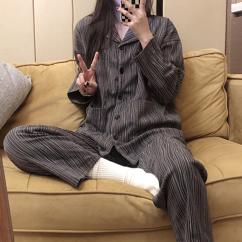 Японская хлопковая брендовая пижама, лонгслив подходит для мужчин и женщин, штаны, комплект, для влюбленных, изысканный стиль