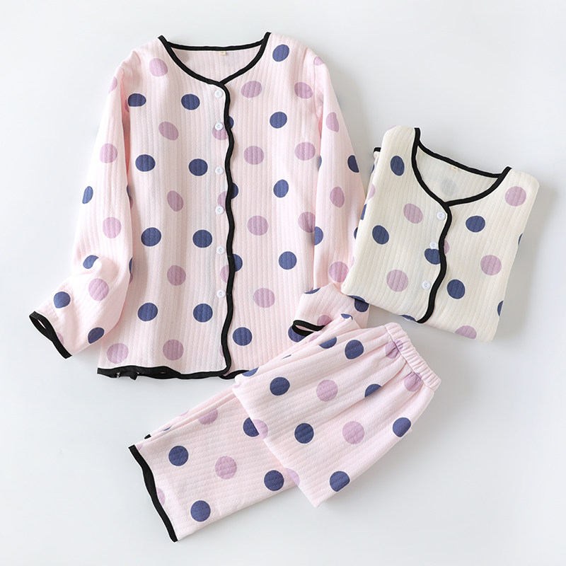 Демисезонная пижама, хлопковый японский лонгслив, стеганый комплект, увеличенная толщина