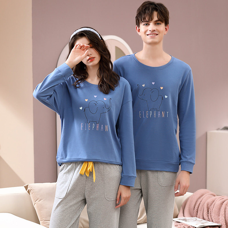 Демисезонная хлопковая пижама подходит для мужчин и женщин, лонгслив, нарукавники, демисезонный хлопковый комплект для влюбленных, простой и элегантный дизайн, в корейском стиле