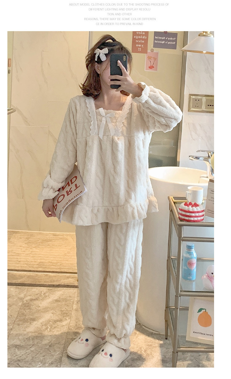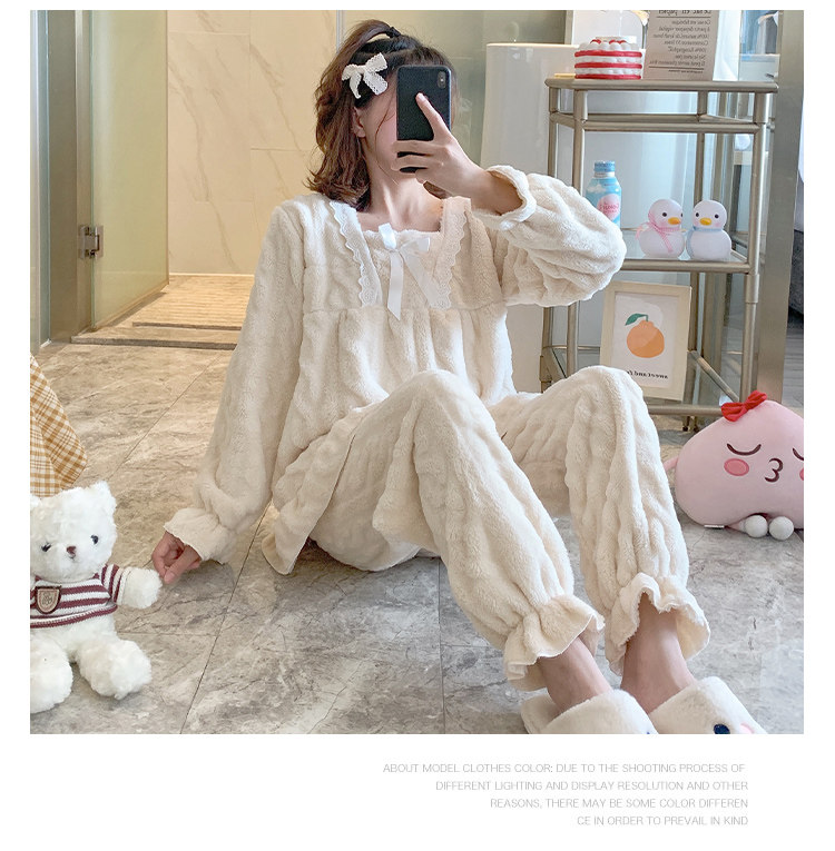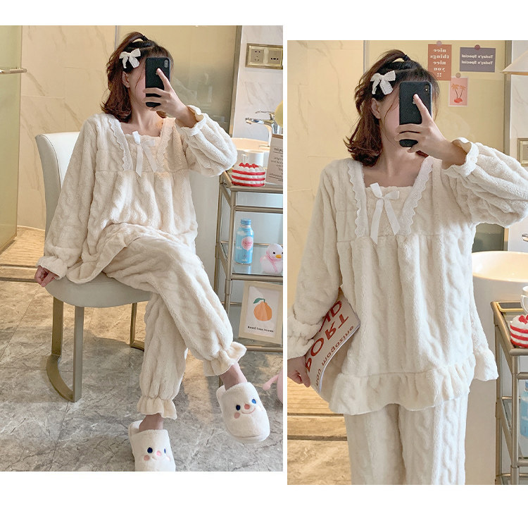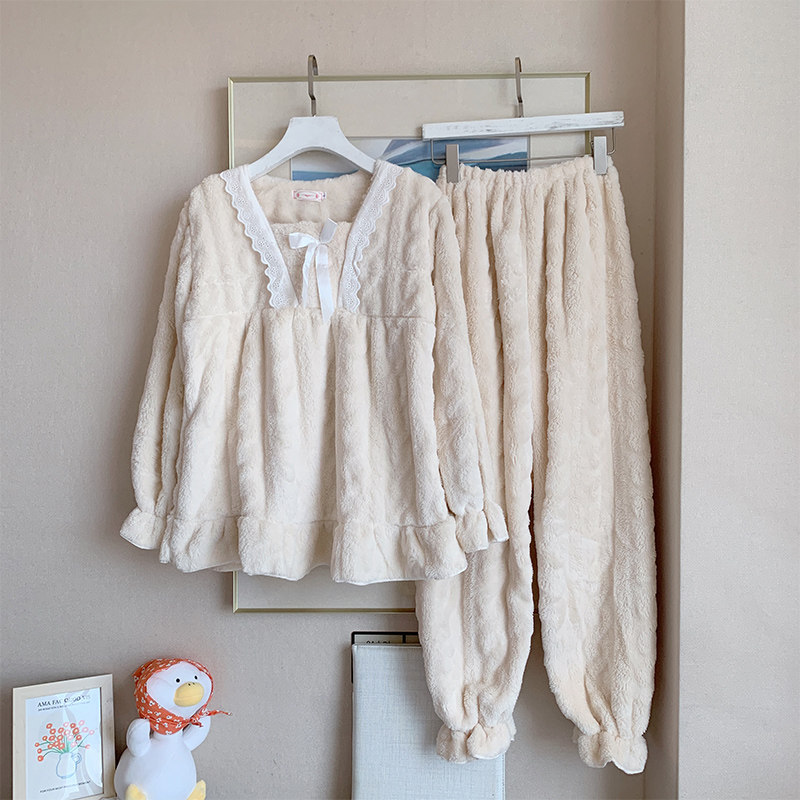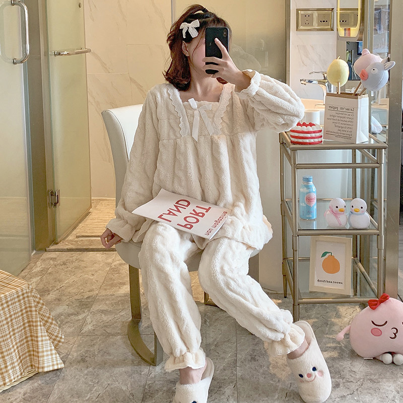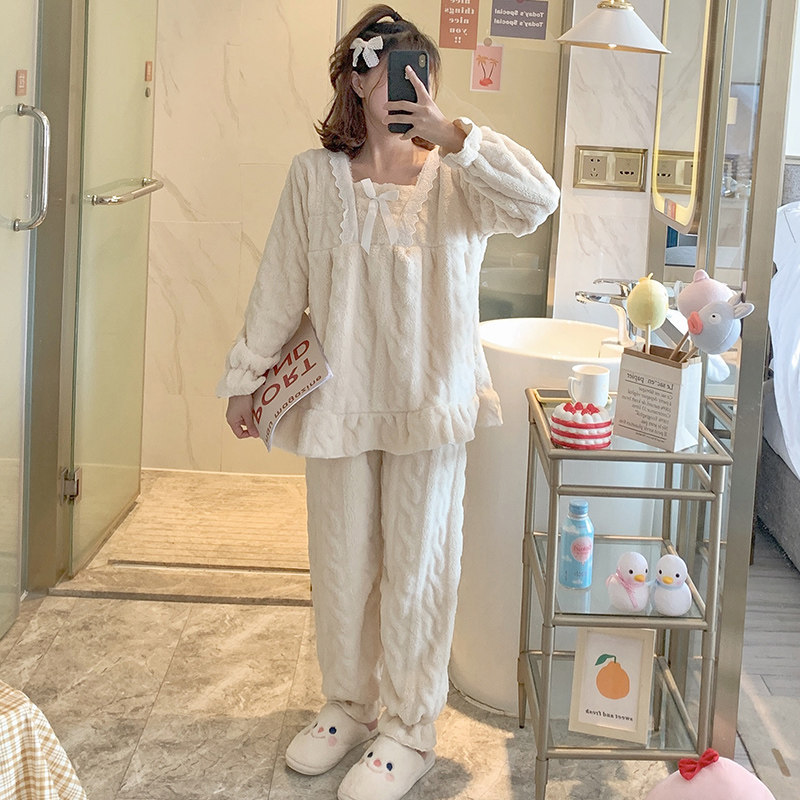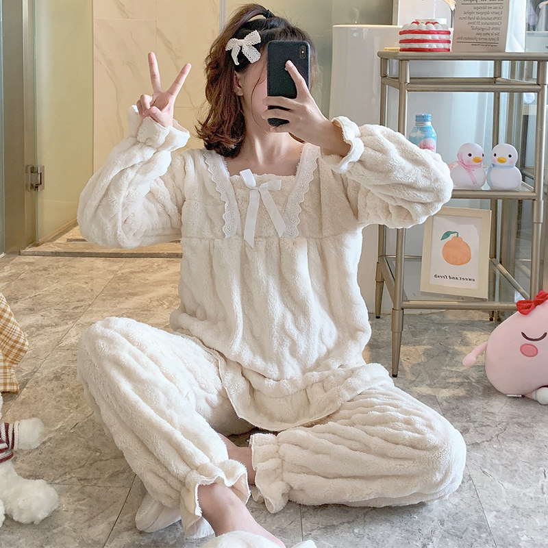 Коралловая бархатная демисезонная пижама для принцессы, фланелевый осенний комплект для школьников, увеличенная толщина, размер