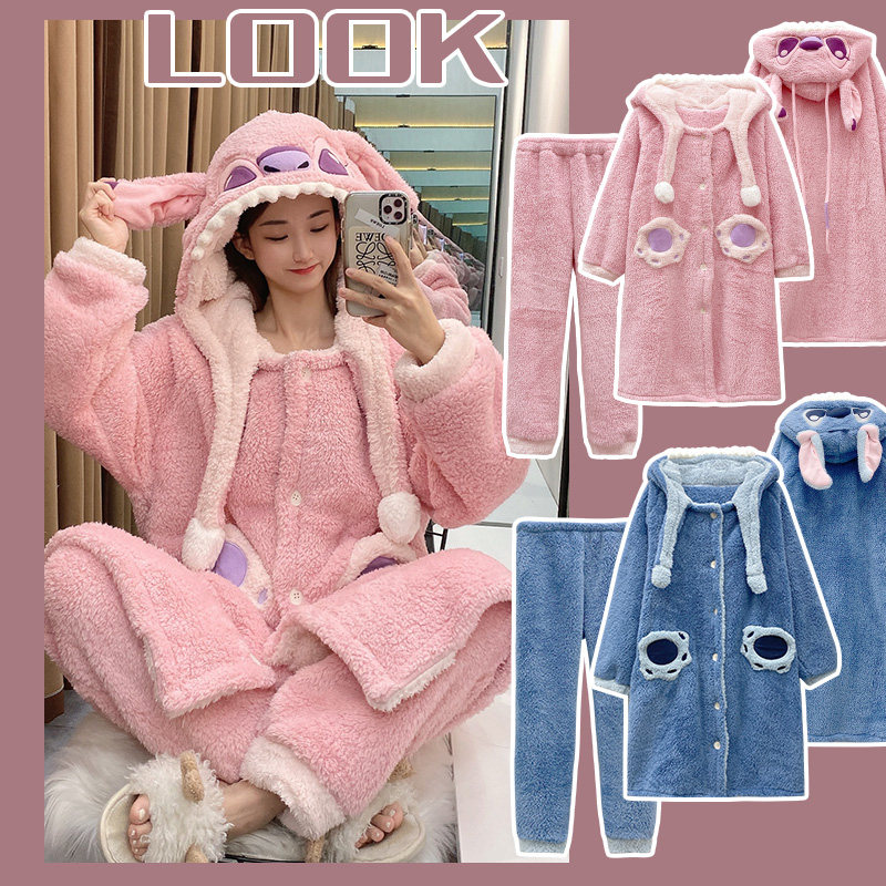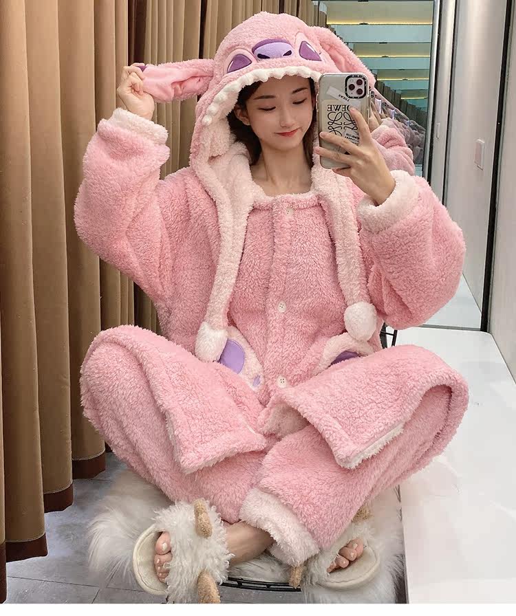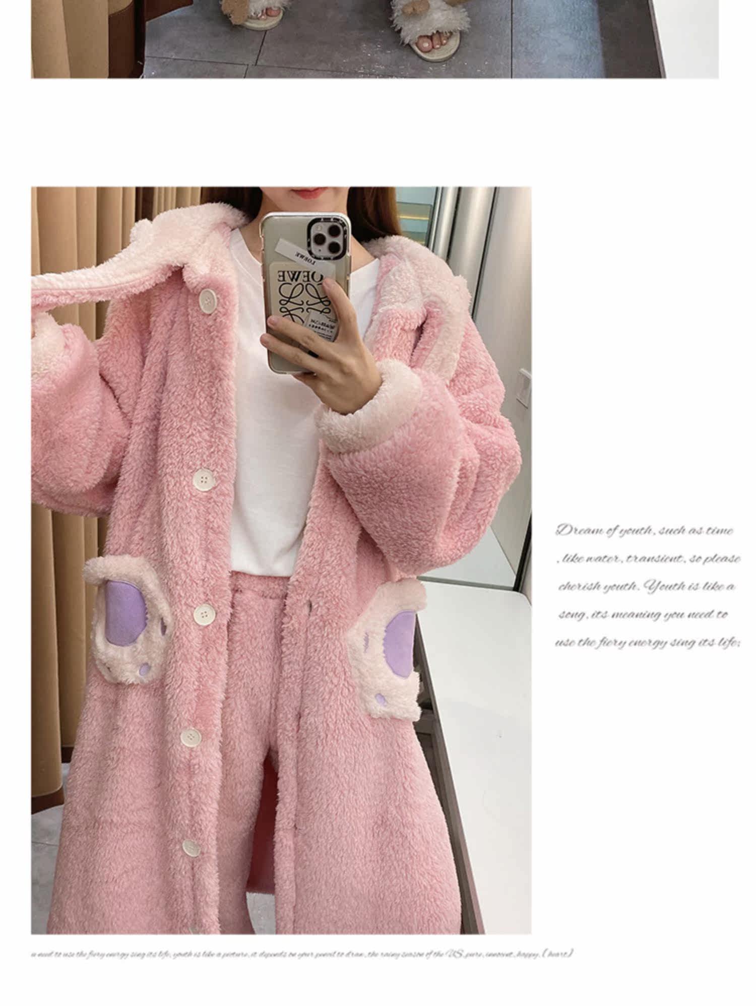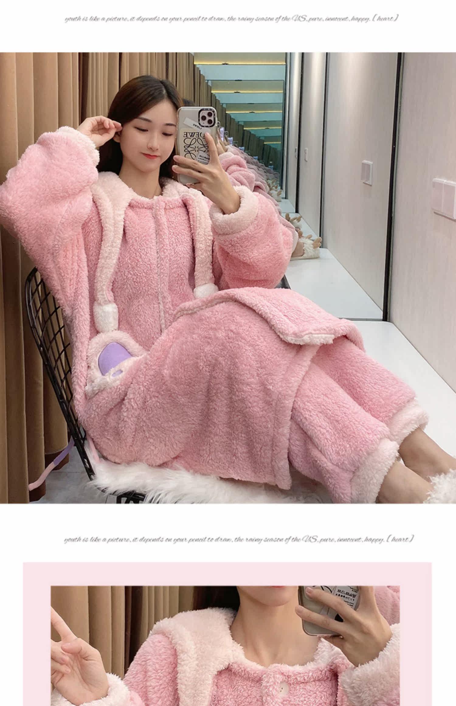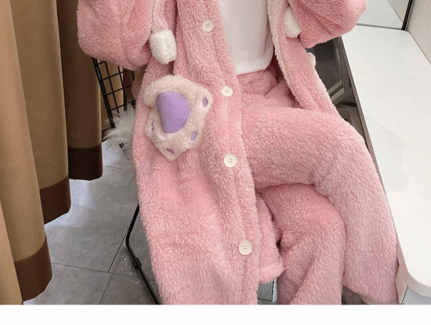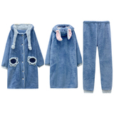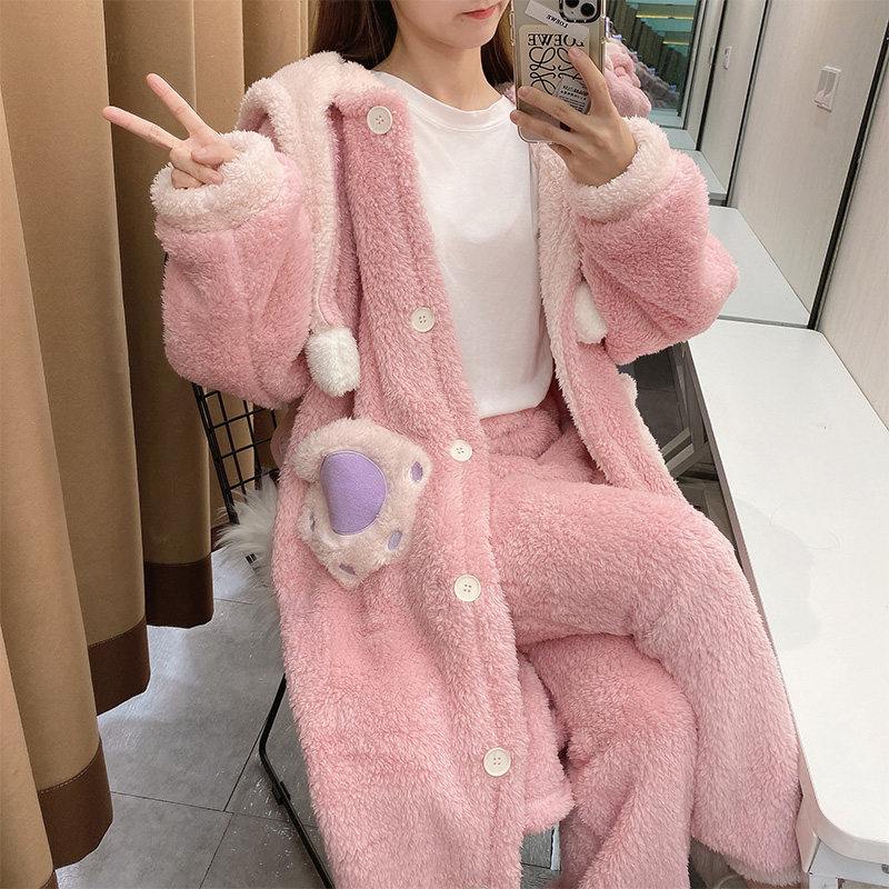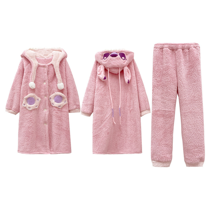 Зимняя коралловая бархатная розовая пижама, флисовый мультяшный длинный банный халат, комплект, для влюбленных, увеличенная толщина