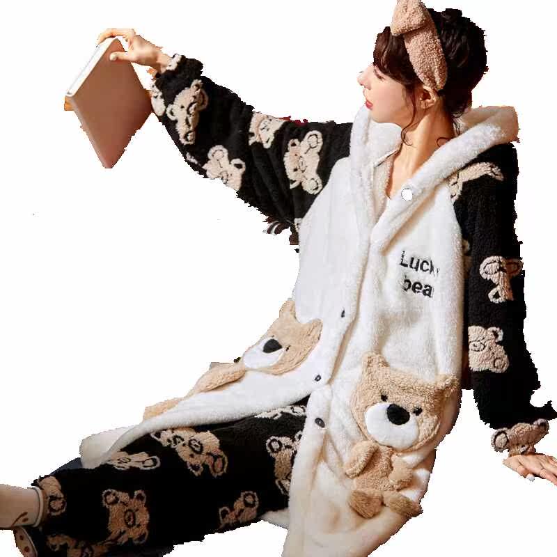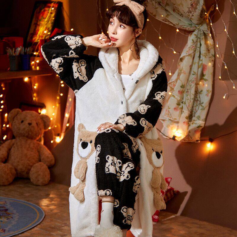 Демисезонный банный халат, флисовая длинная пижама, фланелевый комплект, 2021 года, увеличенная толщина