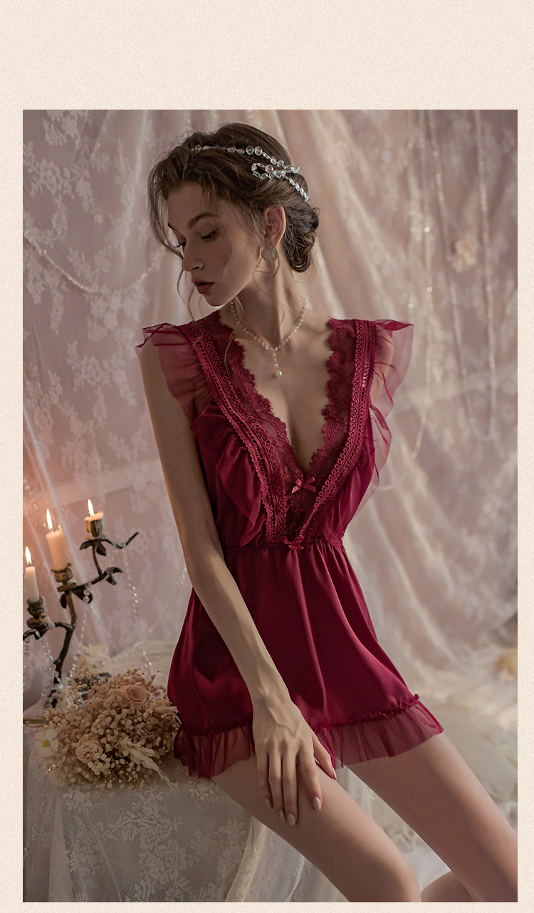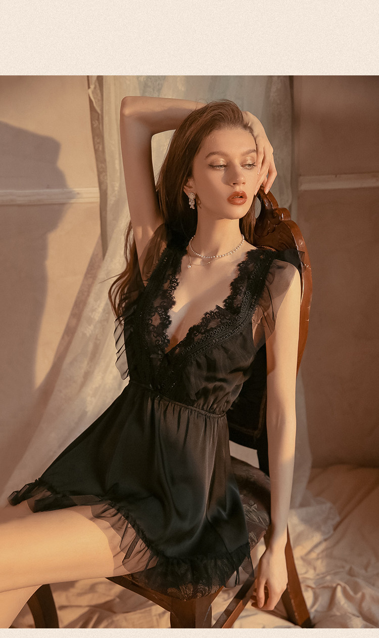 澄澈 Сексуальная пижама, летний шелковый кружевной топ с чашечками, изысканный стиль, эффект подтяжки
