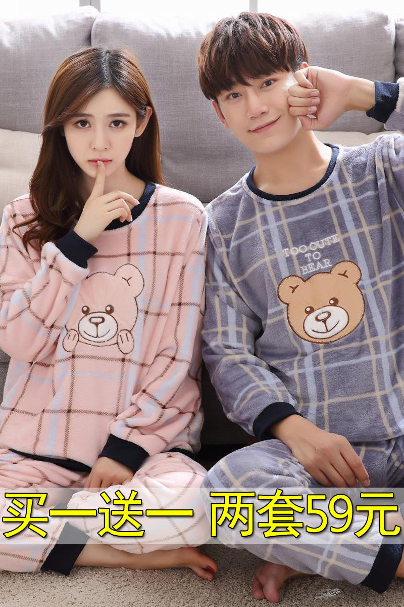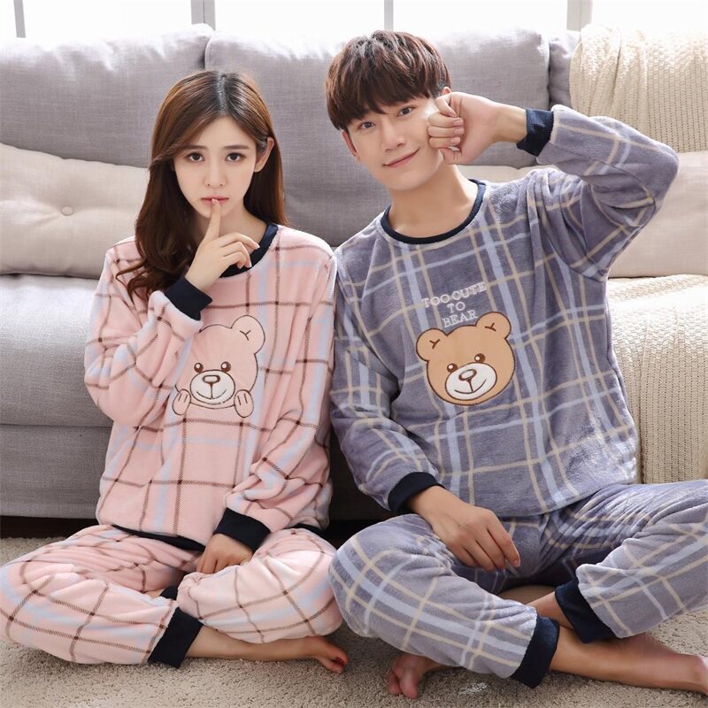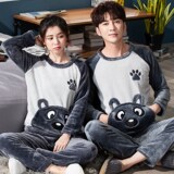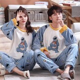 Демисезонная фланелевая мультяшная милая флисовая удерживающая тепло пижама, коралловый бархатный комплект, для влюбленных, оверсайз