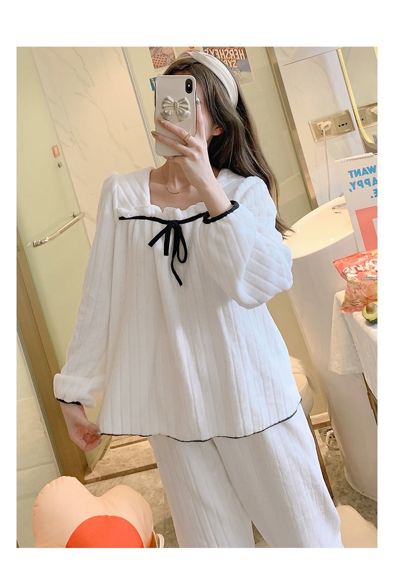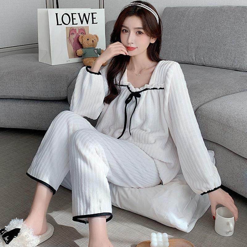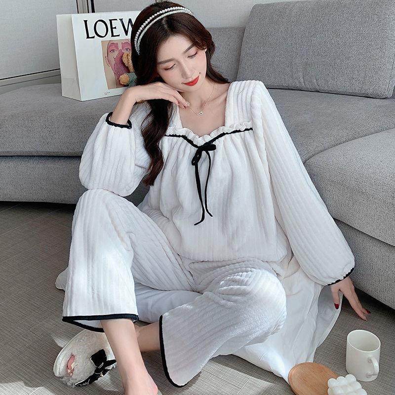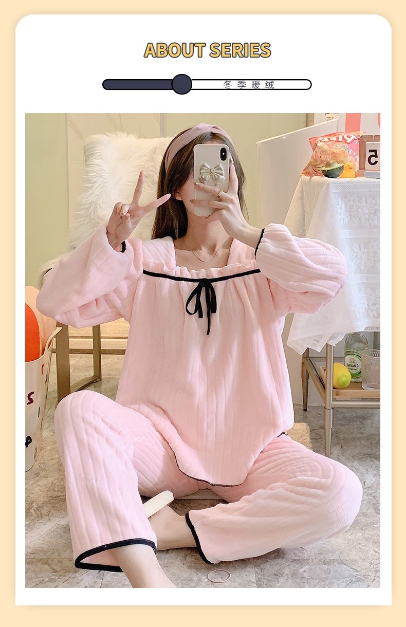 Коралловая бархатная демисезонная брендовая пижама, фланелевый комплект для школьников и студентов, популярно в интернете, в стиле Шанель, увеличенная толщина