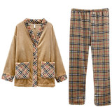 Зимняя коралловая бархатная пижама, утепленный кардиган, фланелевый мужской комплект, для влюбленных
