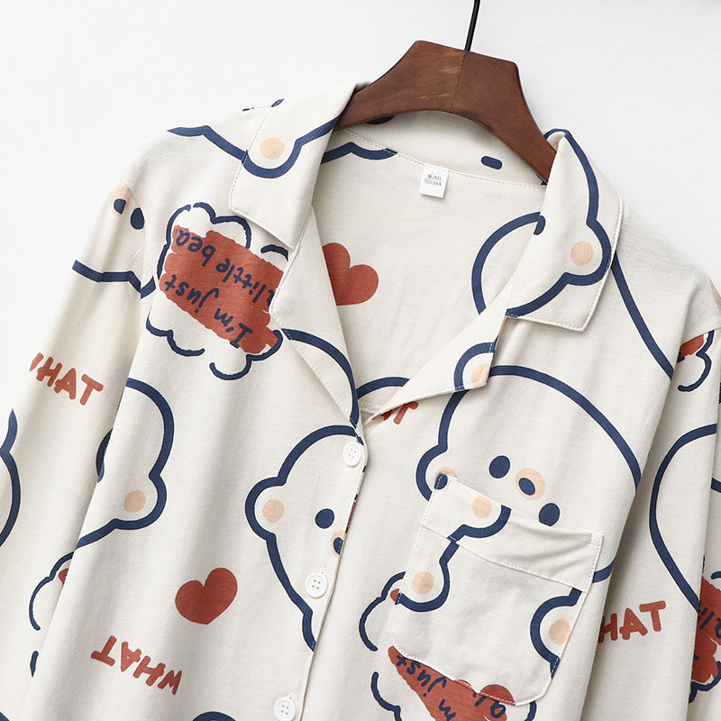 Весенняя мультяшная пижама, комплект для отдыха, трикотажный хлопковый милый лонгслив, тренд сезона