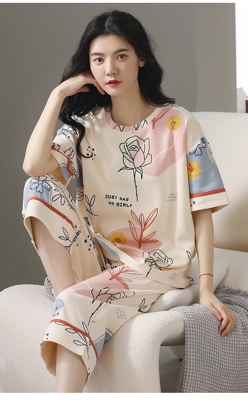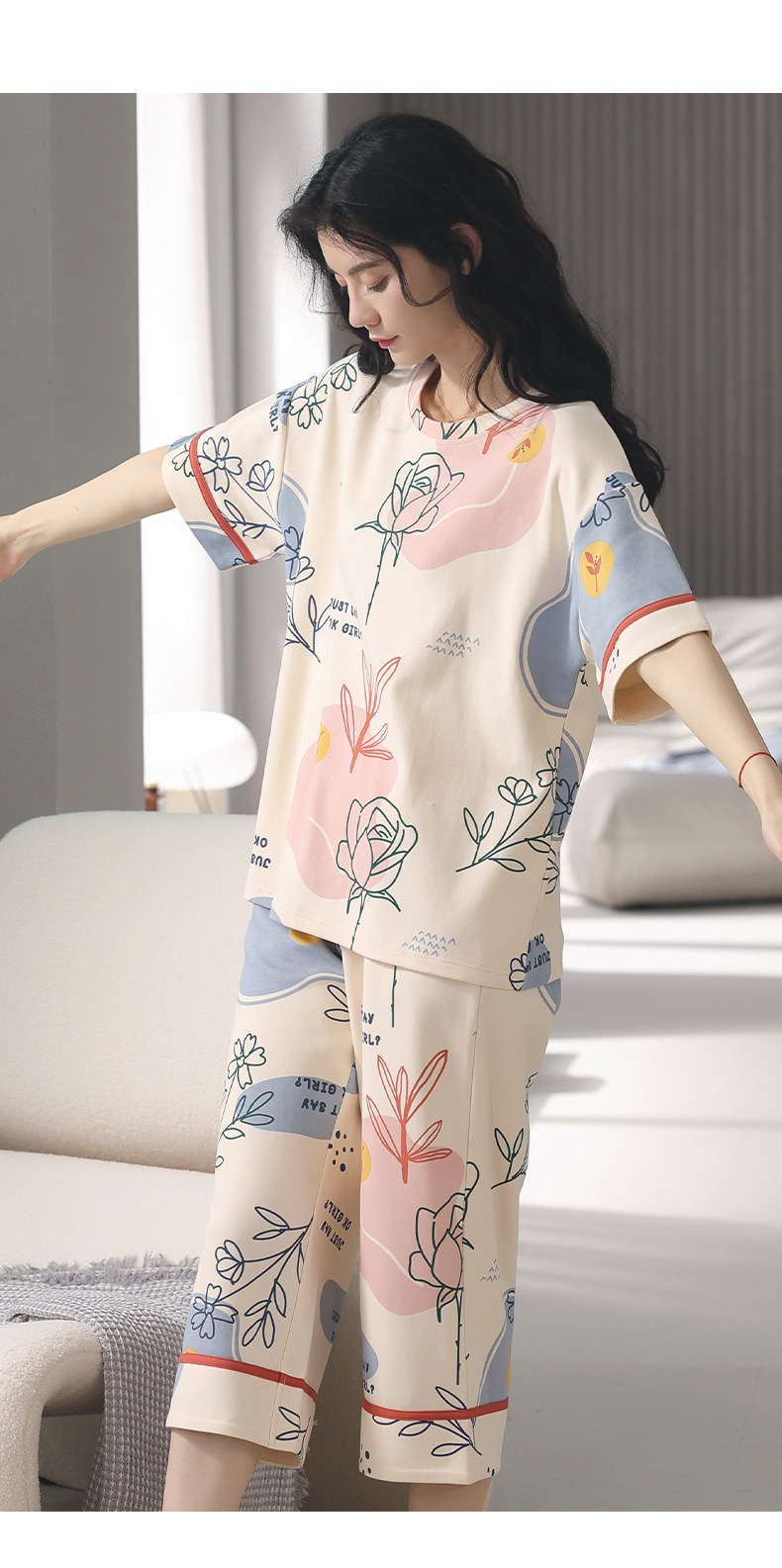 Летняя хлопковая дышащая осенняя пижама, свободный крой, 2024 года