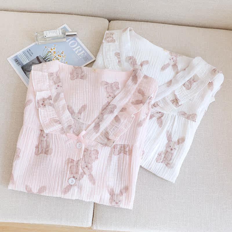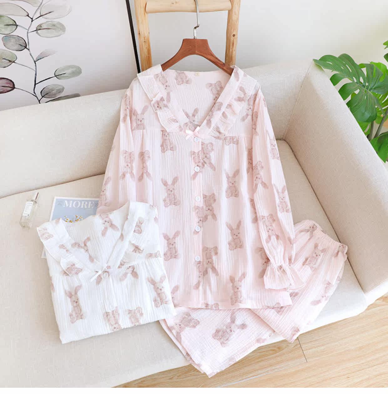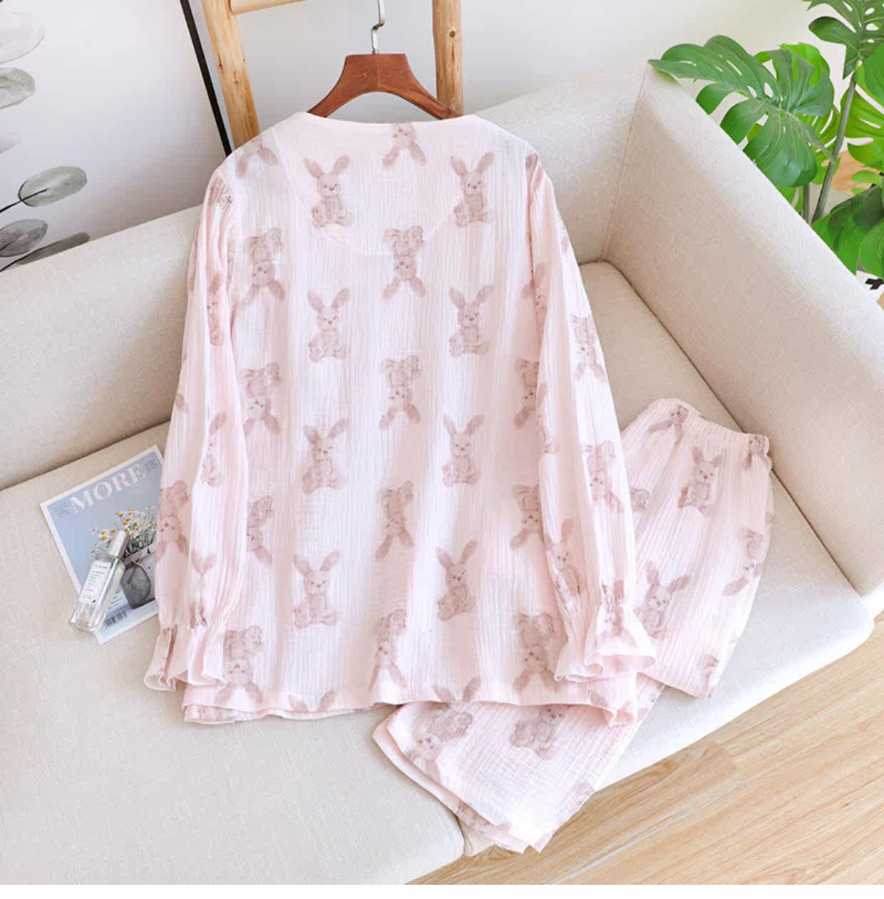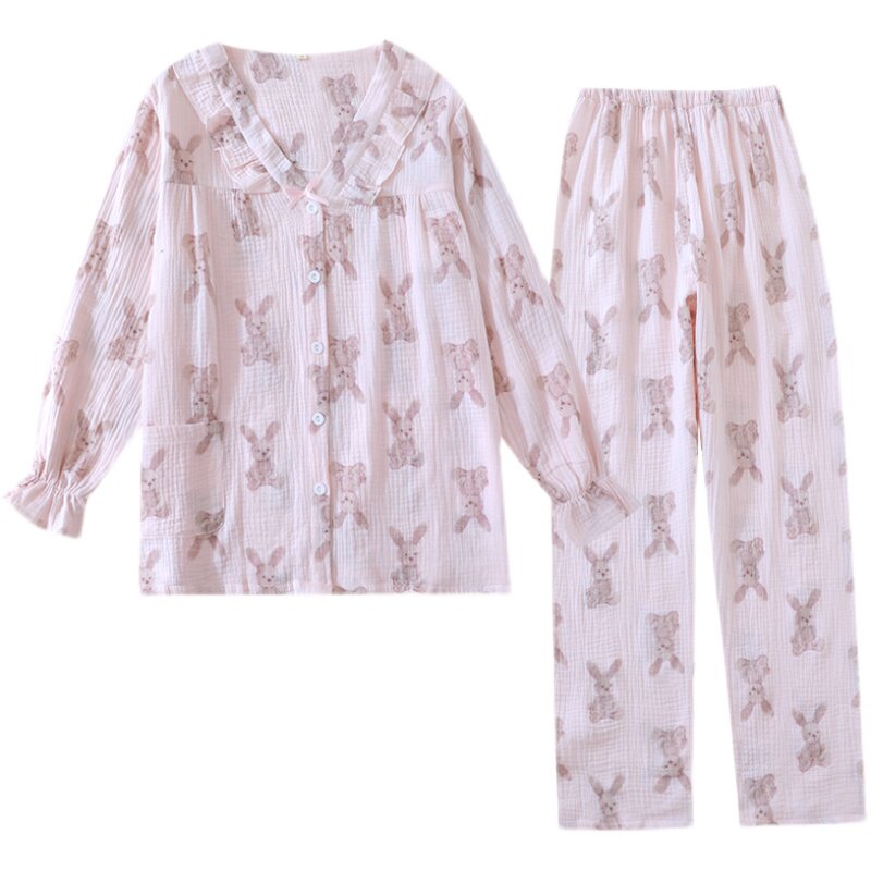 Хлопковая осенняя демисезонная пижама, летний хлопковый марлевый мультяшный комплект, коллекция 2022, V-образный вырез, популярно в интернете