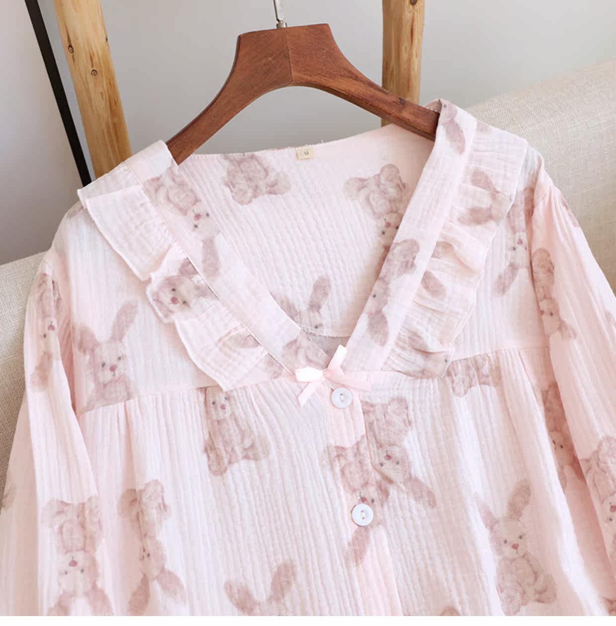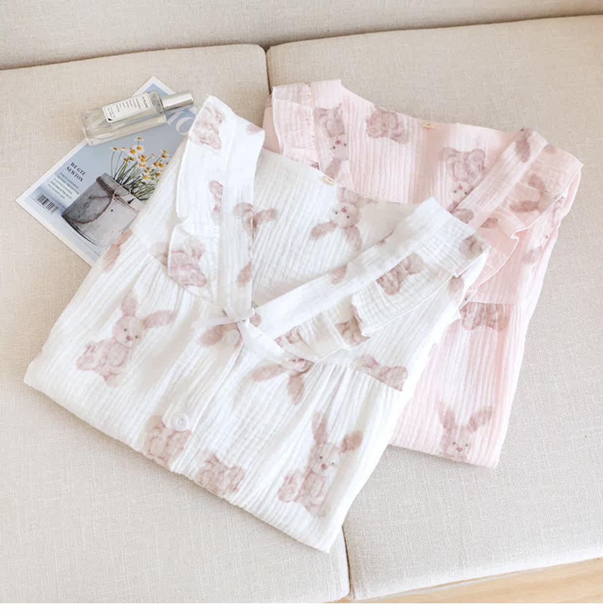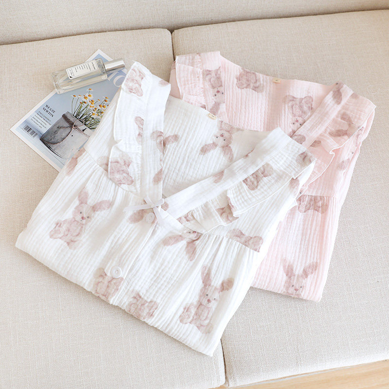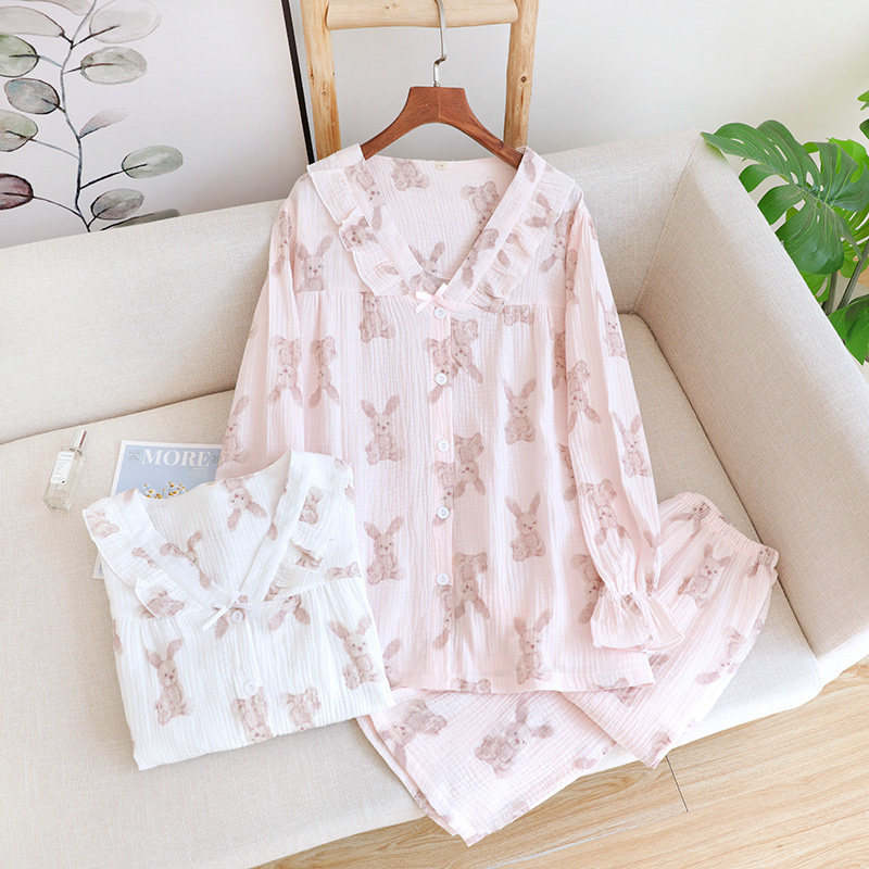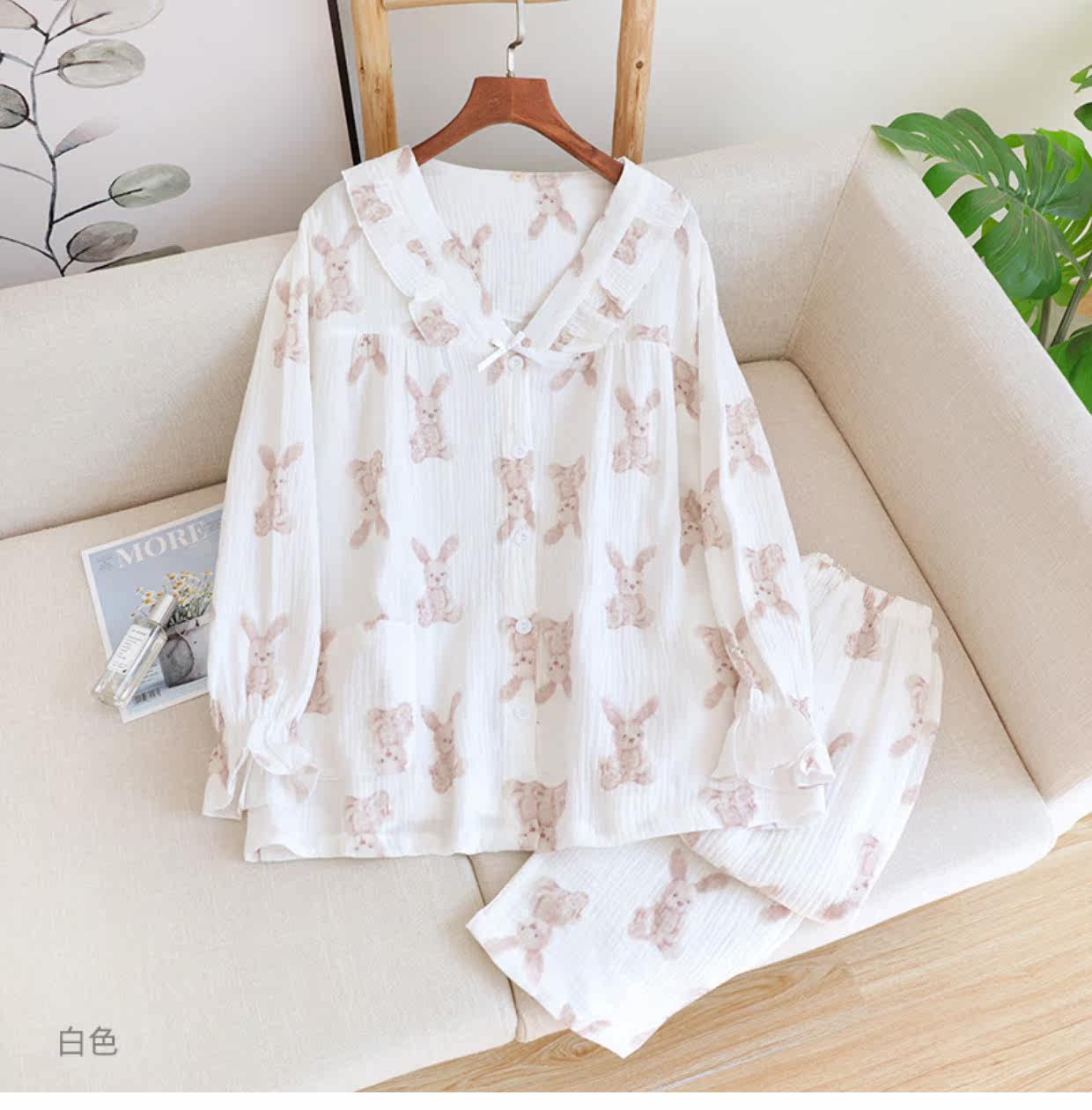 Хлопковая осенняя демисезонная пижама, летний хлопковый марлевый мультяшный комплект, коллекция 2022, V-образный вырез, популярно в интернете