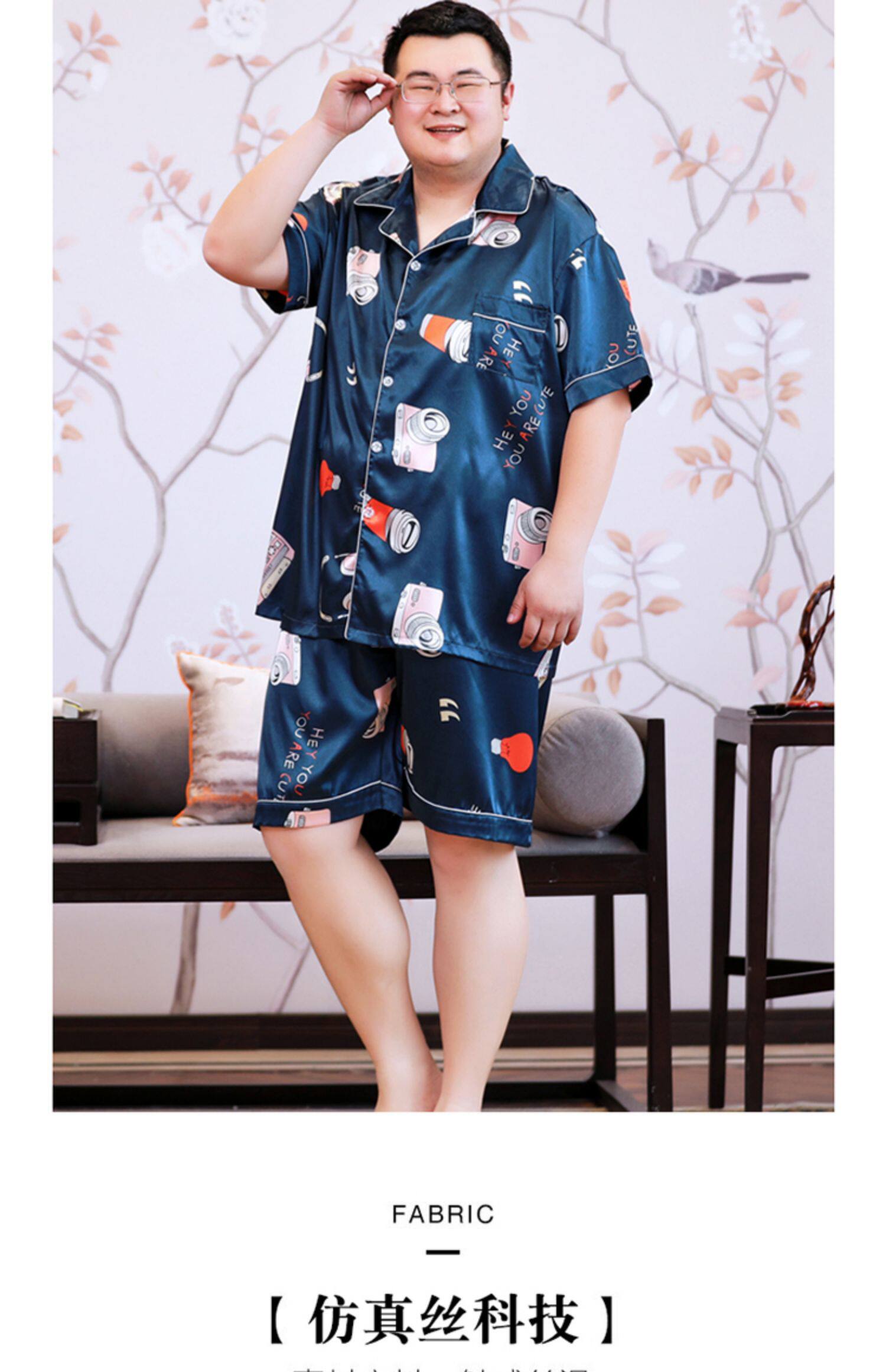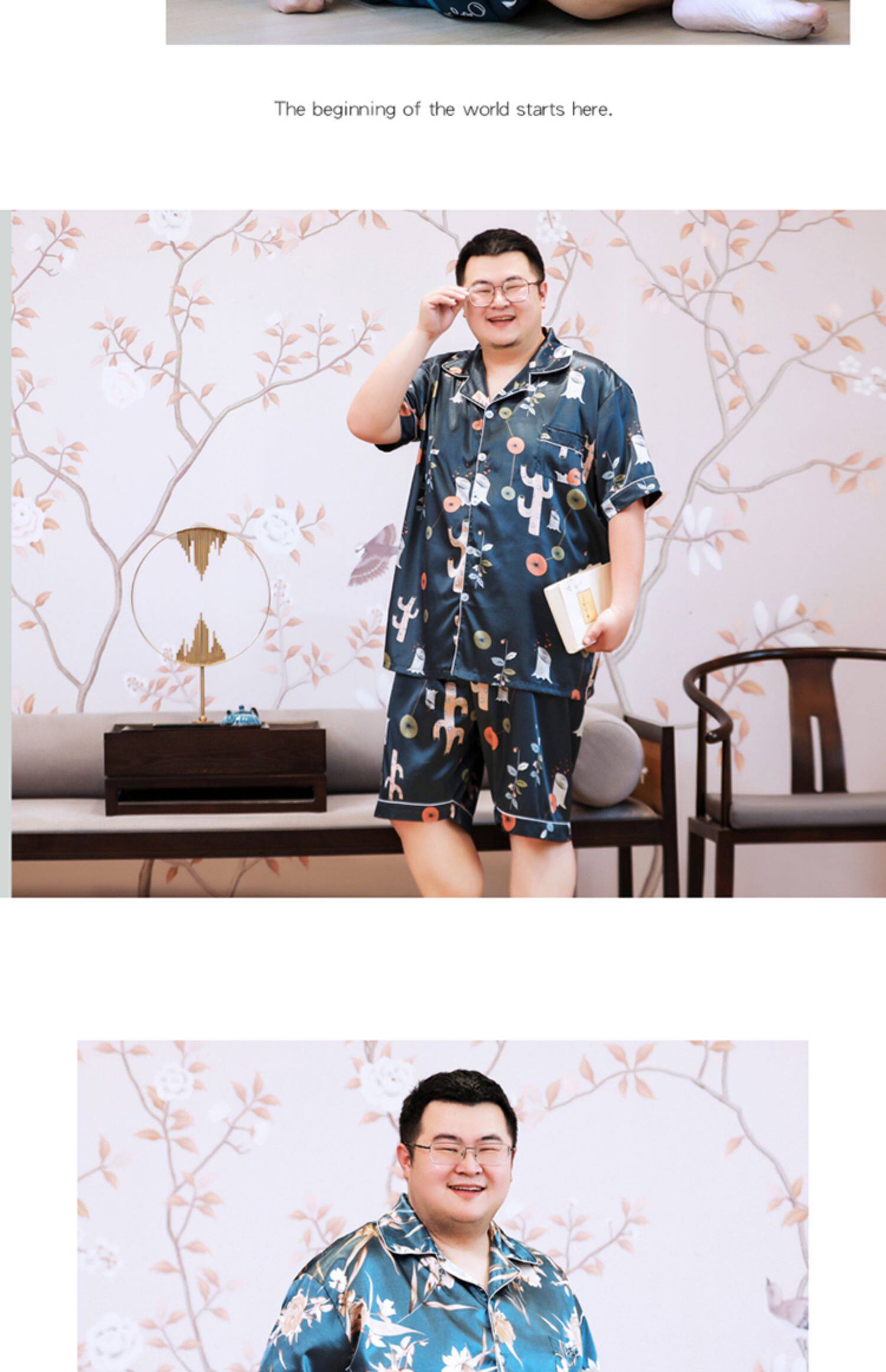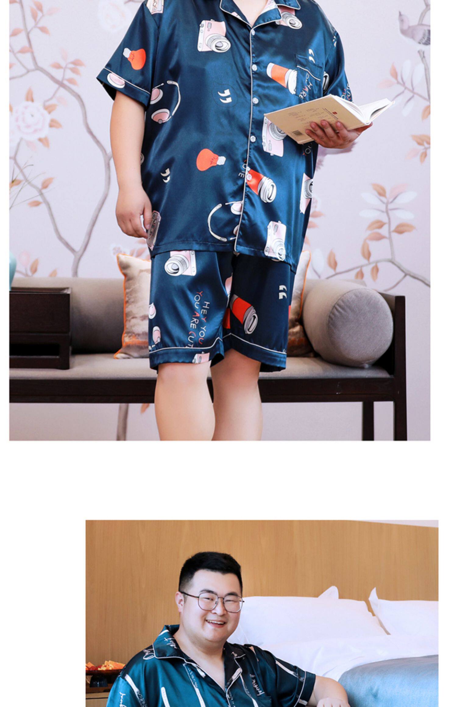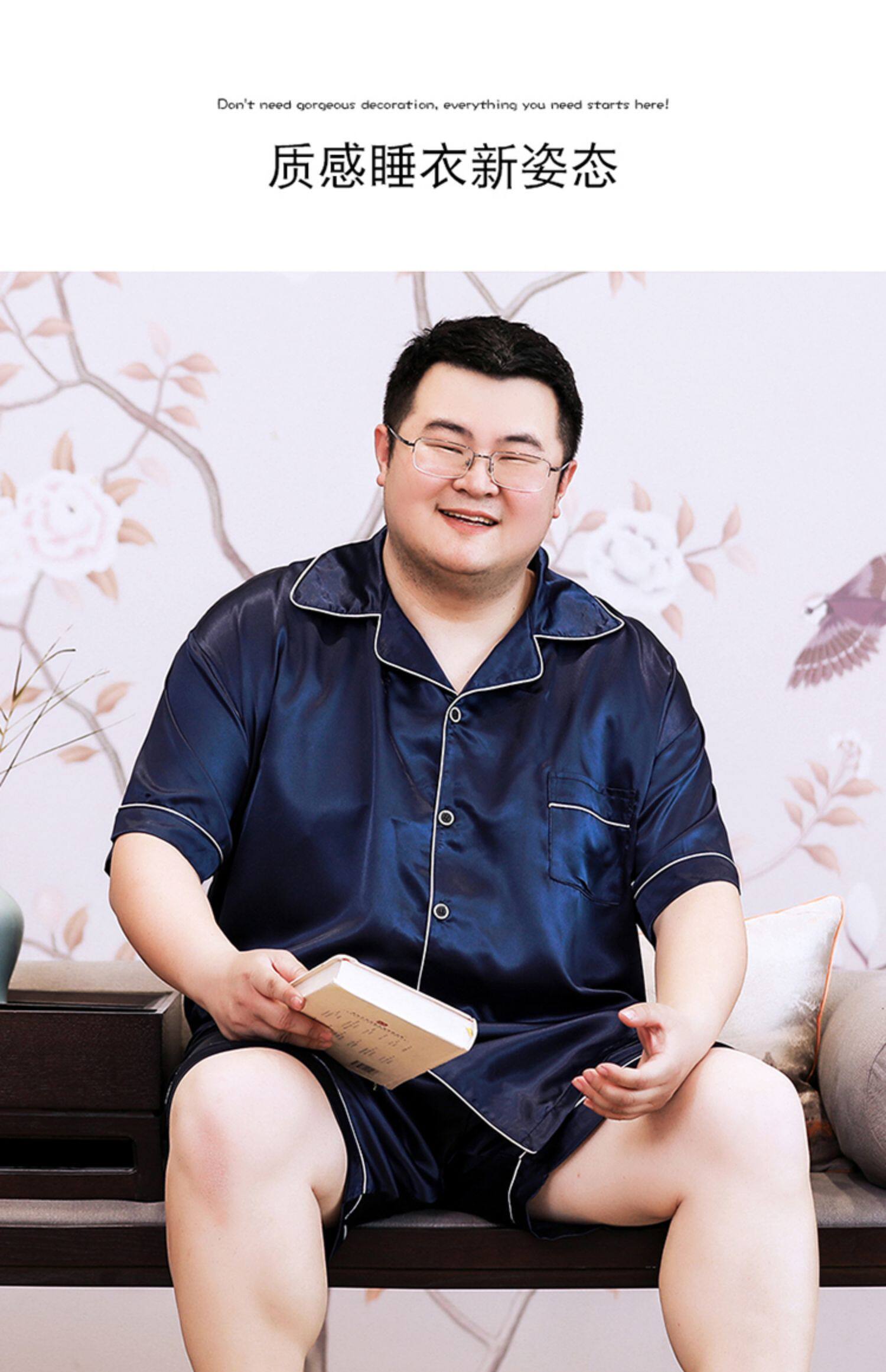 Большая летняя шелковая тонкая пижама, комплект, короткий рукав, размер