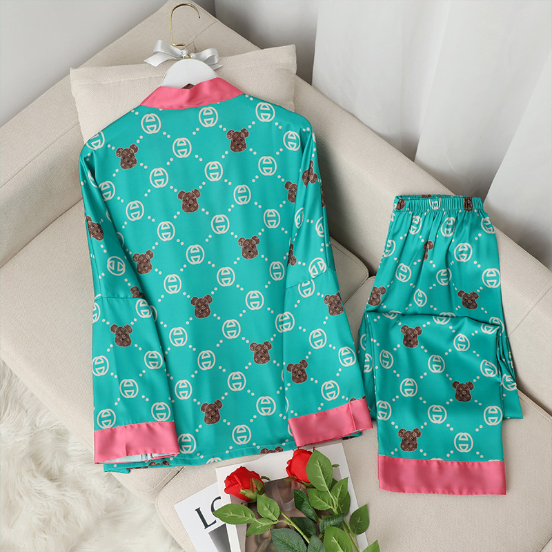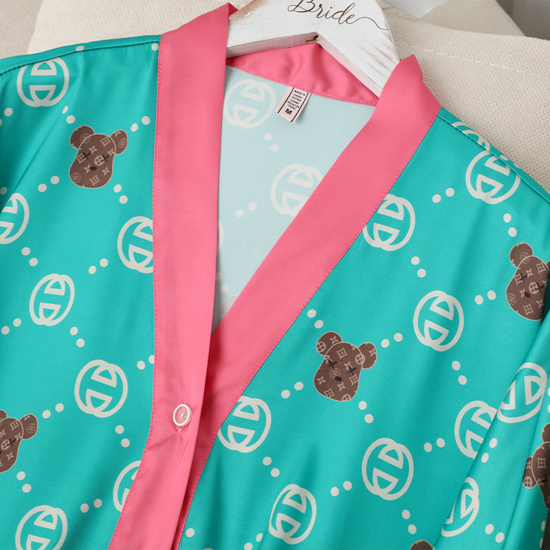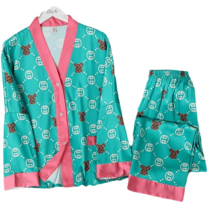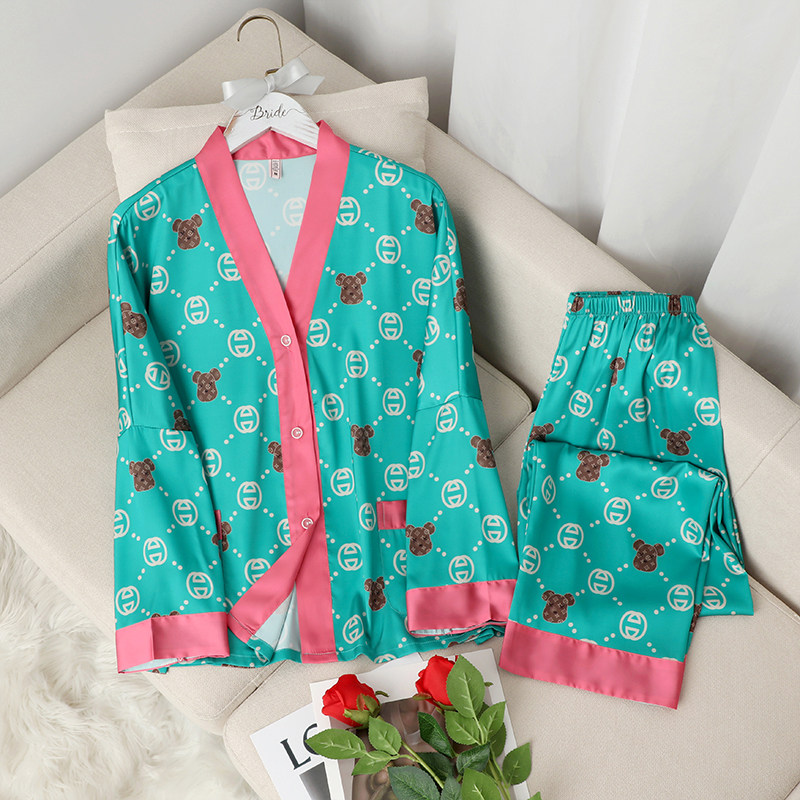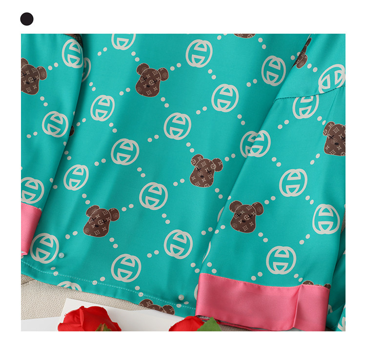 Шелковая пижама, мультяшный лонгслив, нарукавники, комплект, популярно в интернете, коллекция 2022
