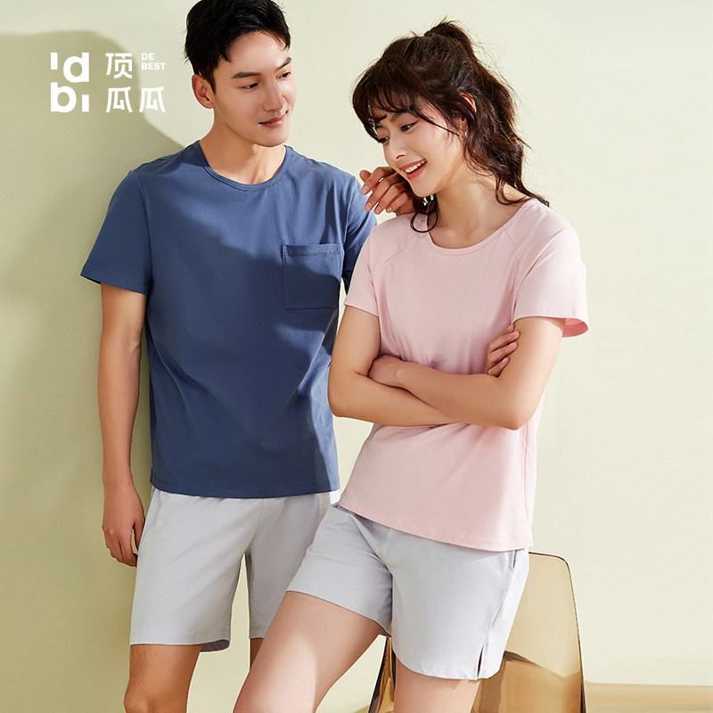 Пижама, комплект, хлопковые шорты, летние штаны, для влюбленных, короткий рукав, оверсайз