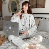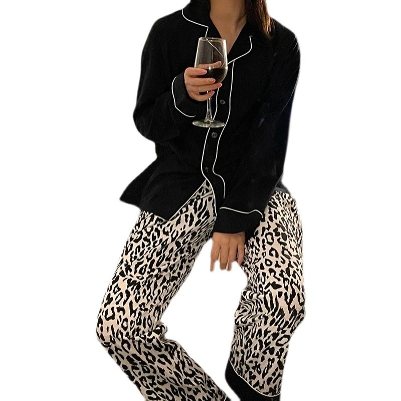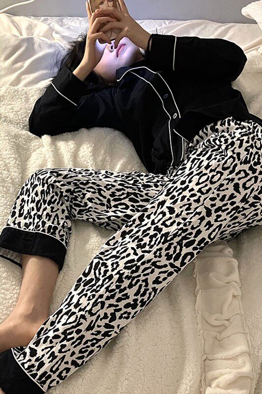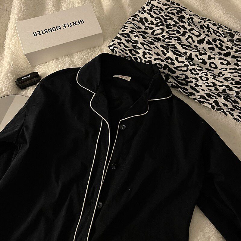 Демисезонная хлопковая черная пижама, кардиган, тонкая утепленный лонгслив, комплект, в корейском стиле, коллекция 2021