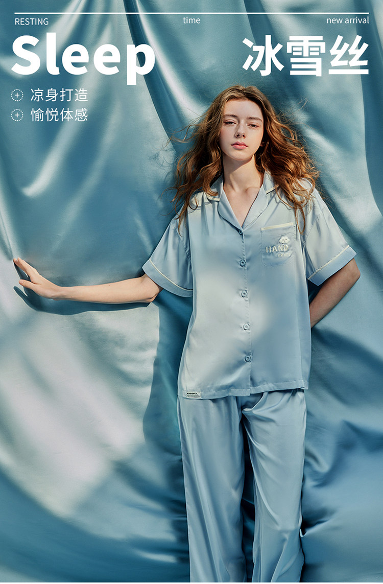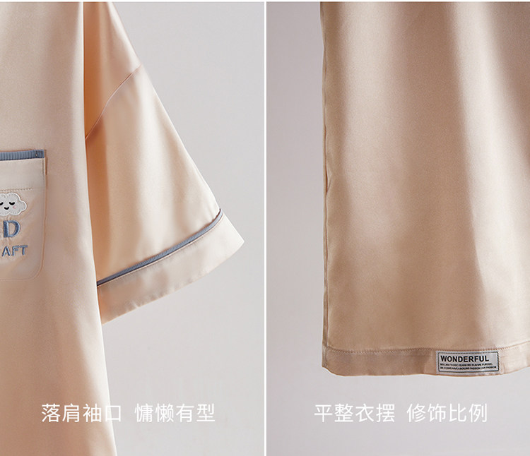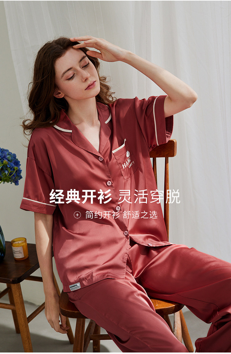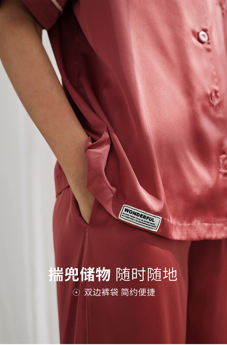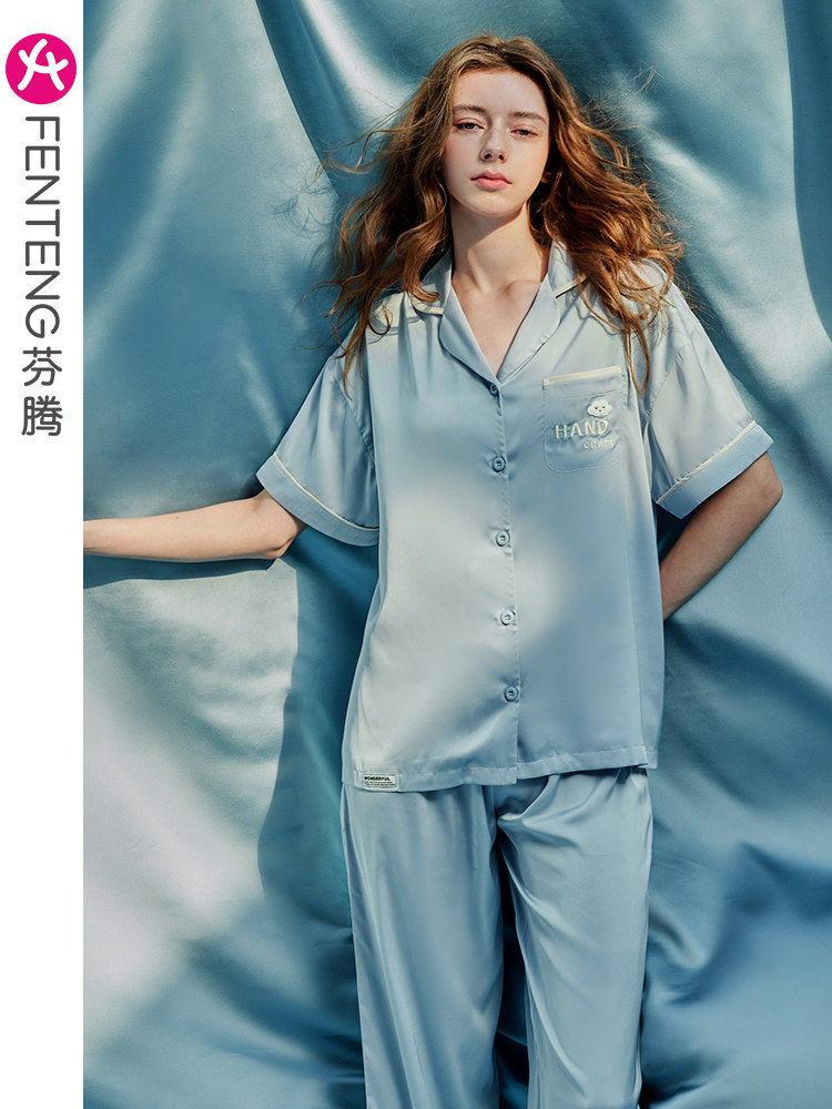 芬腾 Шелковая пижама, тонкие штаны, шелковый комплект, короткий рукав, свободный крой