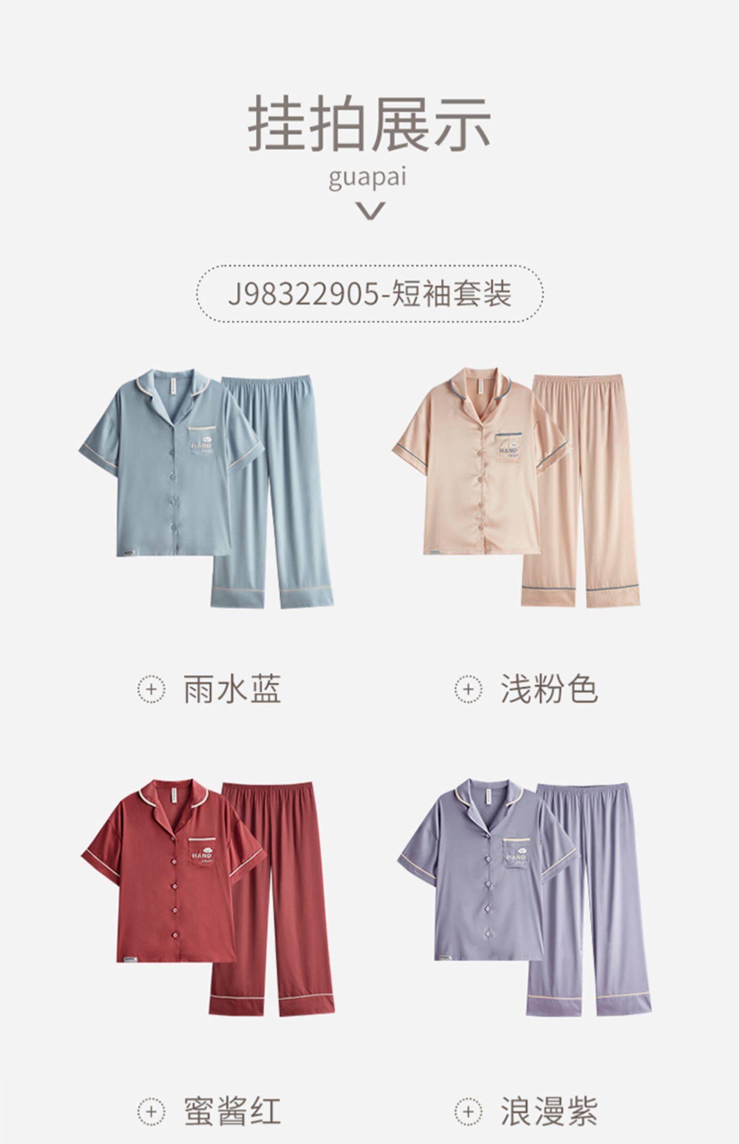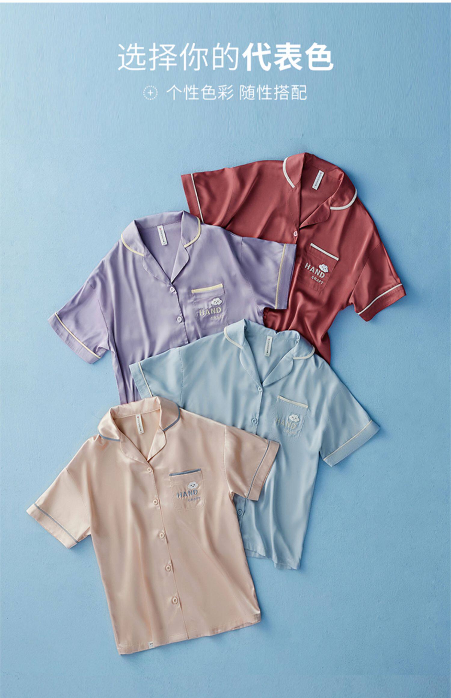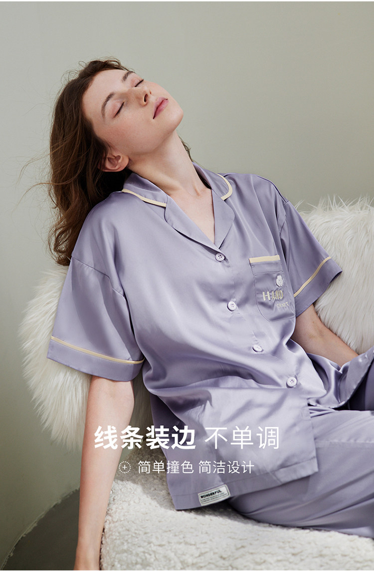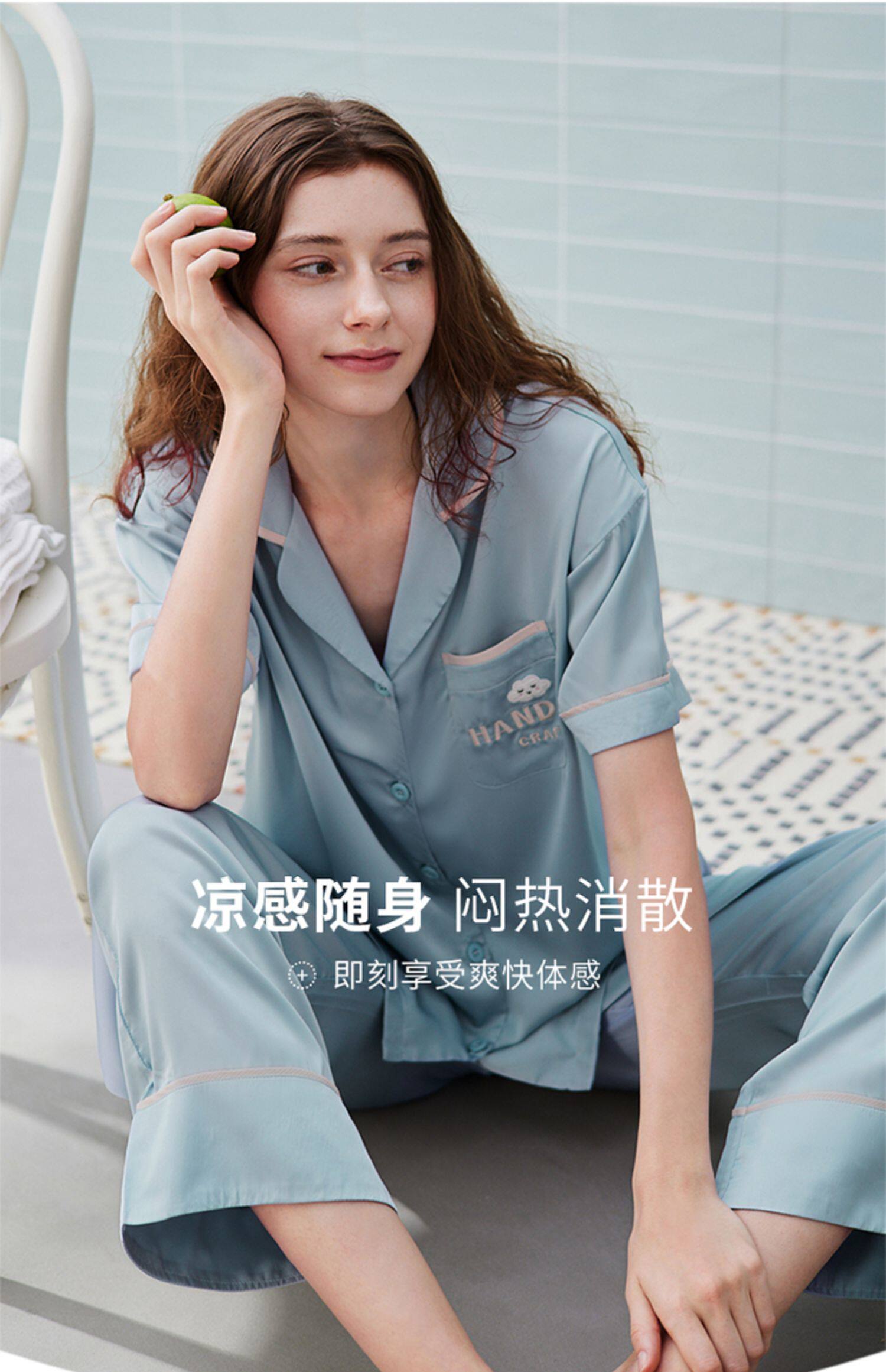 芬腾 Шелковая пижама, тонкие штаны, шелковый комплект, короткий рукав, свободный крой