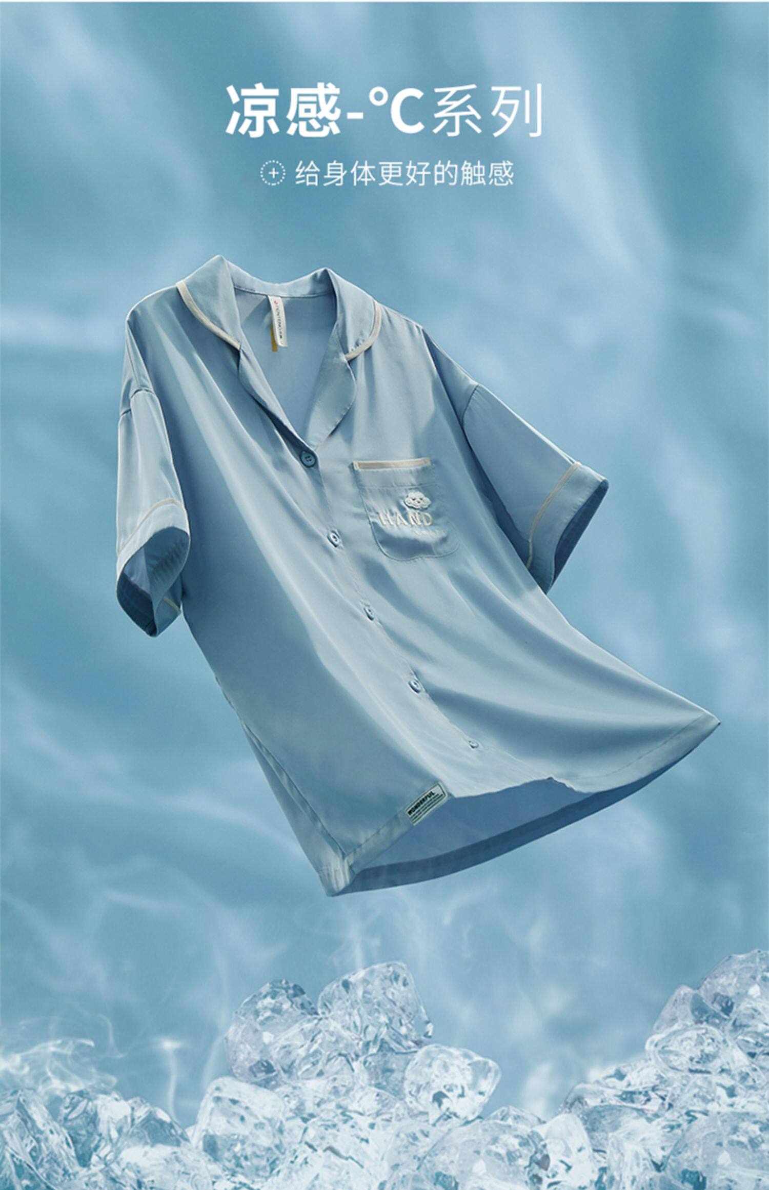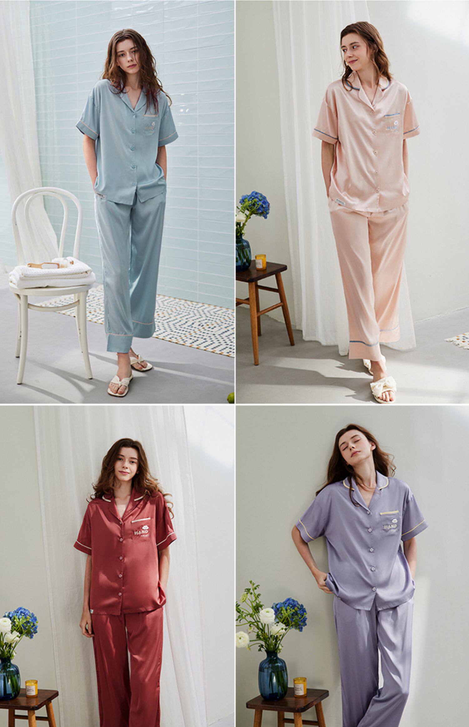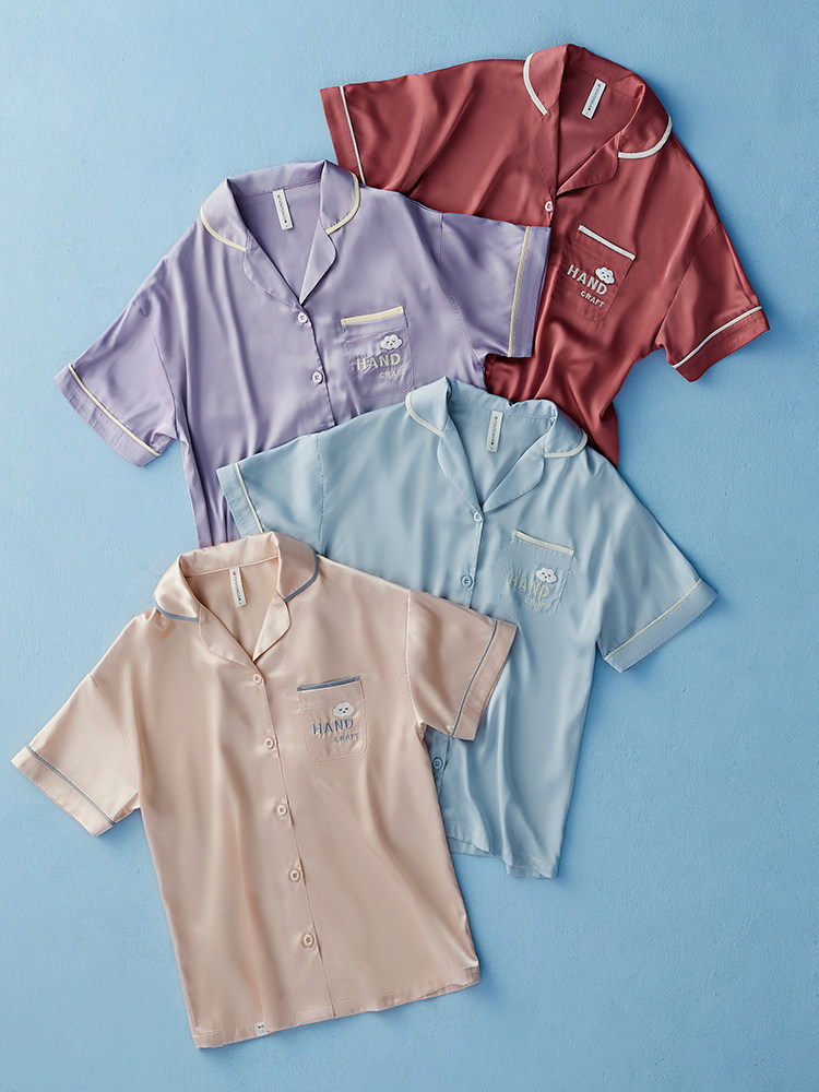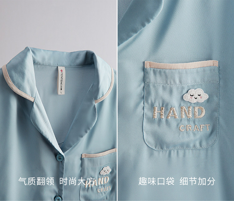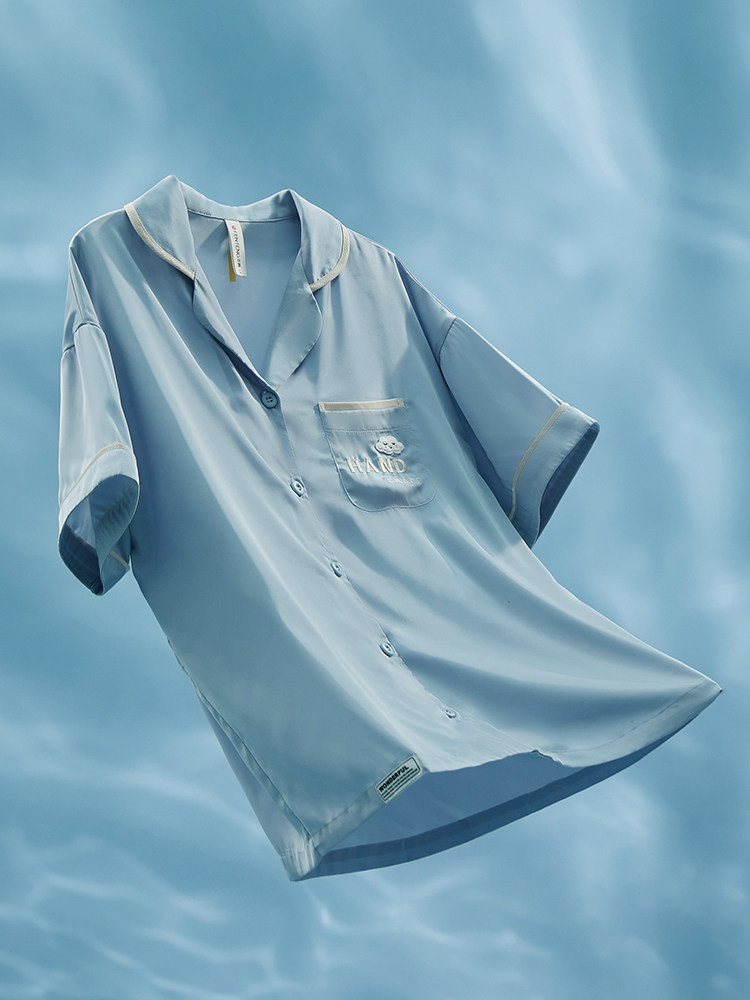 芬腾 Шелковая пижама, тонкие штаны, шелковый комплект, короткий рукав, свободный крой