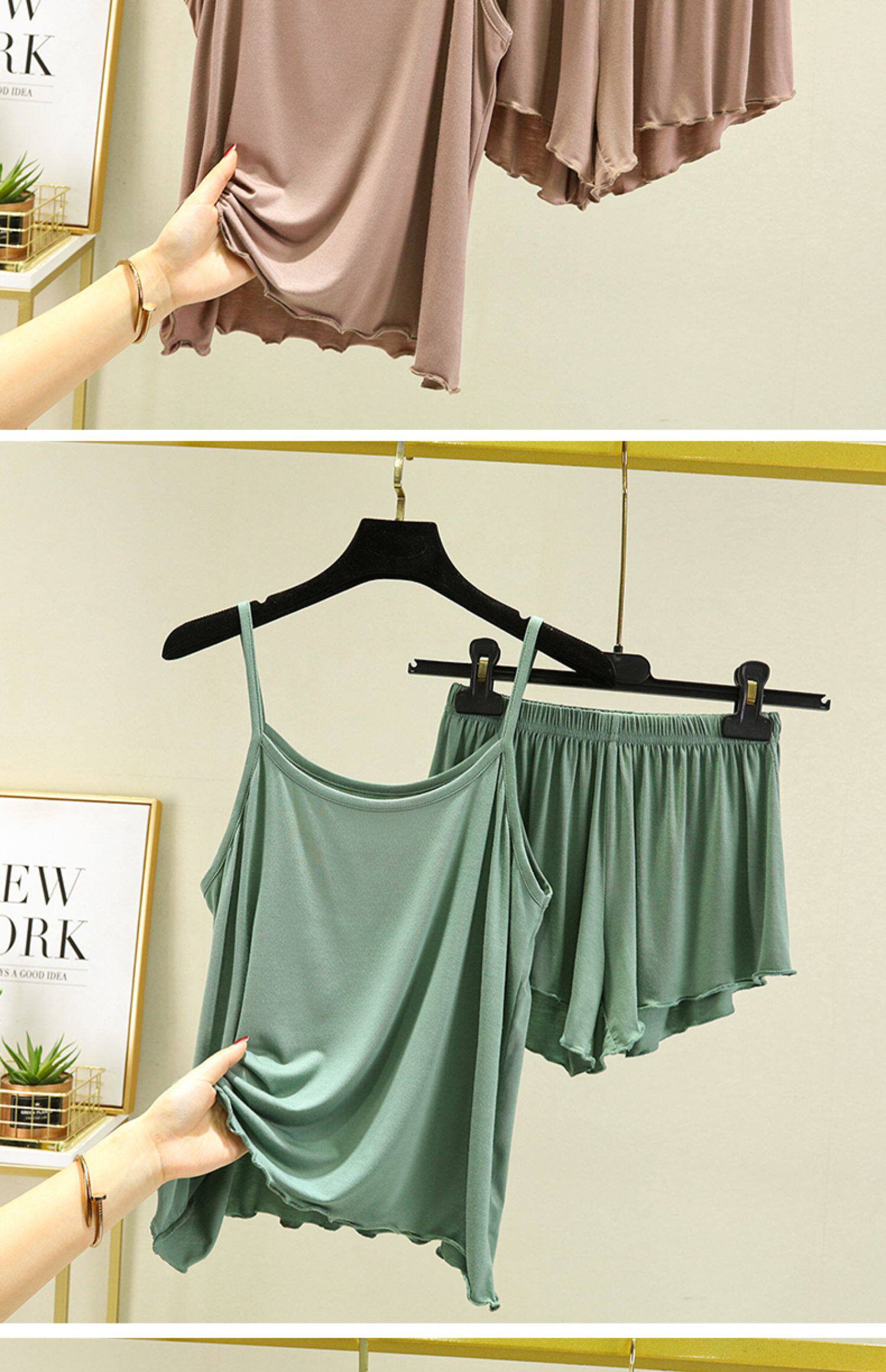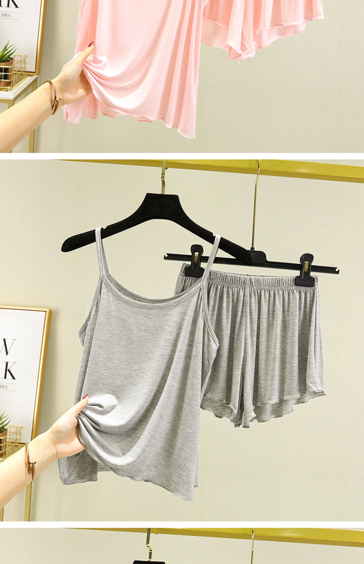 Летний комплект, базовая пижама, эффект подтяжки, сшит из модала, свободный крой