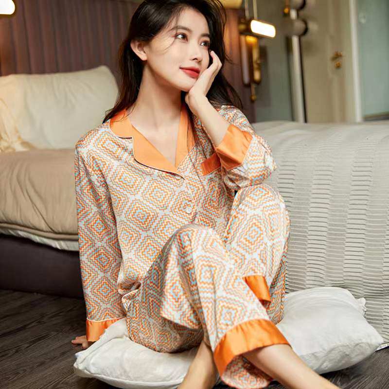 Шелковая осенняя пижама, тонкий лонгслив, комплект, популярно в интернете, изысканный стиль