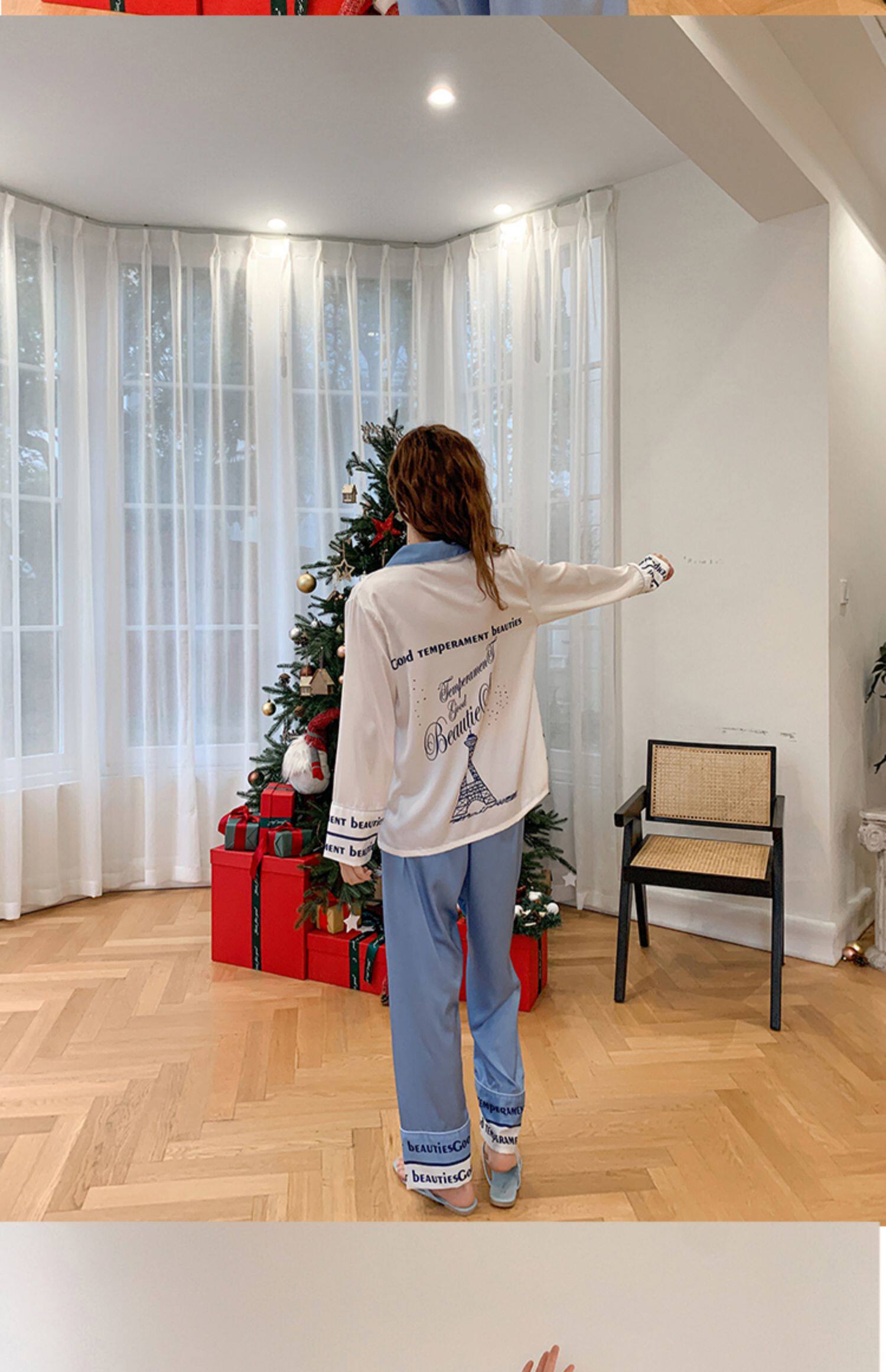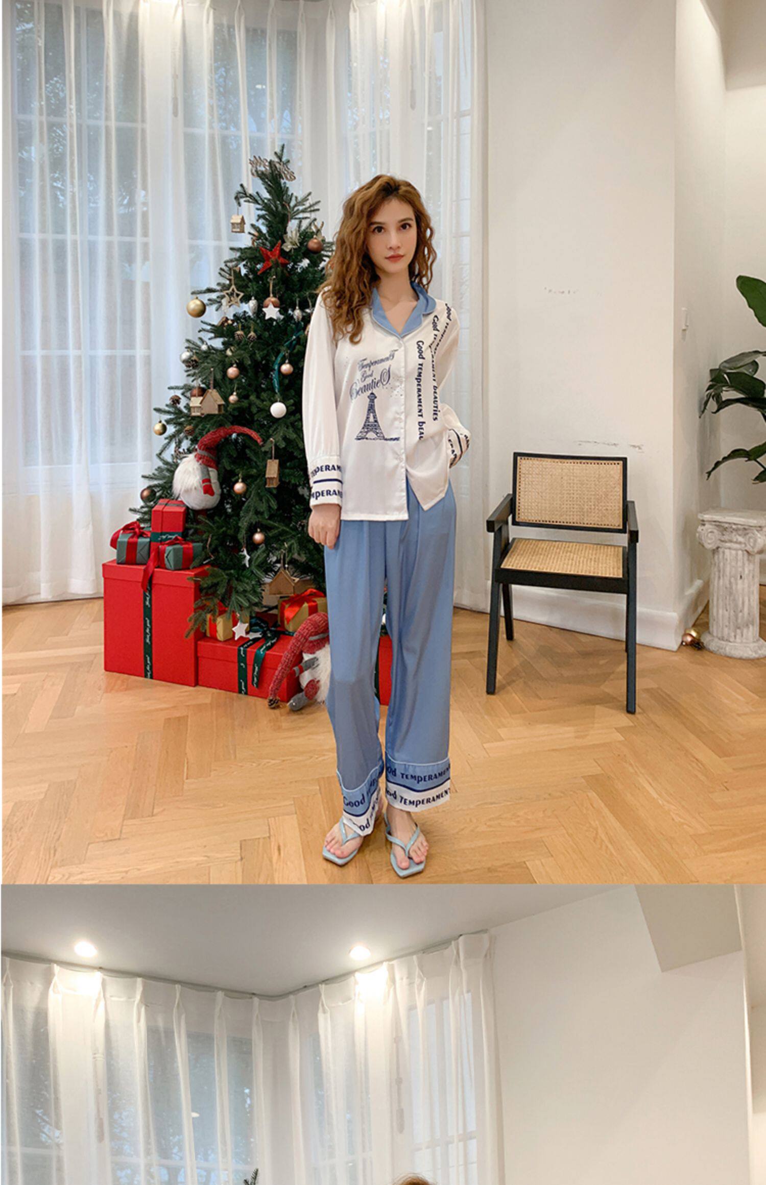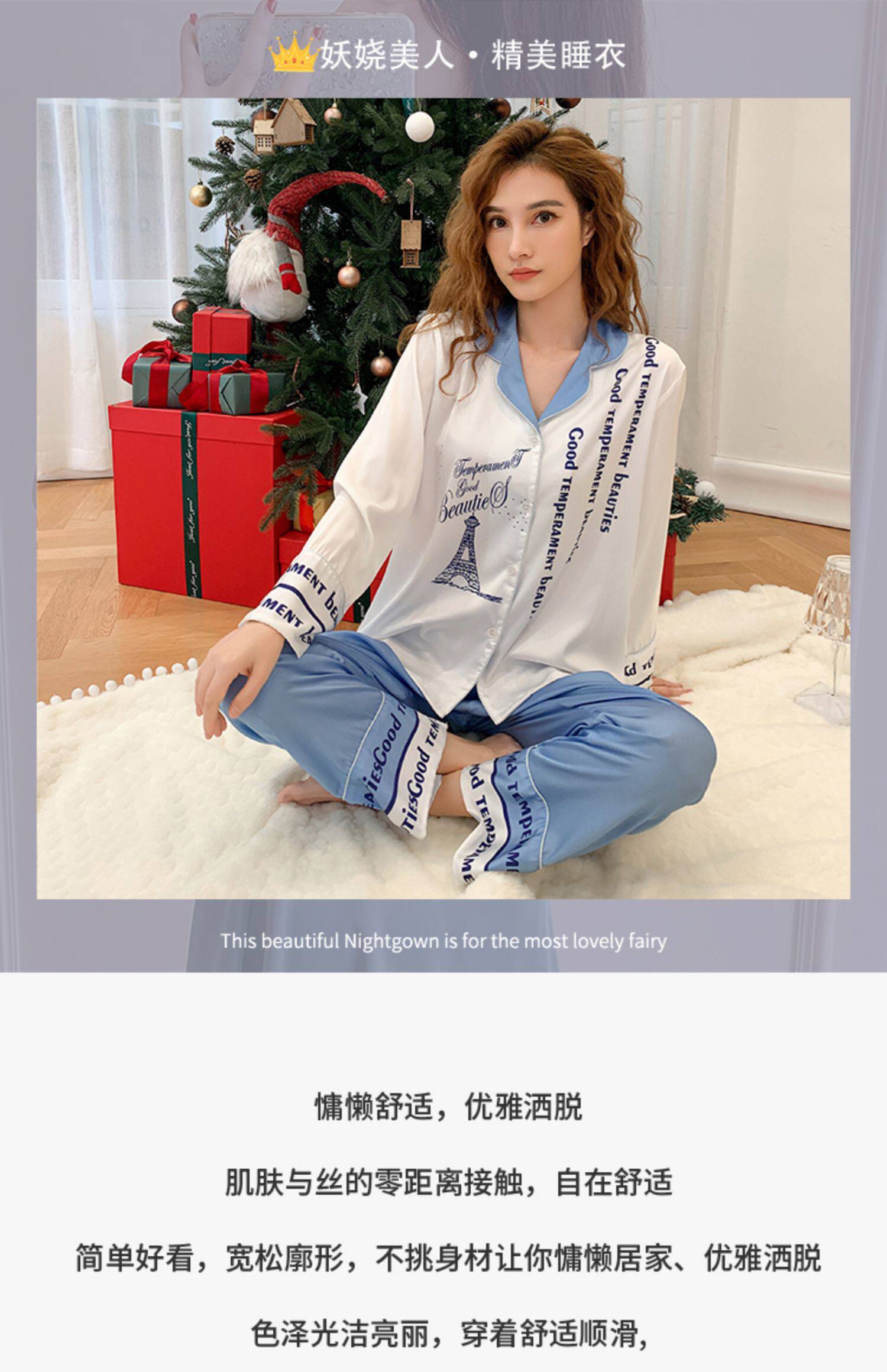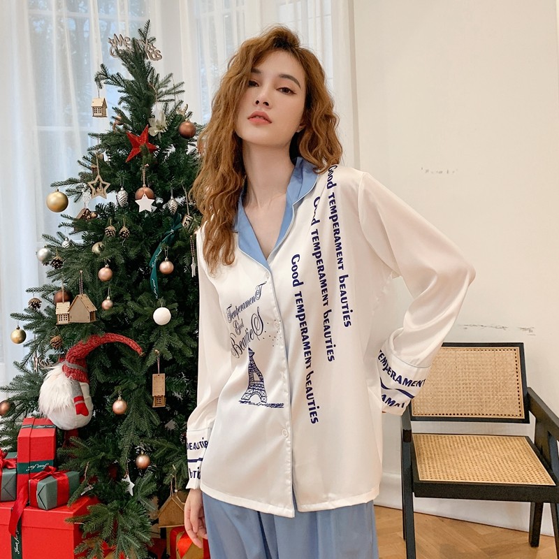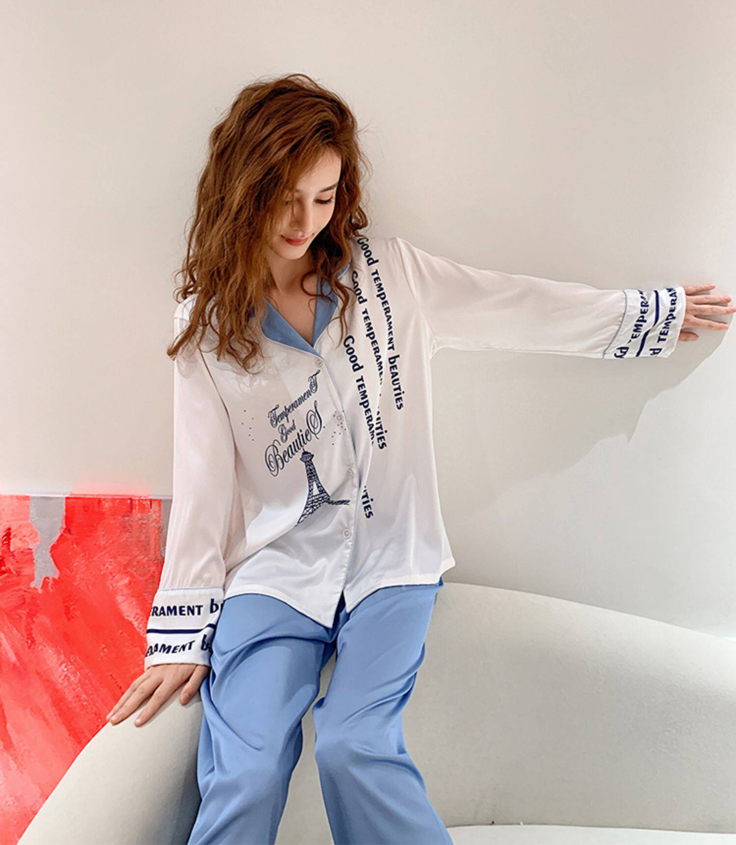 Весенняя летняя пижама, шелковый милый лонгслив, нарукавники, комплект, коллекция 2022, простой и элегантный дизайн, изысканный стиль