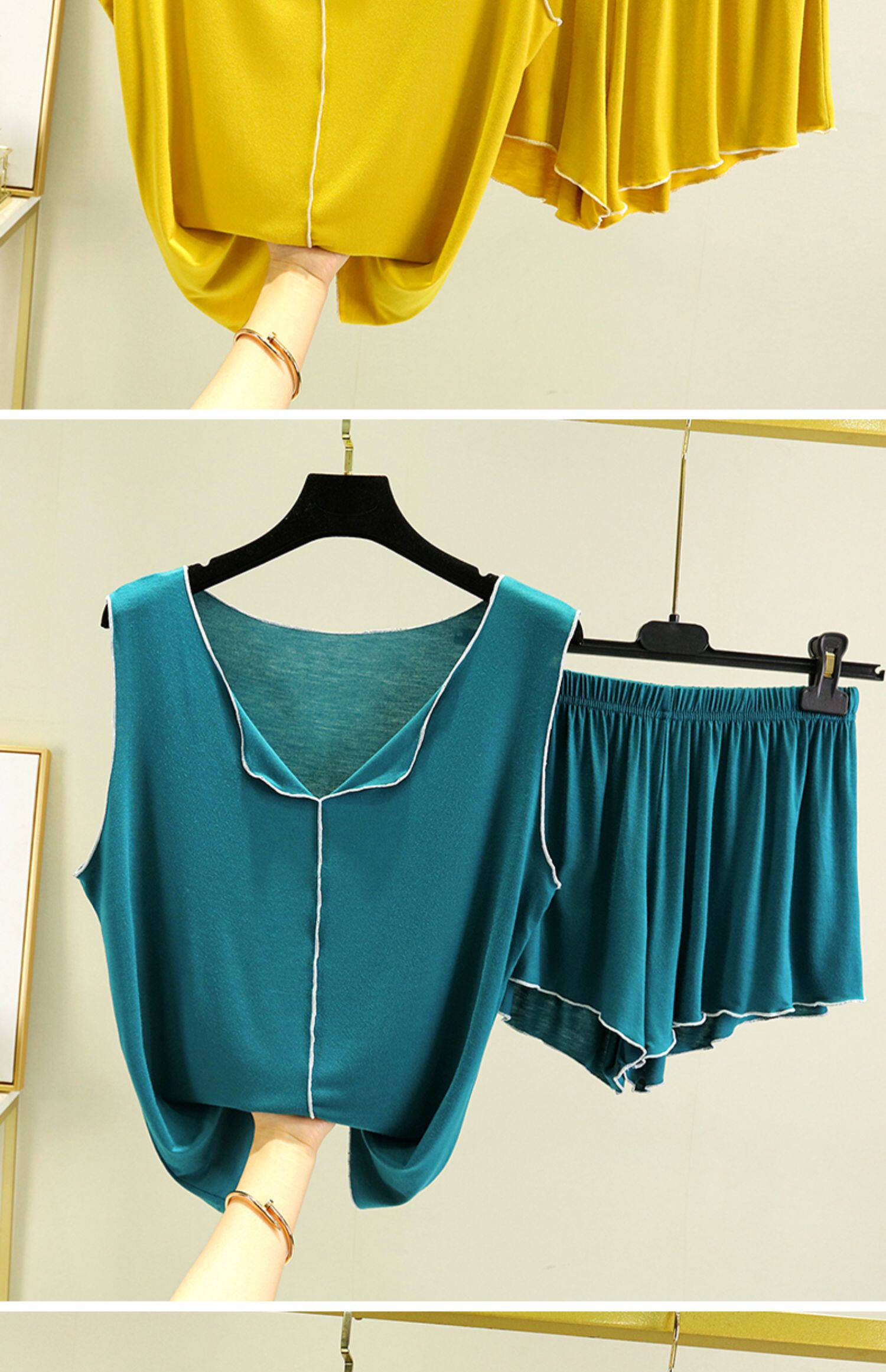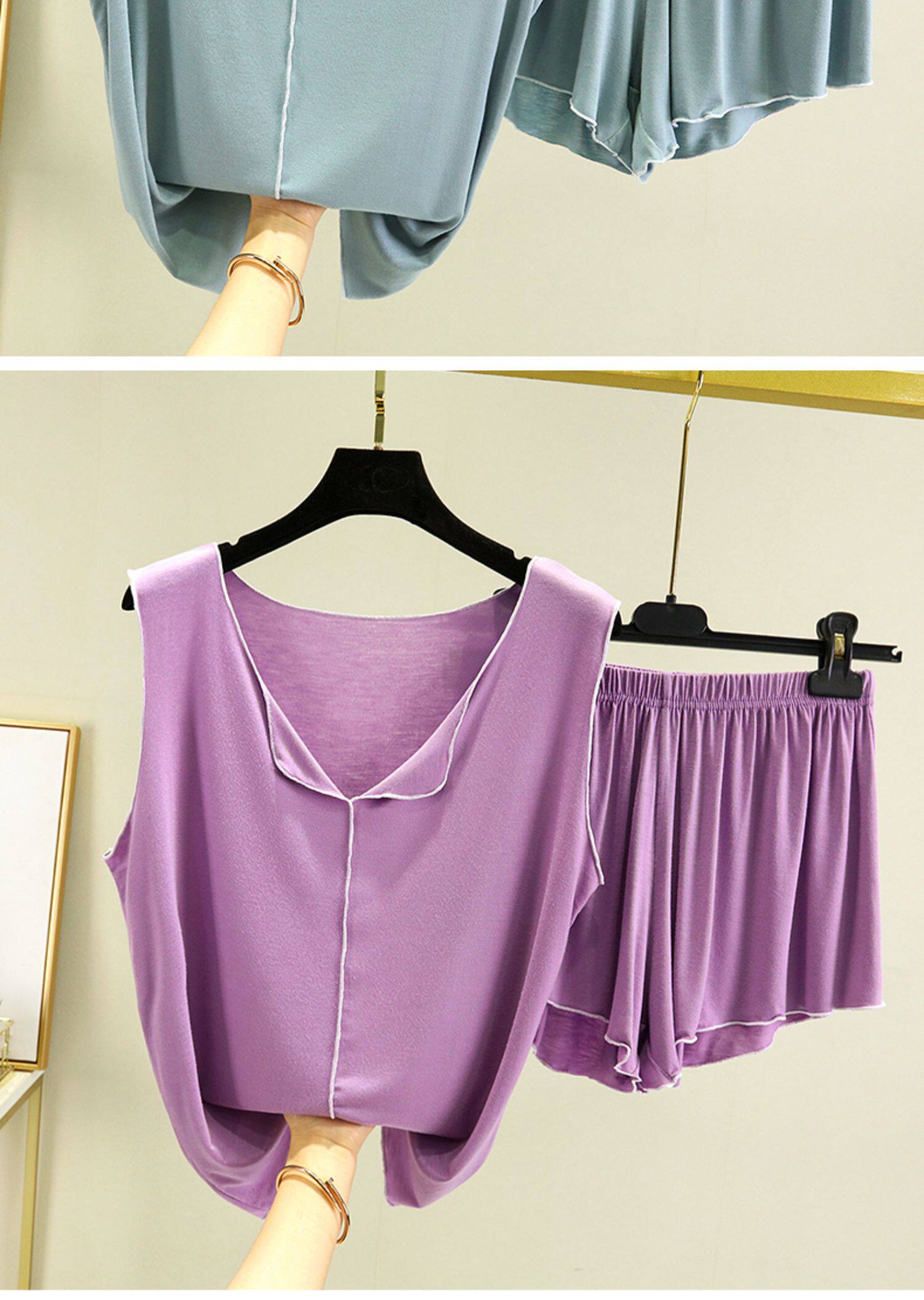 Тонкая пижама, комплект, жилет для отдыха, свободный крой