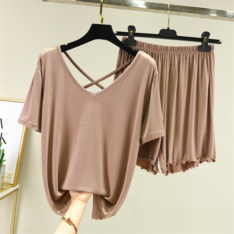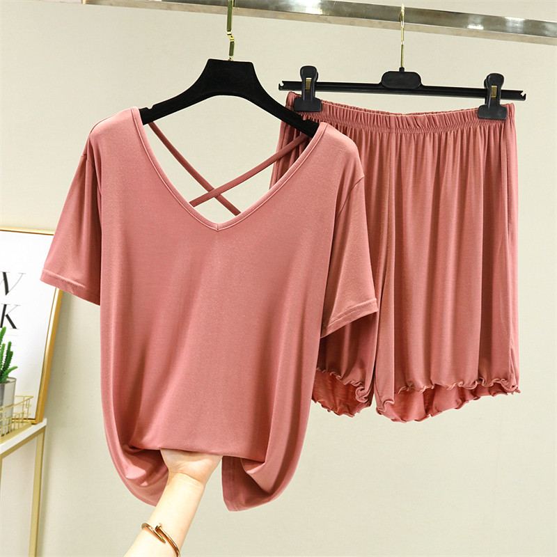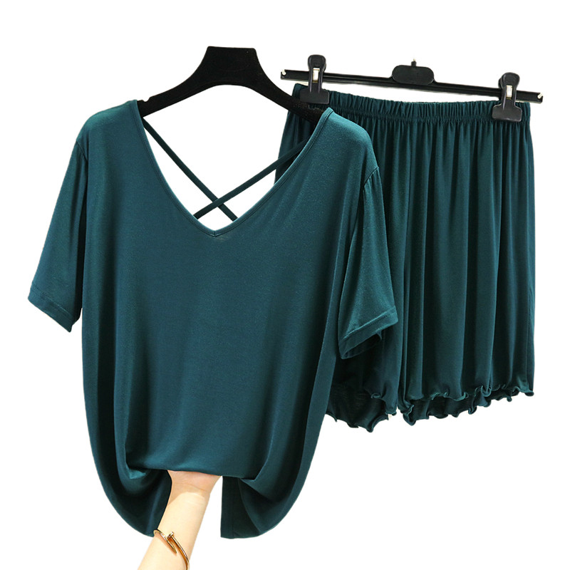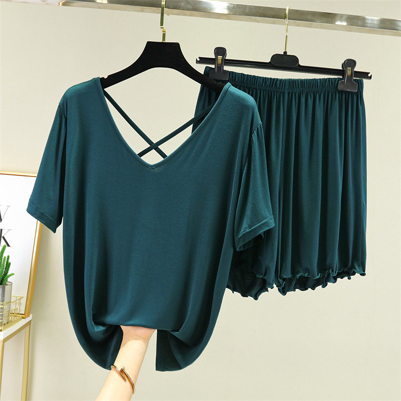 Шорты, пижама, летний тонкий комплект, красивая спина, короткий рукав, большой размер