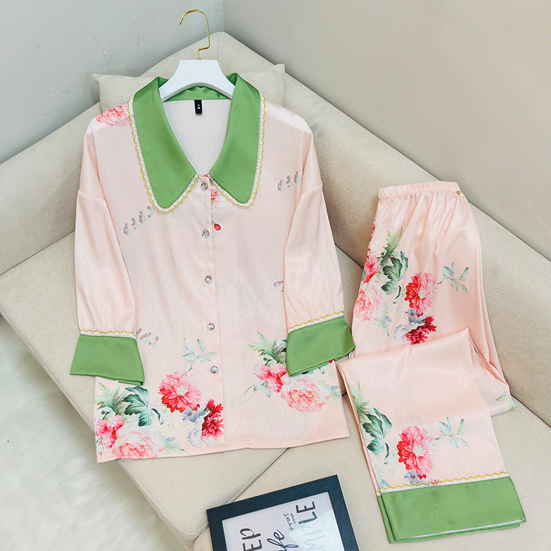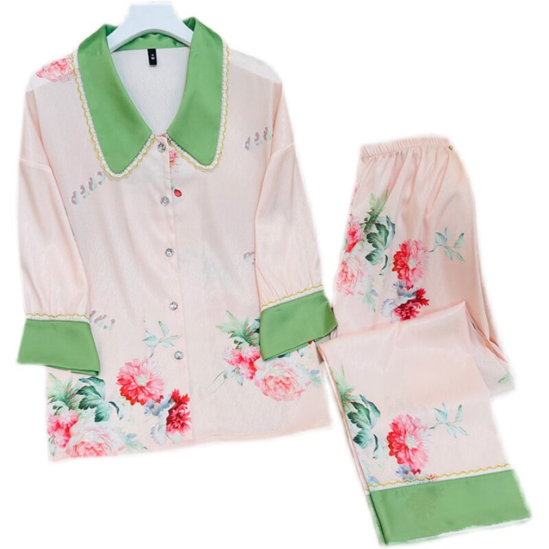 Пижама, шелковый лонгслив, нарукавники, комфортный комплект, коллекция 2022