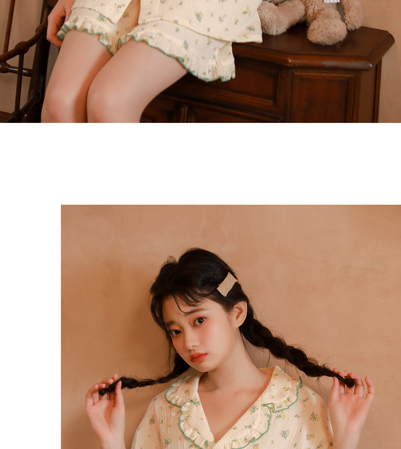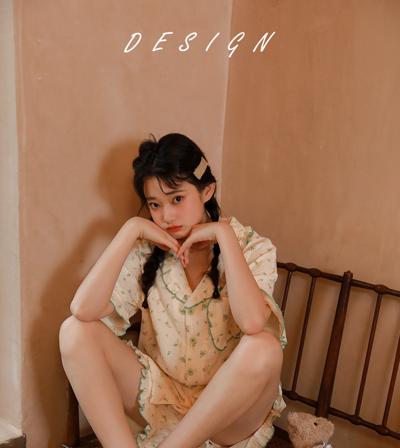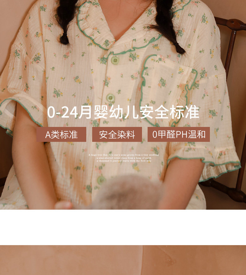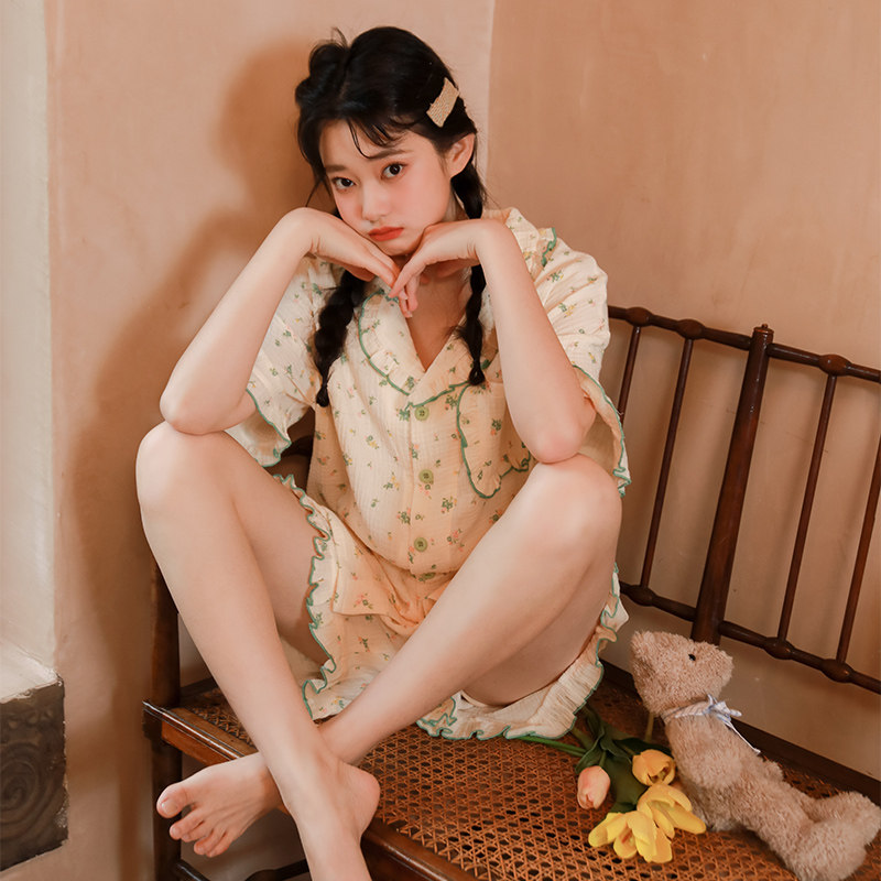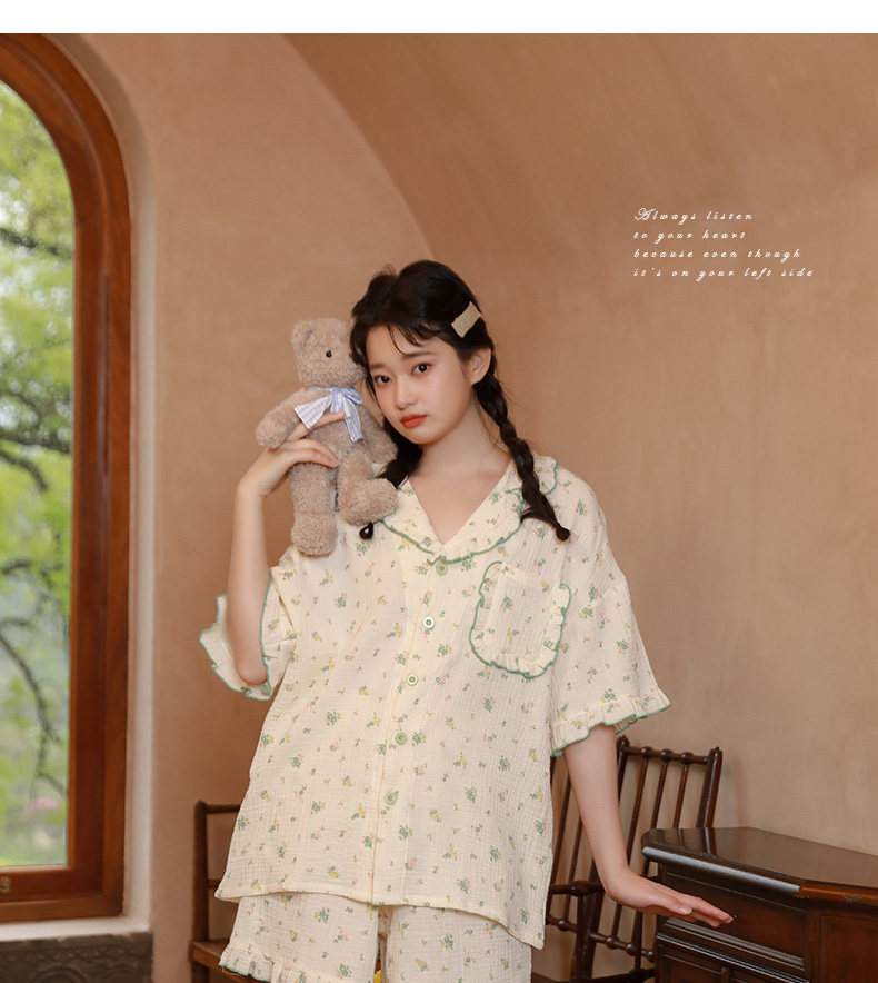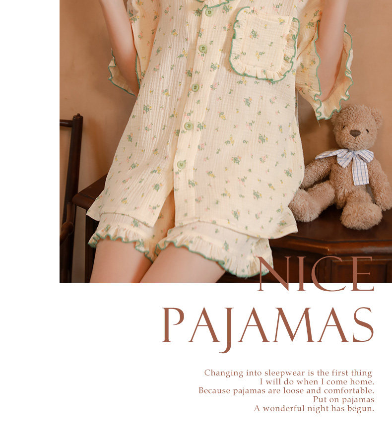 Летняя пижама, зеленый хлопковый комплект, цветочный принт, короткий рукав