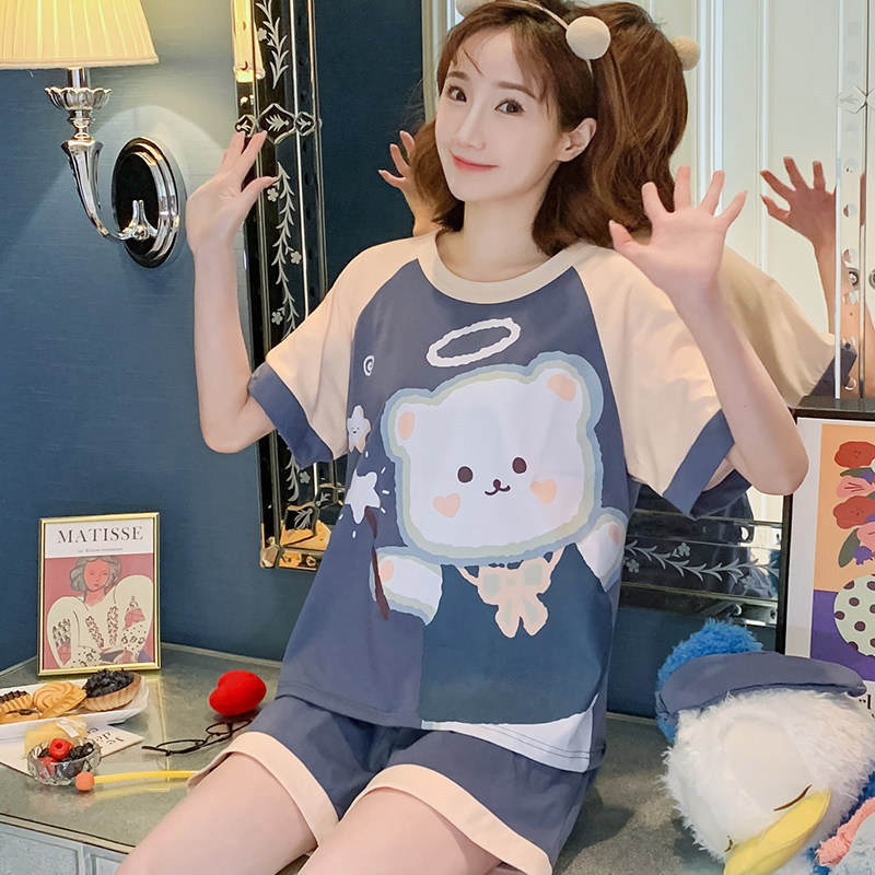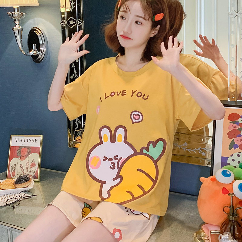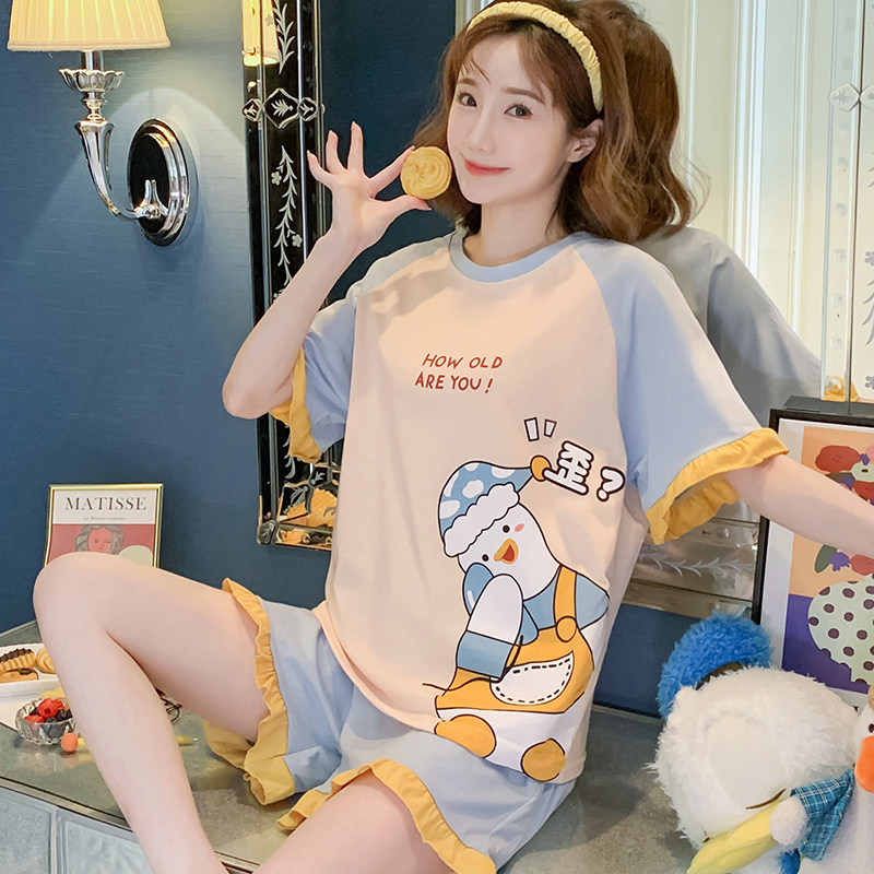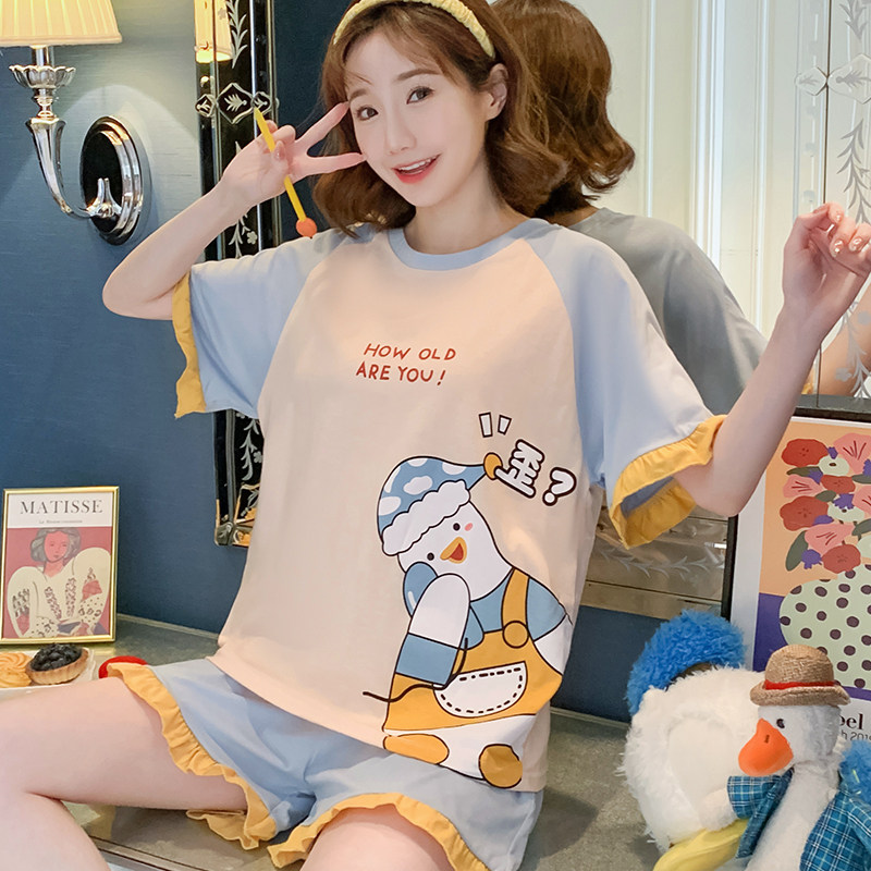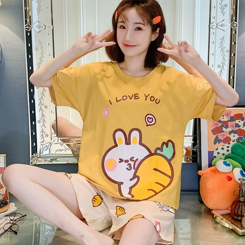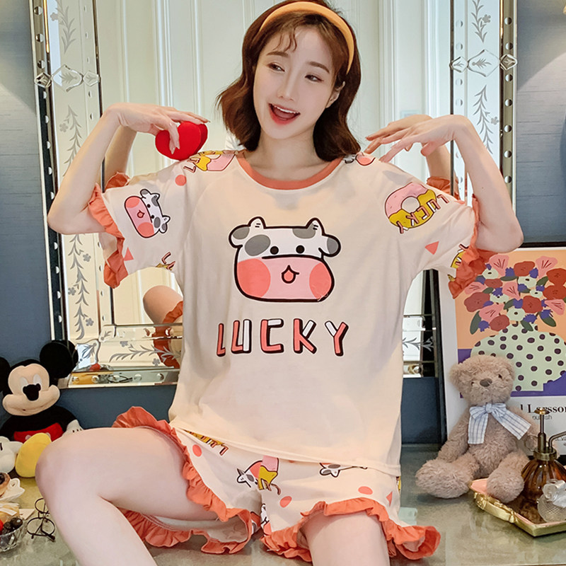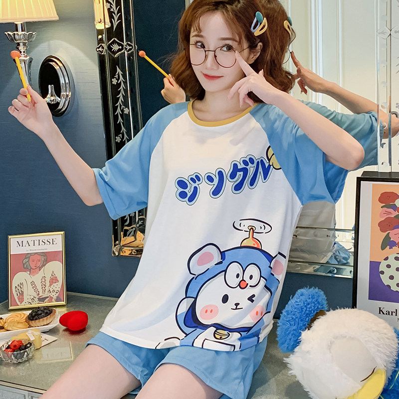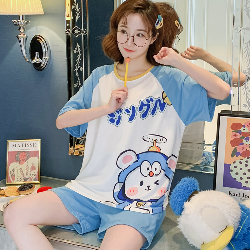Летняя хлопковая пижама, хлопковые мультяшные милые шорты, тонкий комплект для школьников и студентов, свободный крой, большой размер