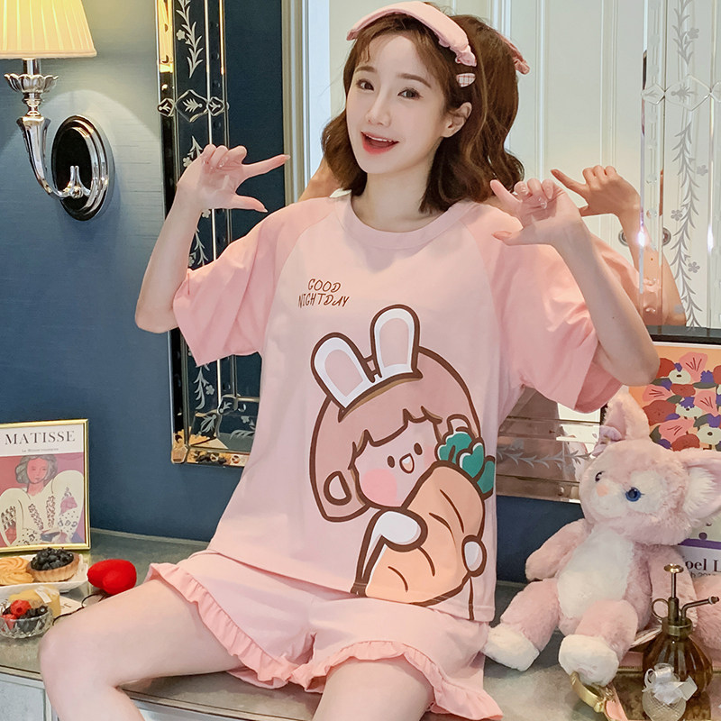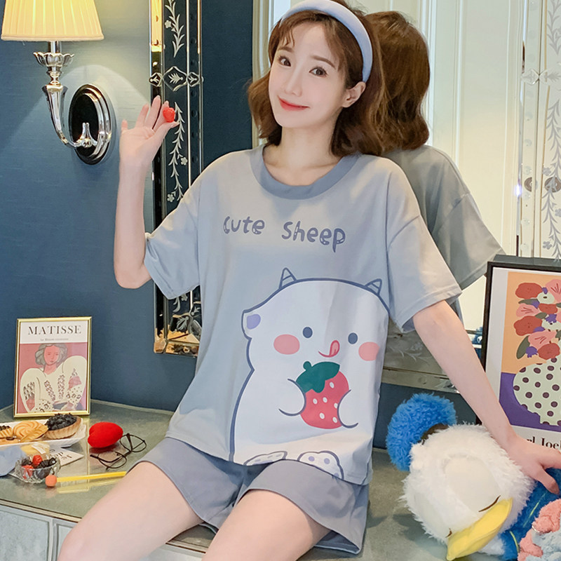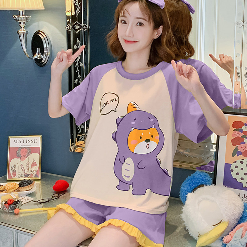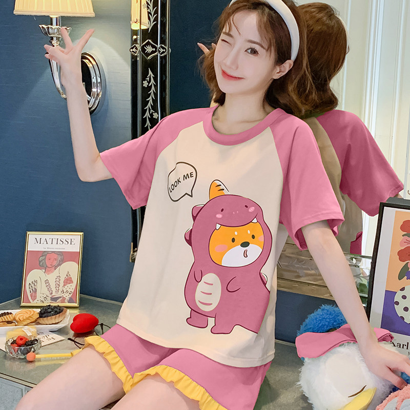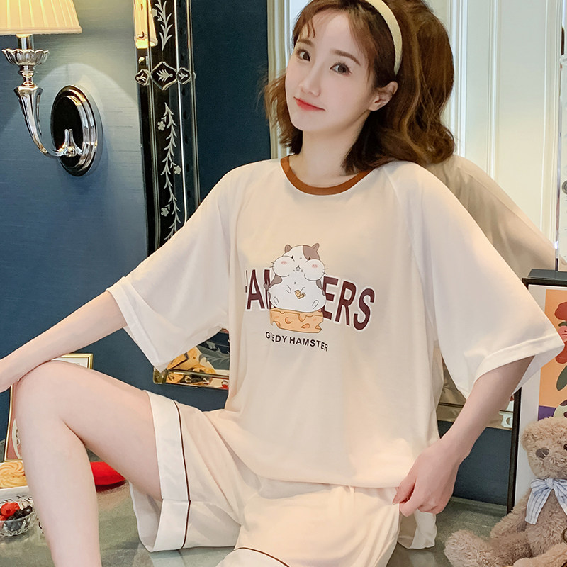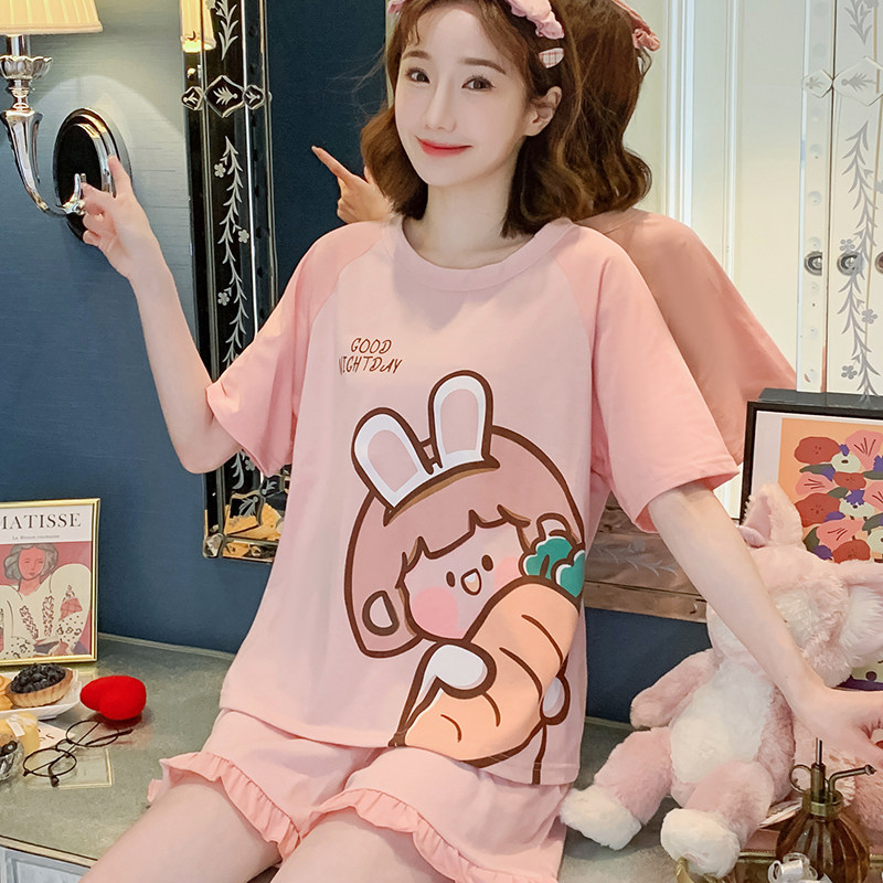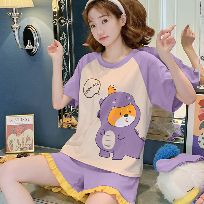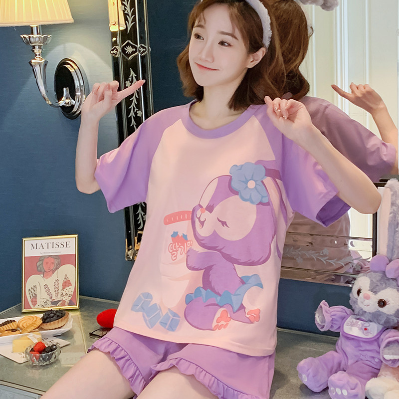 Летняя хлопковая пижама, хлопковые мультяшные милые шорты, тонкий комплект для школьников и студентов, свободный крой, большой размер