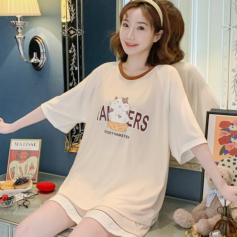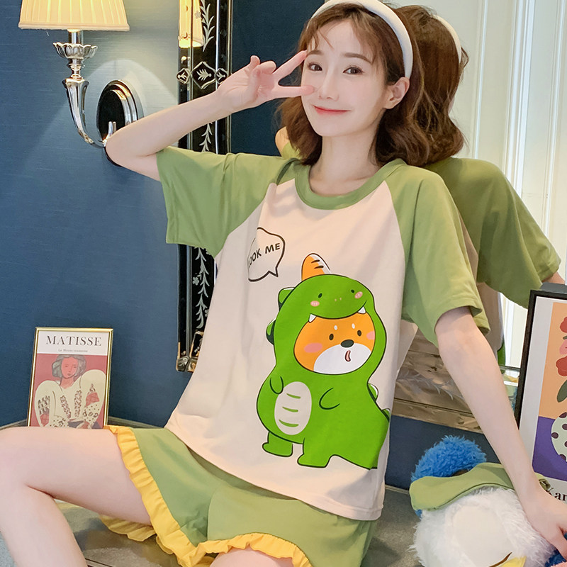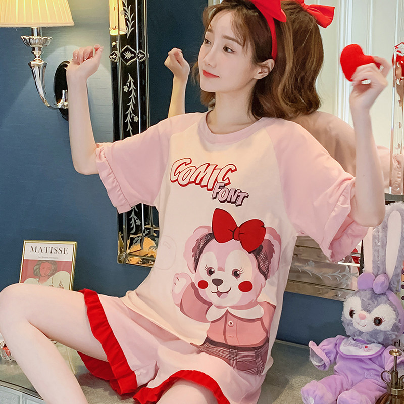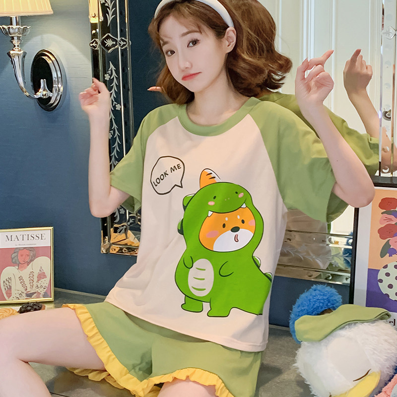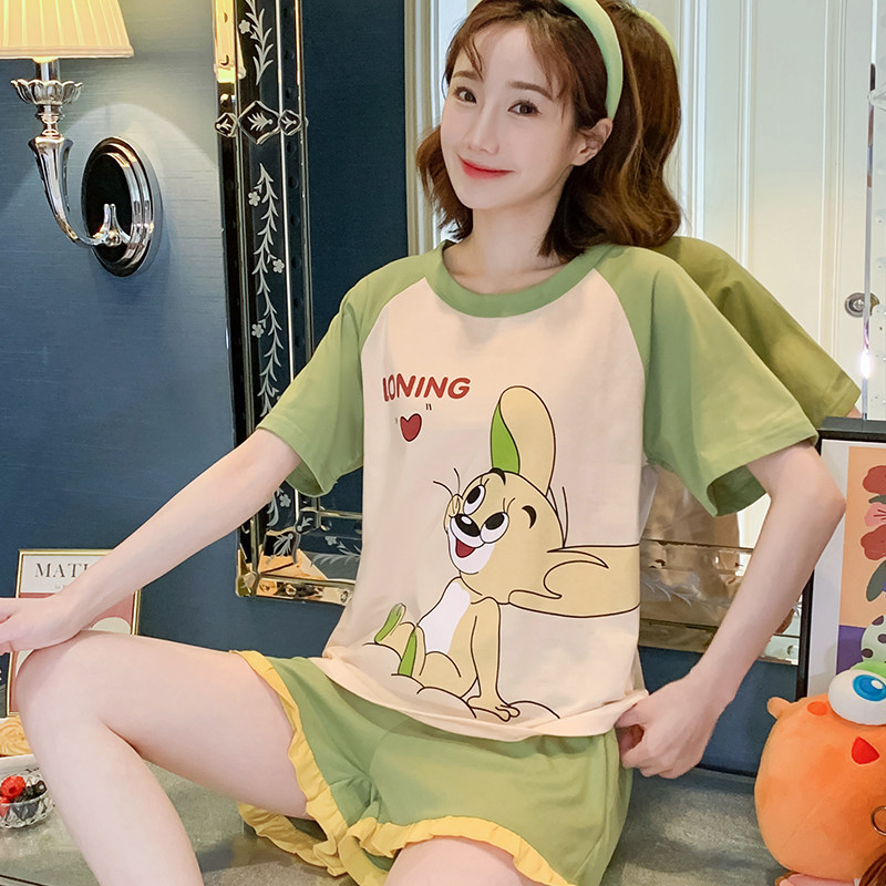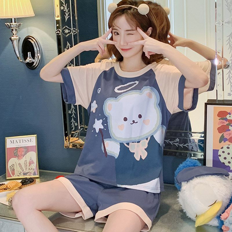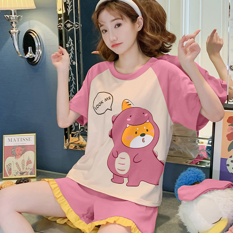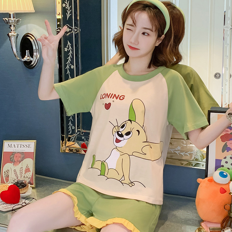 Летняя хлопковая пижама, хлопковые мультяшные милые шорты, тонкий комплект для школьников и студентов, свободный крой, большой размер