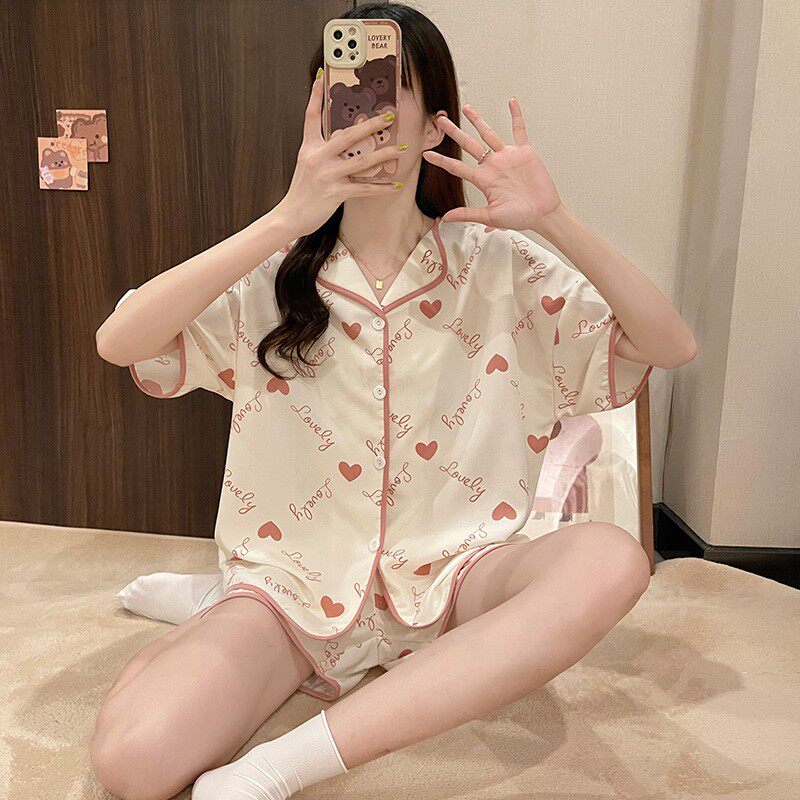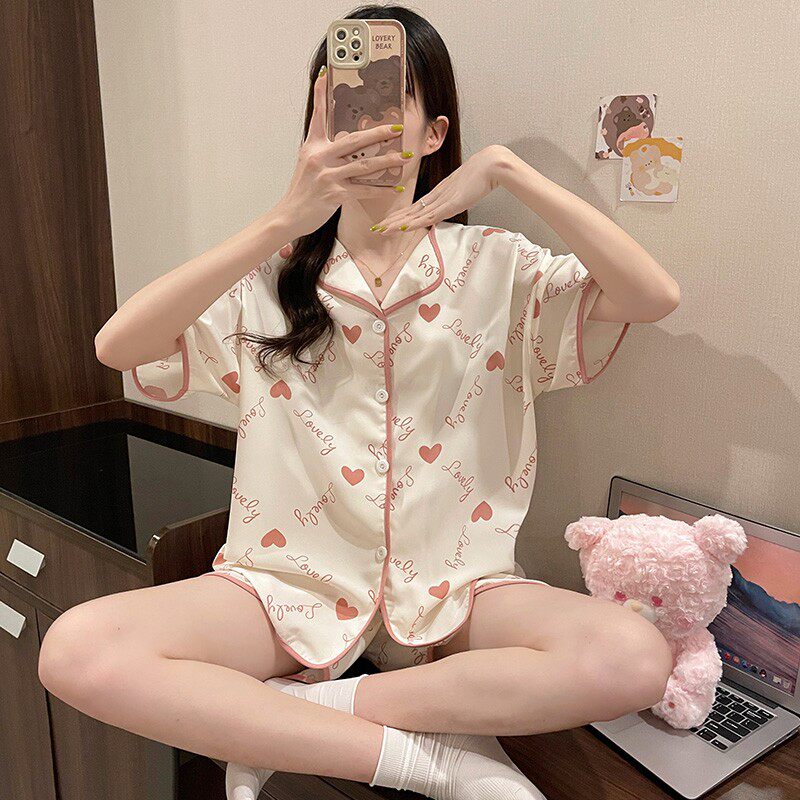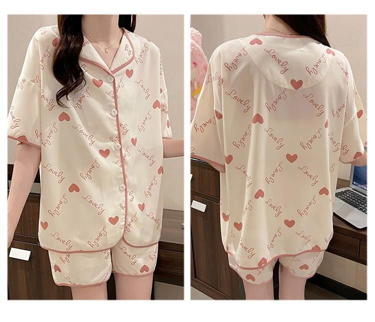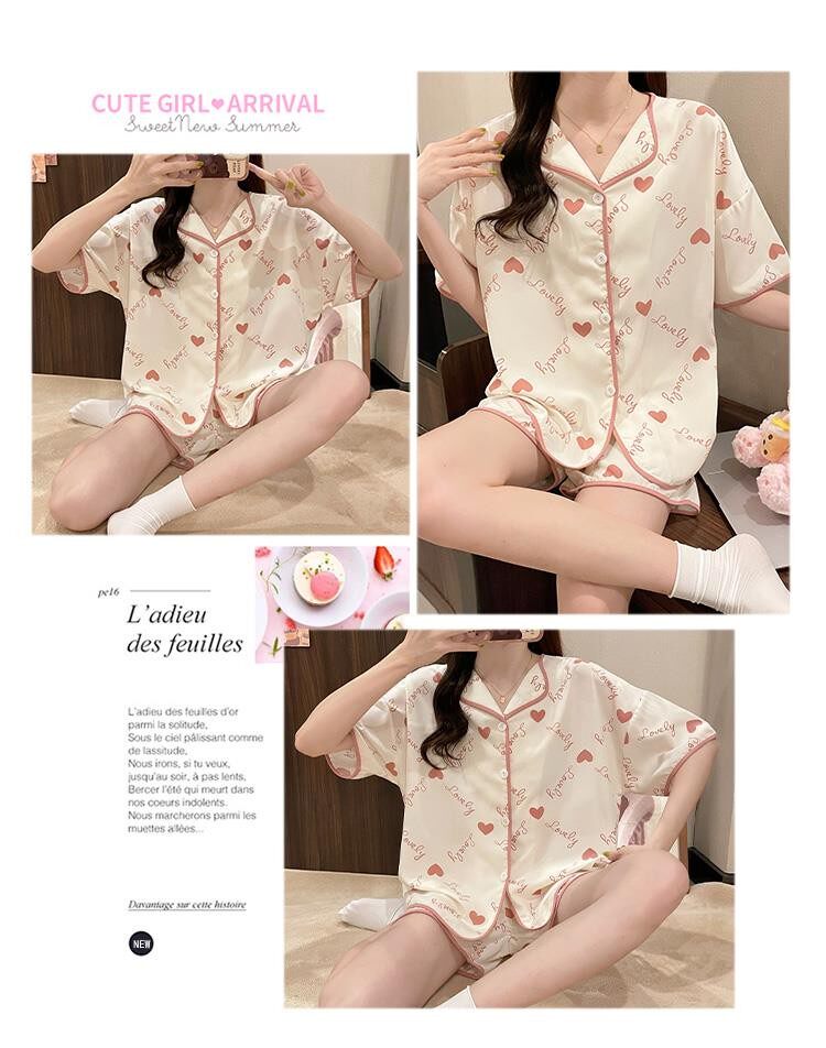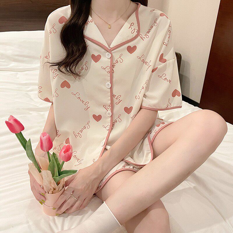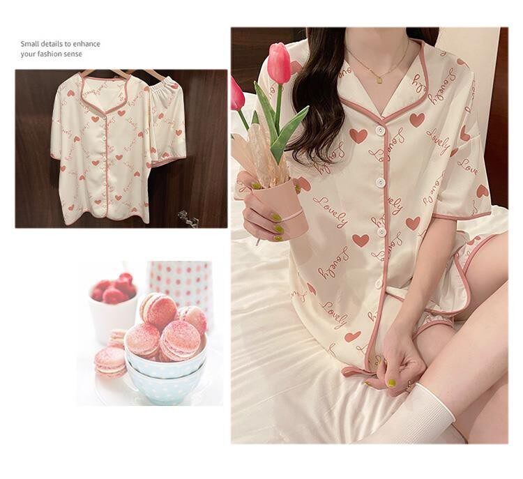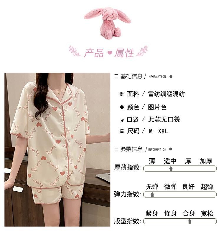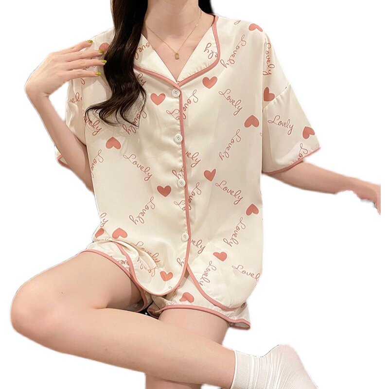 Шифоновая летняя шелковая пижама, милый осенний комплект в виде сердечка, короткий рукав, популярно в интернете